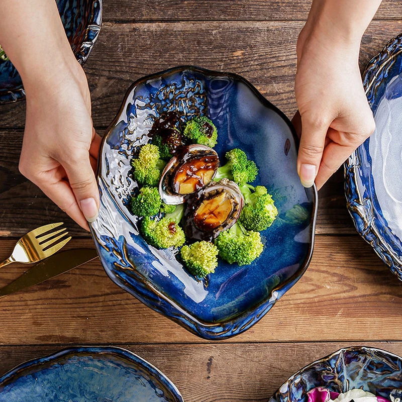 Forno creativo Cambio Piatto in ceramica Piatto irregolare Piatto piano Piatto di fascia alta Hotel Snack Piatto Piatto di insalata Piatto freddo Frutta Pla