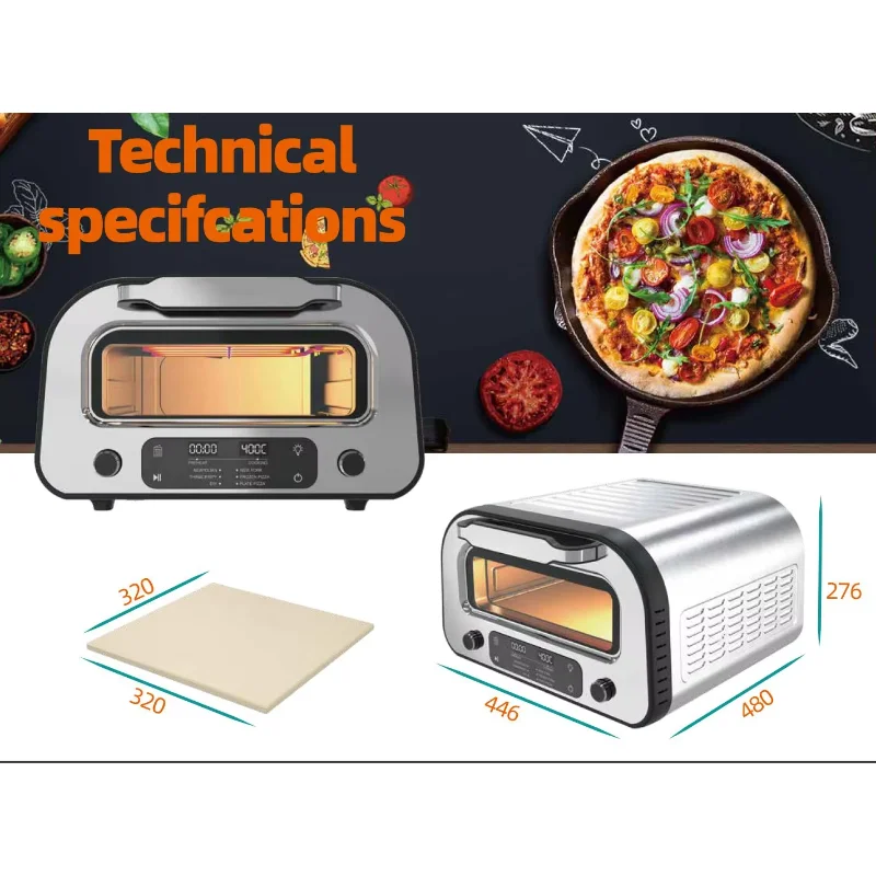 1.Prestazioni ad alta potenza: funziona a 120-240 V con potenza totale di 1800 W (superiore 1100 W, giù 700 W), capacità di insegnare fino a 800°F per la cottura delle pizza di qualità rapida e professionale.