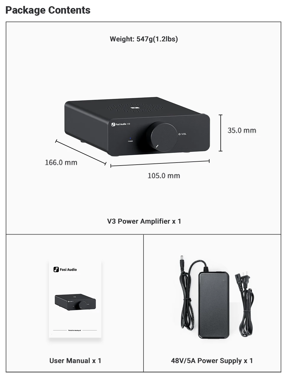 Piccolo amplificatore impressionante! Nonostante le sue dimensioni ridotte, il V3 offre un suono ampio, dettagliato e molto puro. Sono davvero stupito dalla qualità. Avevo alcune domande e ho contattato Fosi Audio tramite il loro sito ufficiale, hanno risposto attentamente entro 24 ore, a differenza del bot AliExpress, che non capisce né aiuta mai adeguatamente. Spero davvero che Fosi realizzi un preamplificatore adatto al V3: senza valvole, con controlli volume/tono, buon Bluetooth e almeno 2 ingressi RCA. L’attuale P3 ha valvole che colorano troppo il suono (non in modo positivo per me) e solo un RCA. Inoltre, se il V3 avesse il circuito PFFB come la versione mono, sarebbe un gioiello assoluto!