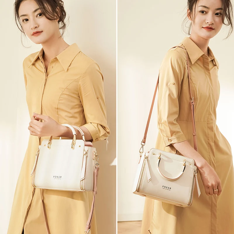 FOXER Borsa a tracolla da donna in pelle crosta Borsa elegante 2025 Borsa tote grande da donna autunno inverno Borsa a tracolla dal design di lusso