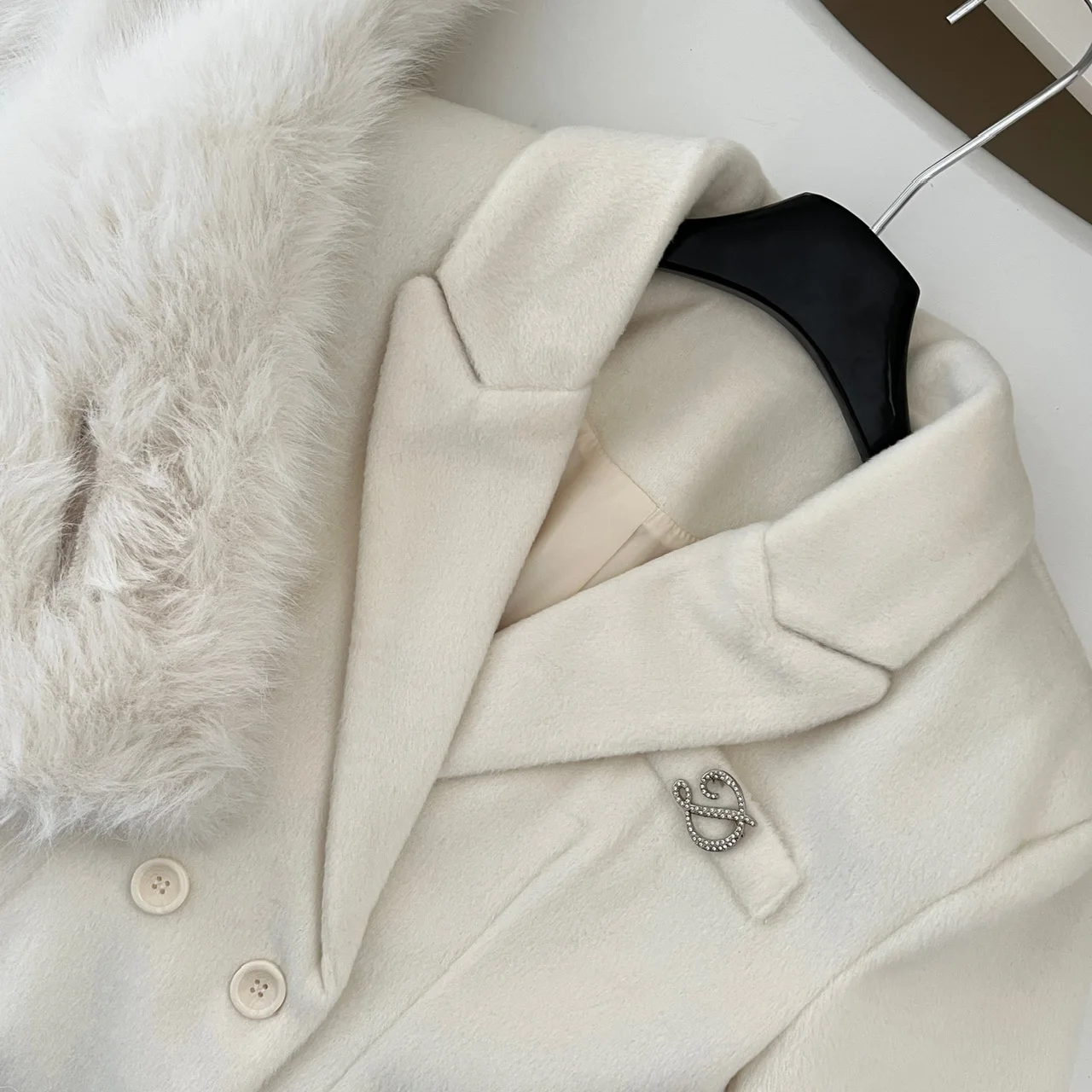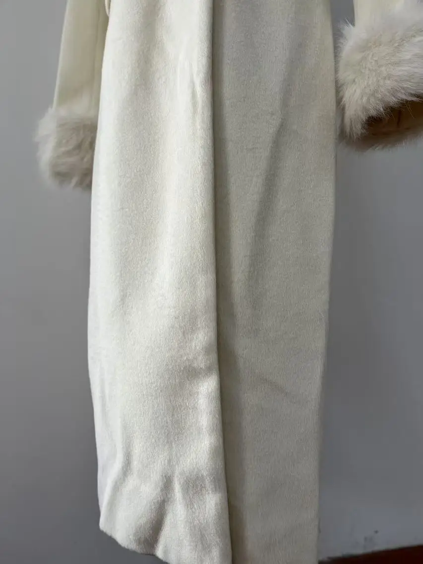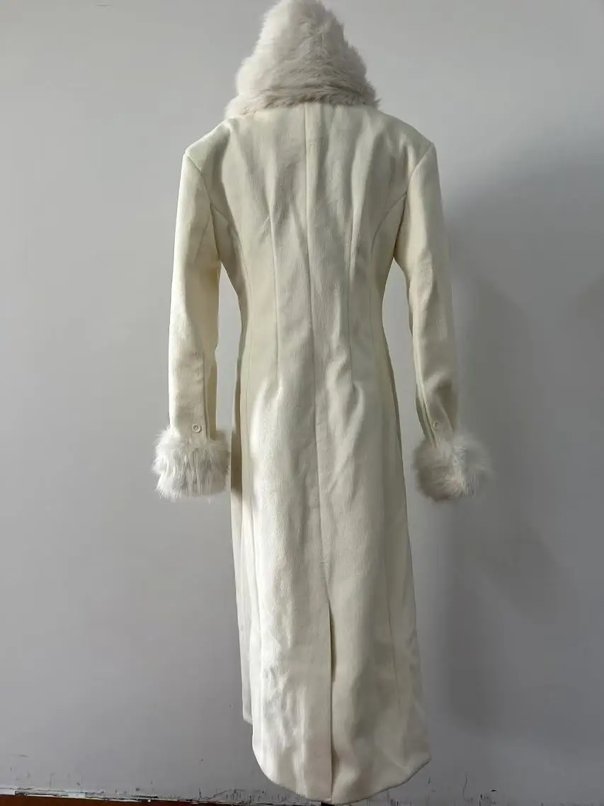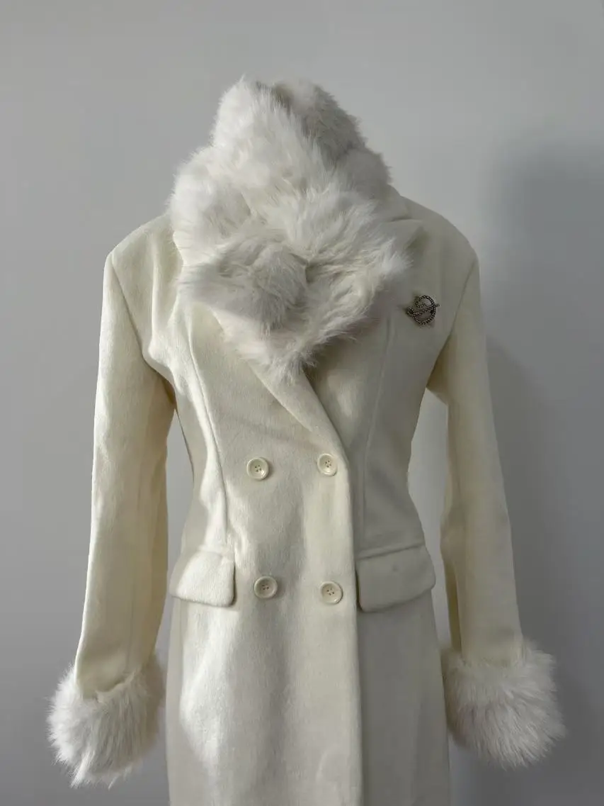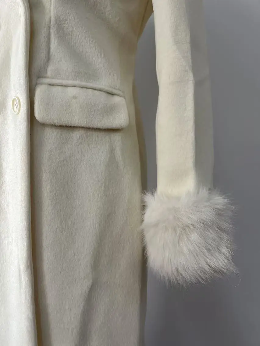 French Elegant Fall and Winter New Women Wool Blends Coats Fur Suit Collar Double Breasted High Waist Slim Long Sleeve Coat