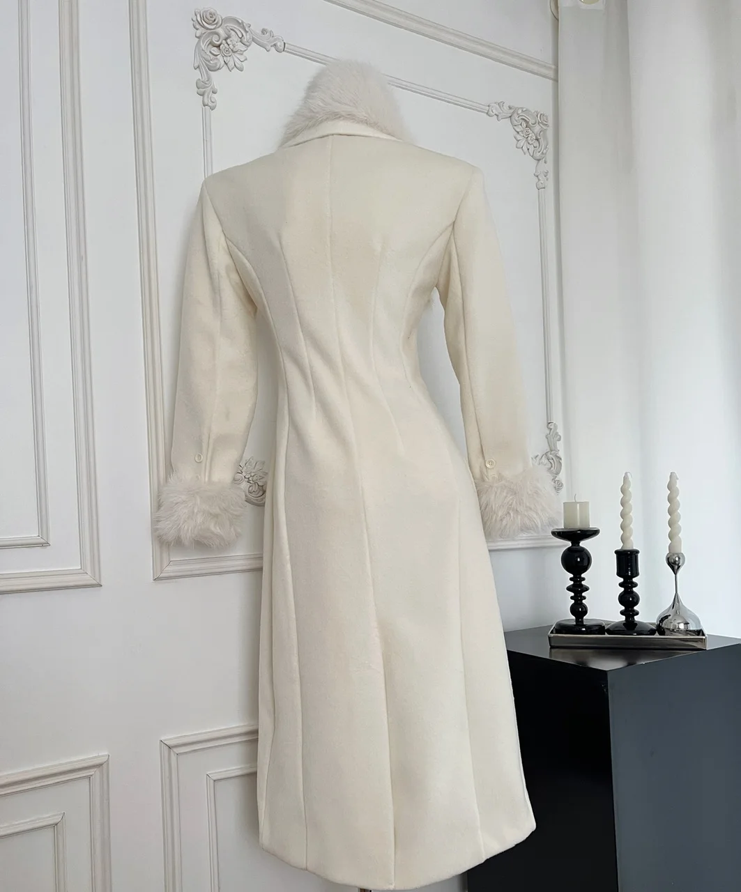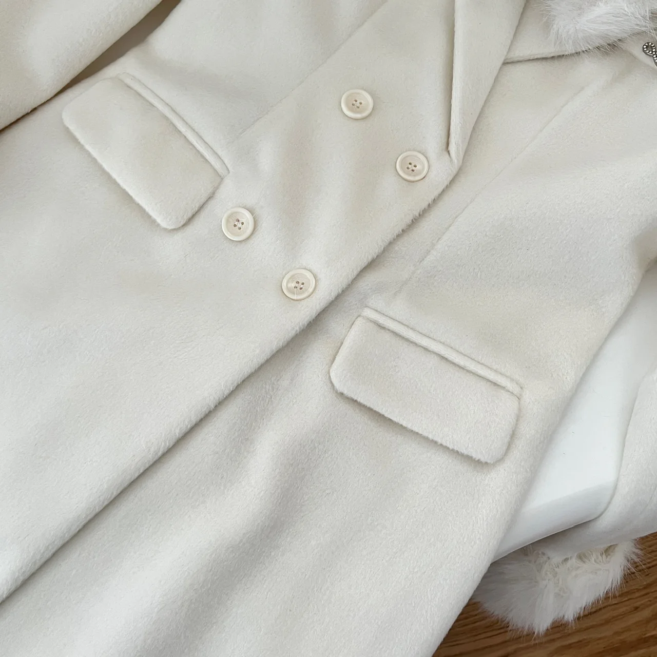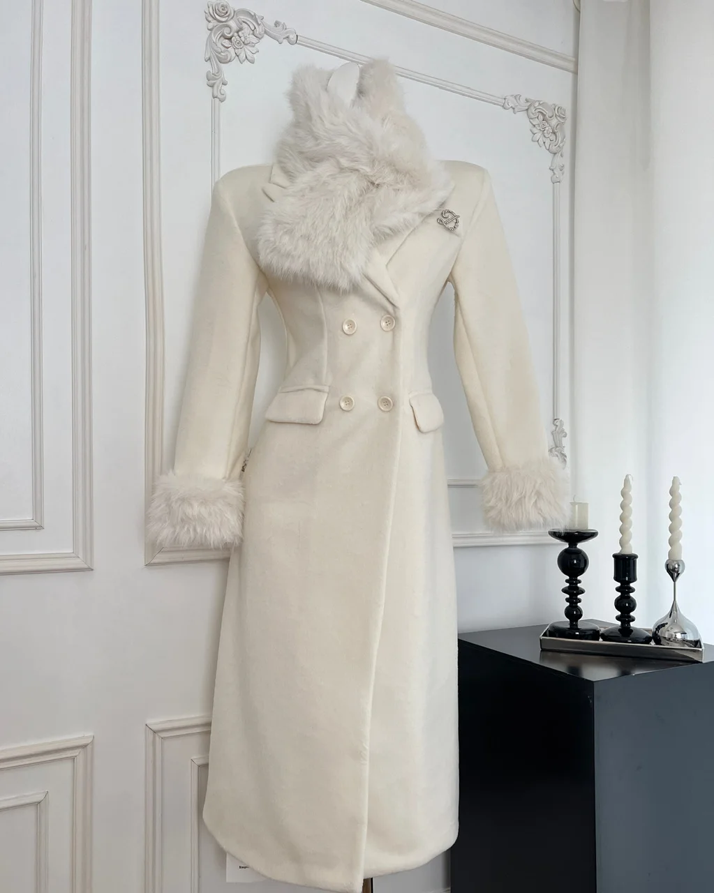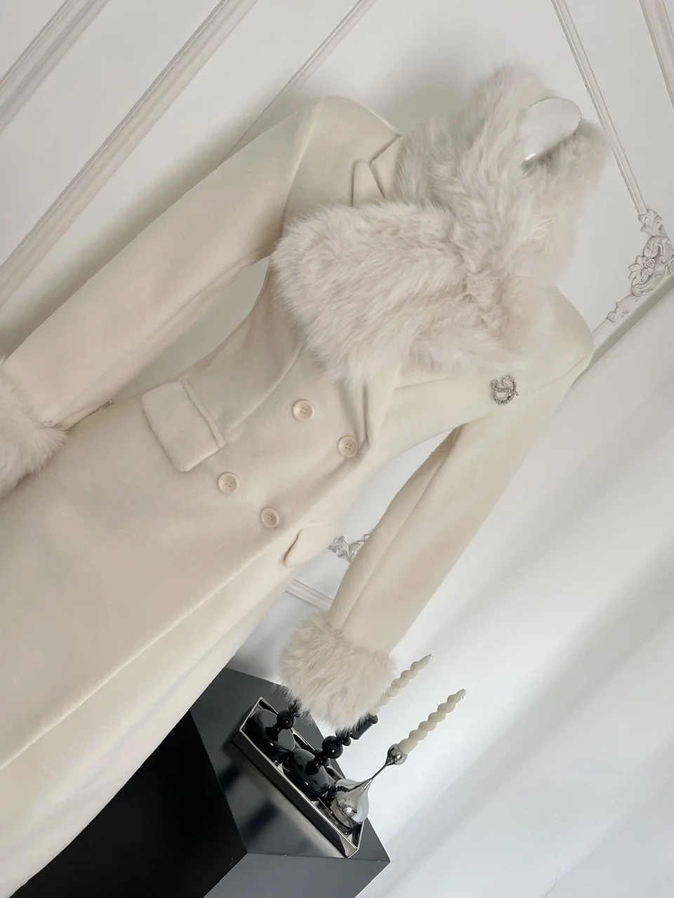 French Elegant Fall and Winter New Women Wool Blends Coats Fur Suit Collar Double Breasted High Waist Slim Long Sleeve Coat