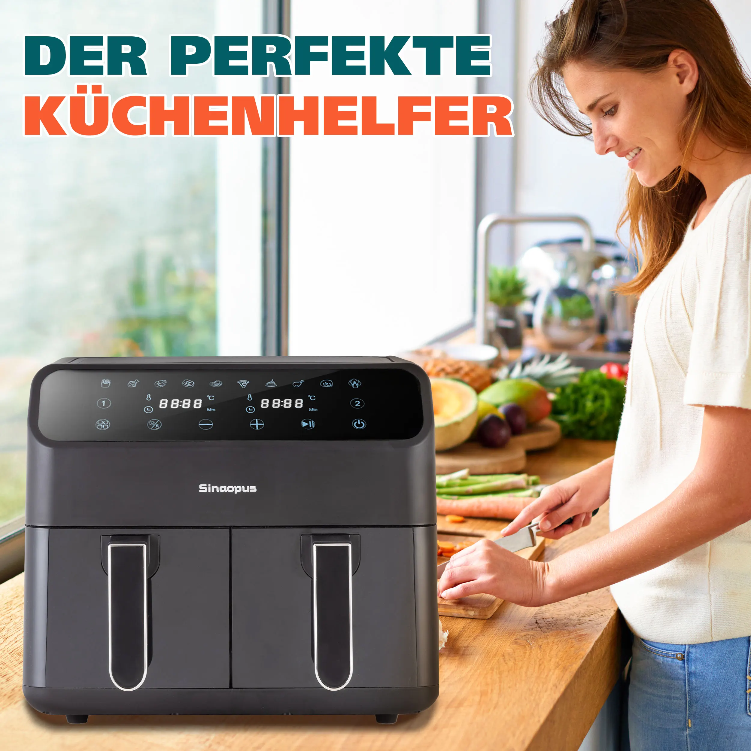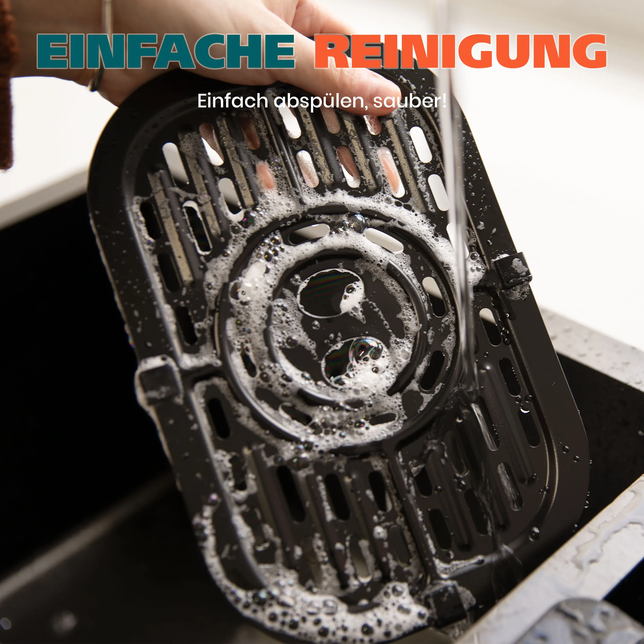 Our air fryer combines German craft with aesthetic design. The simple and elegant design is complemented by an LED display that intuitively shows the cooking parameters and makes operation easier.