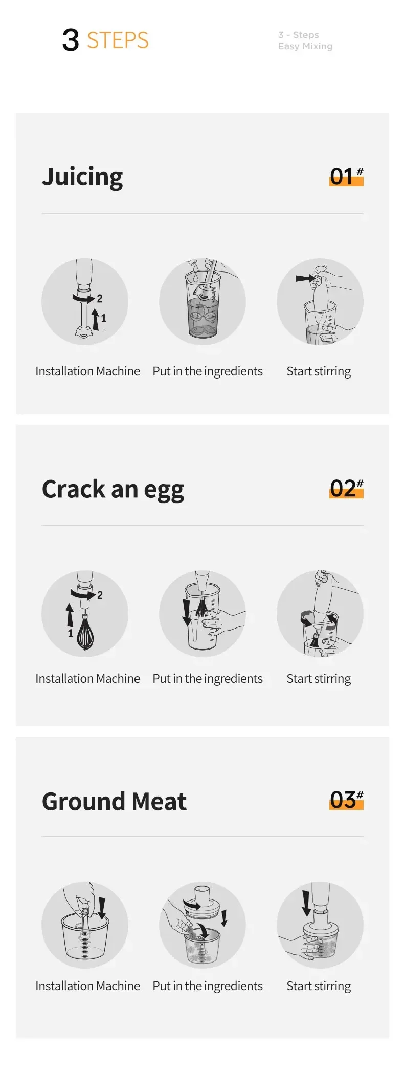 – Alta potenza da 1000 W, facile da trasportare vari ingredienti.