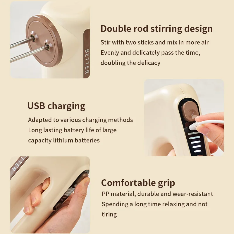 2. Frullino per le uova a doppia testa: design di agitazione a doppia asta, risparmio di tempo e miscelazione più uniforme.