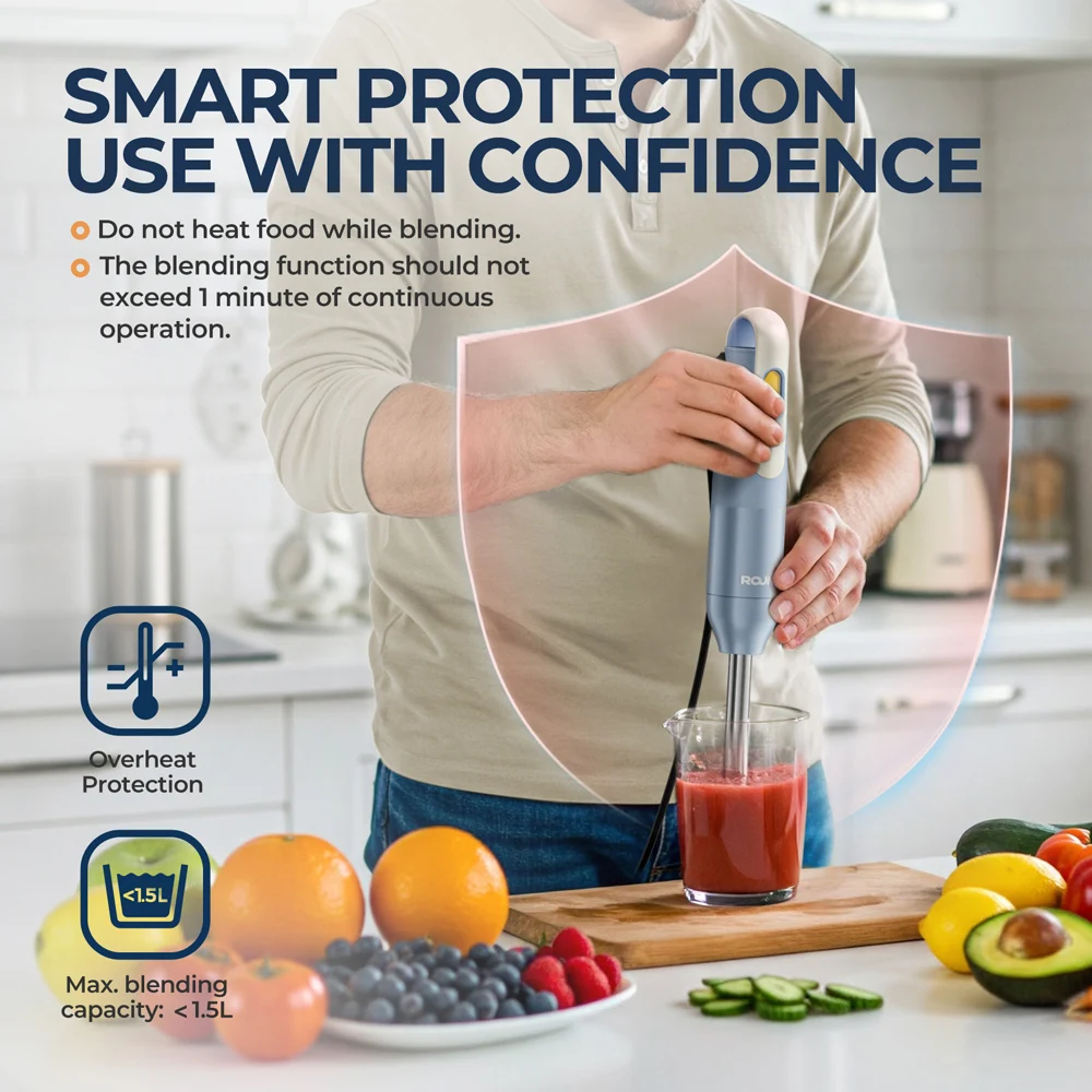 Frullatore manuale, frullatore ad immersione manuale con lame in acciaio inossidabile per la miscelazione degli alimenti da cucina, azzurro, classico di base