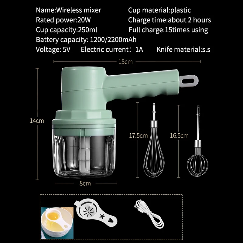 Il design wireless vyart727】dopo la ricarica completa, può battere le uova 15 volte, adatto per cucina, viaggi, picnic