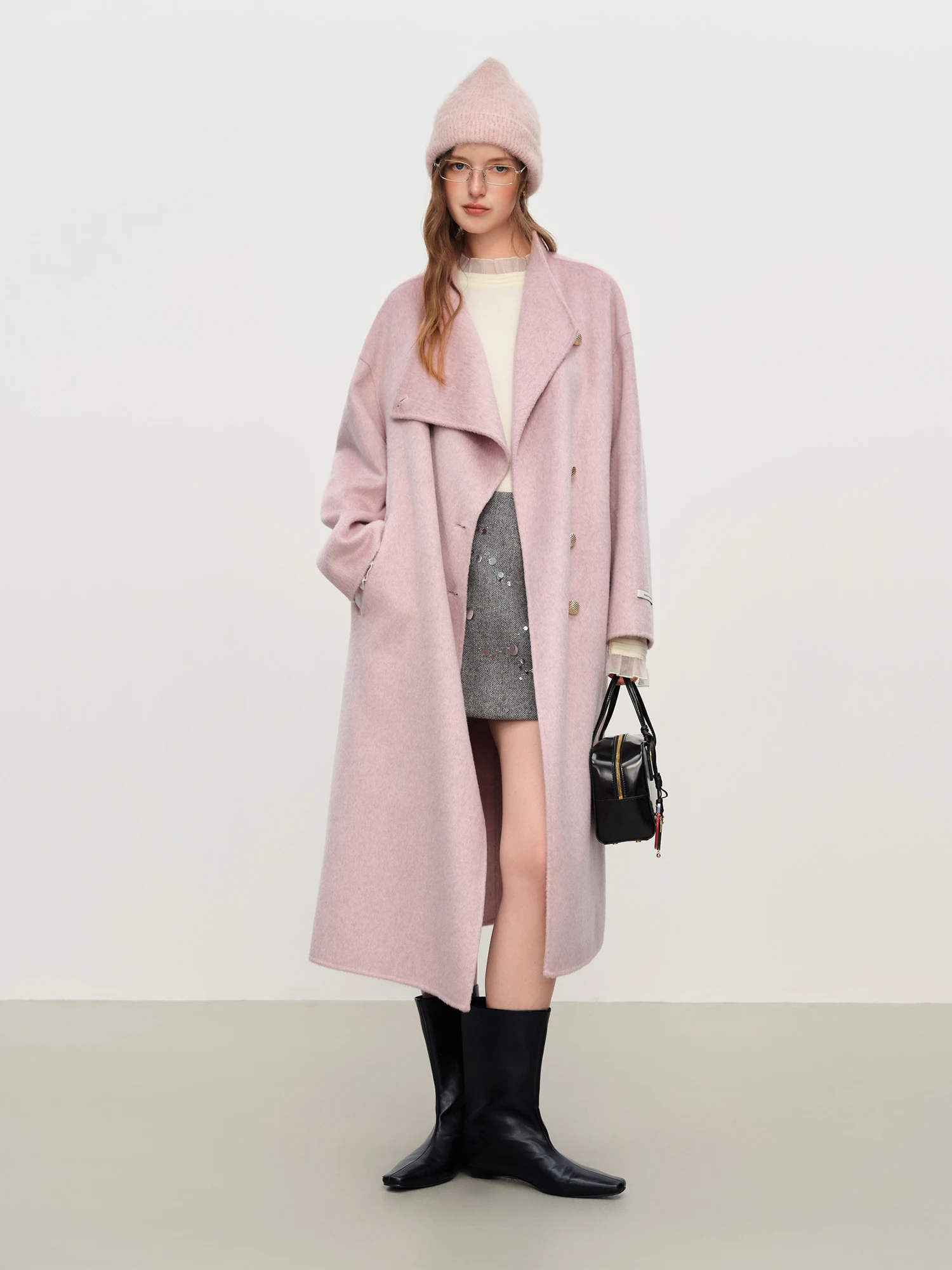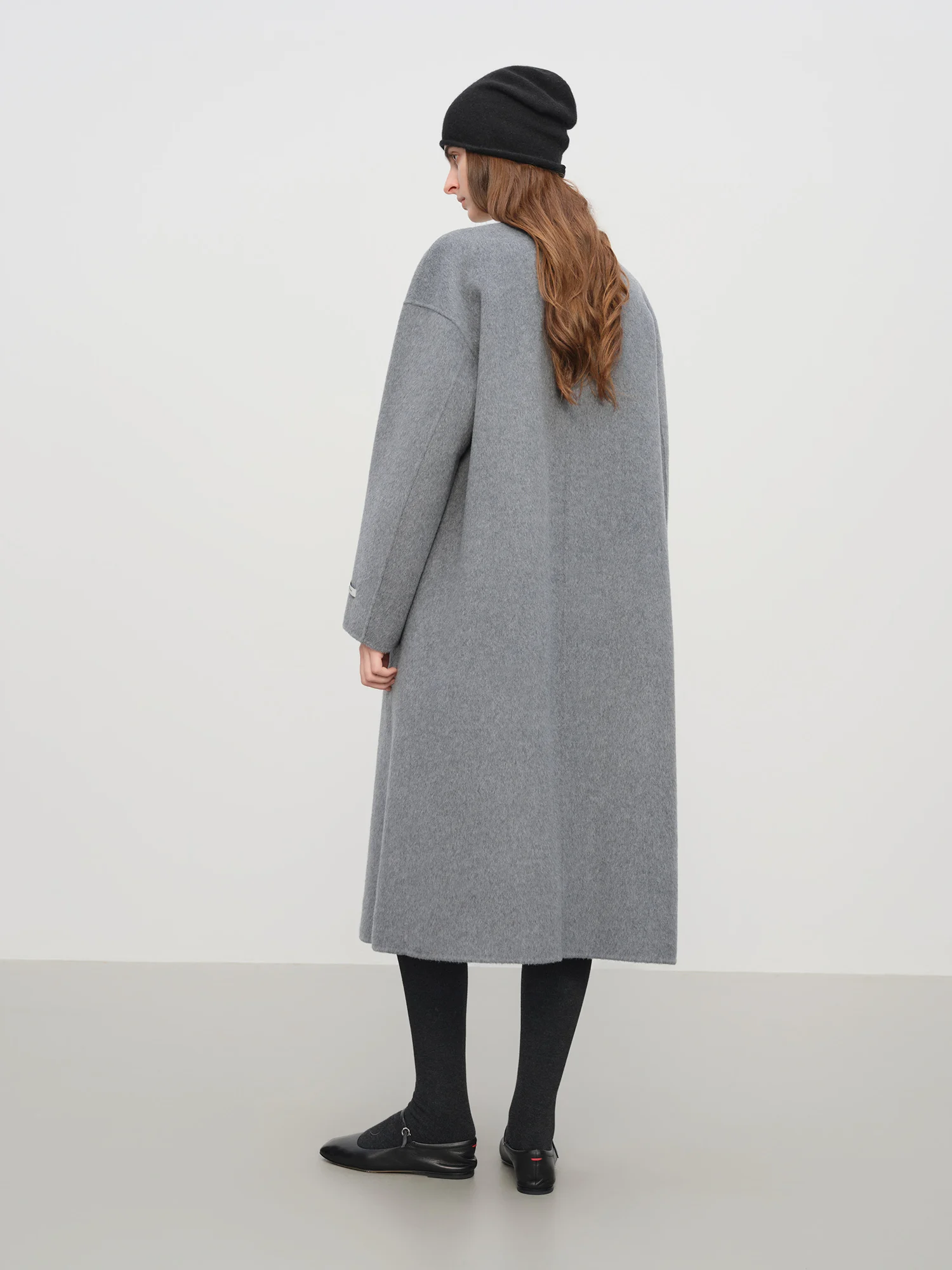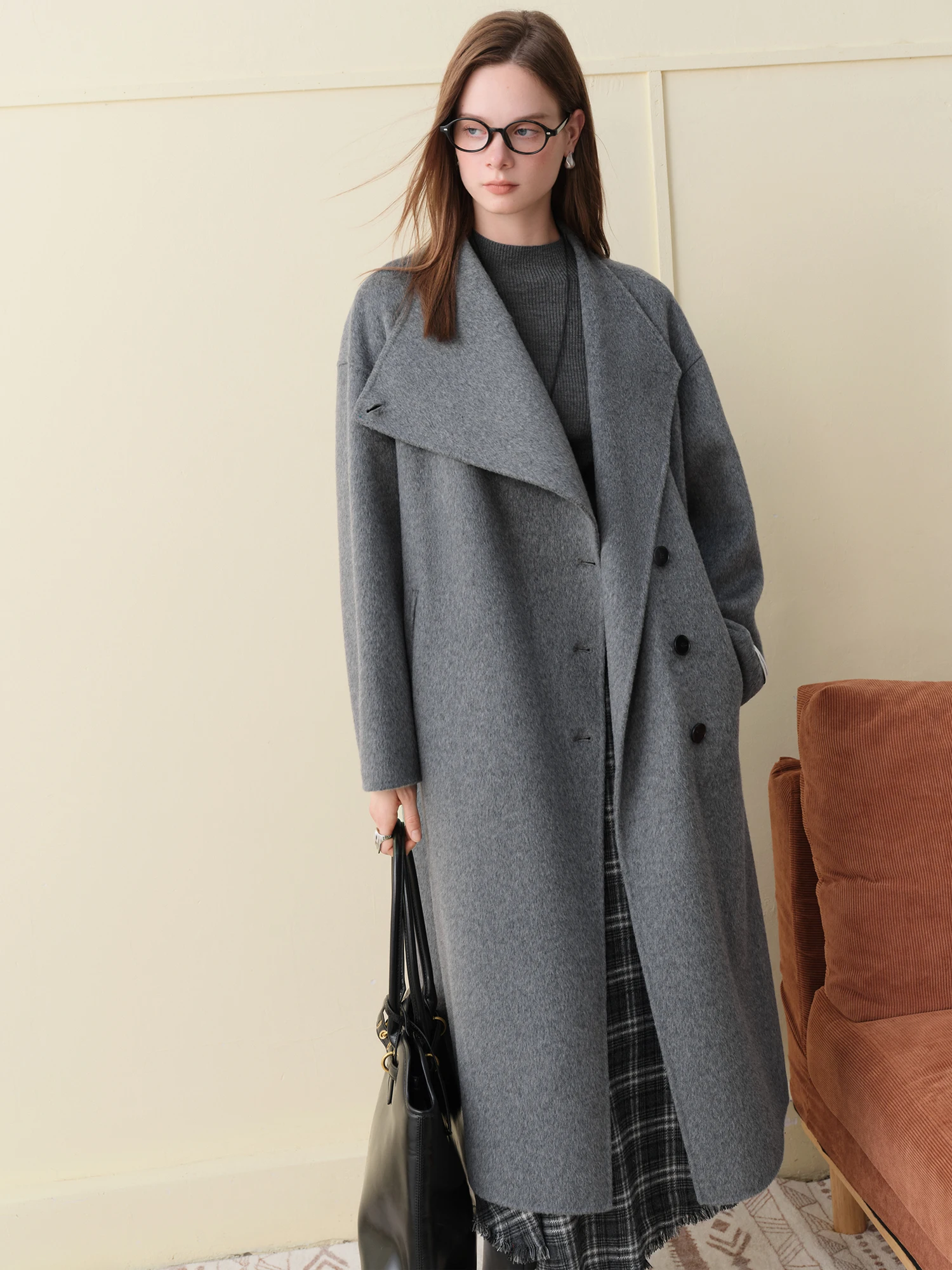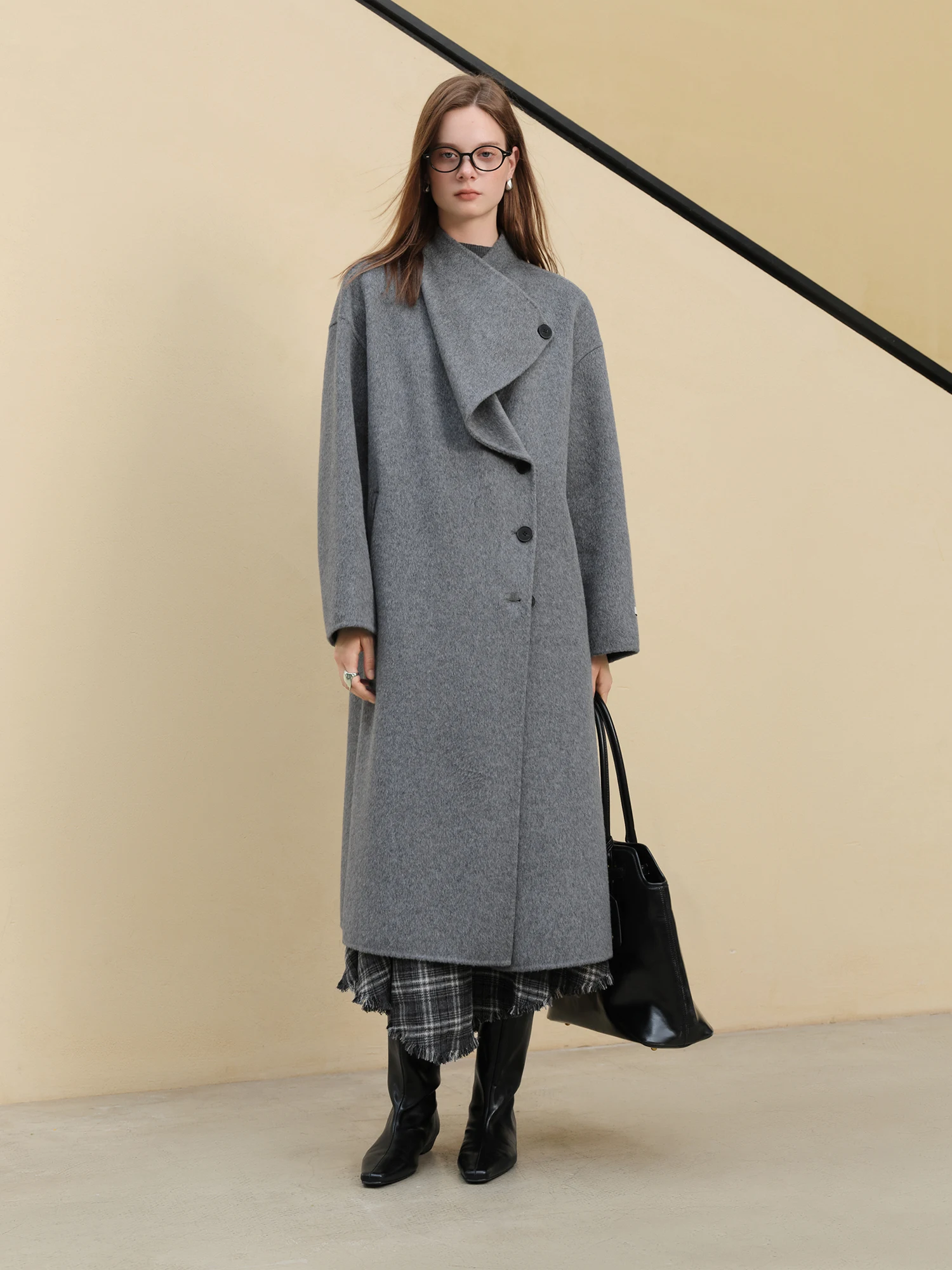 FSLE 【Serie Premium】 Cashmere Lusso Casual Colletto Autonomo Elegante Cappotto Double Face Donna 2025 Nuovo Cappotto di Lana di Arrivo