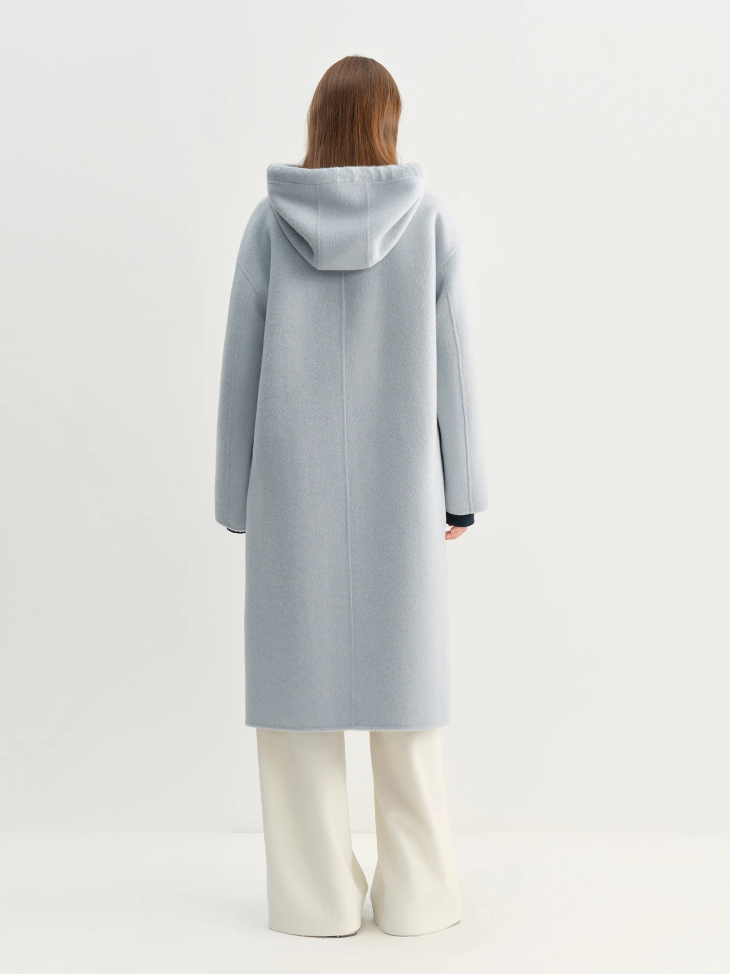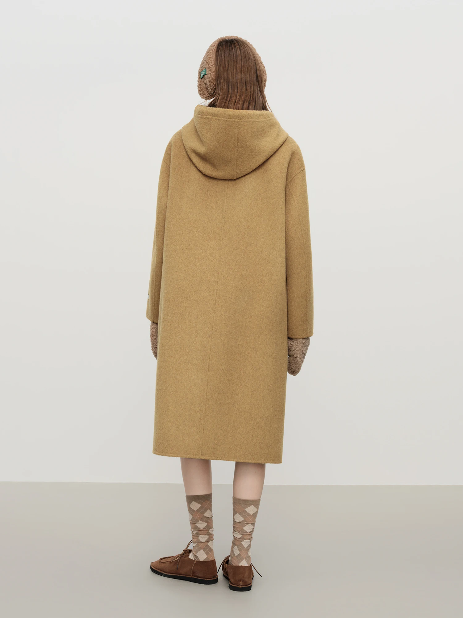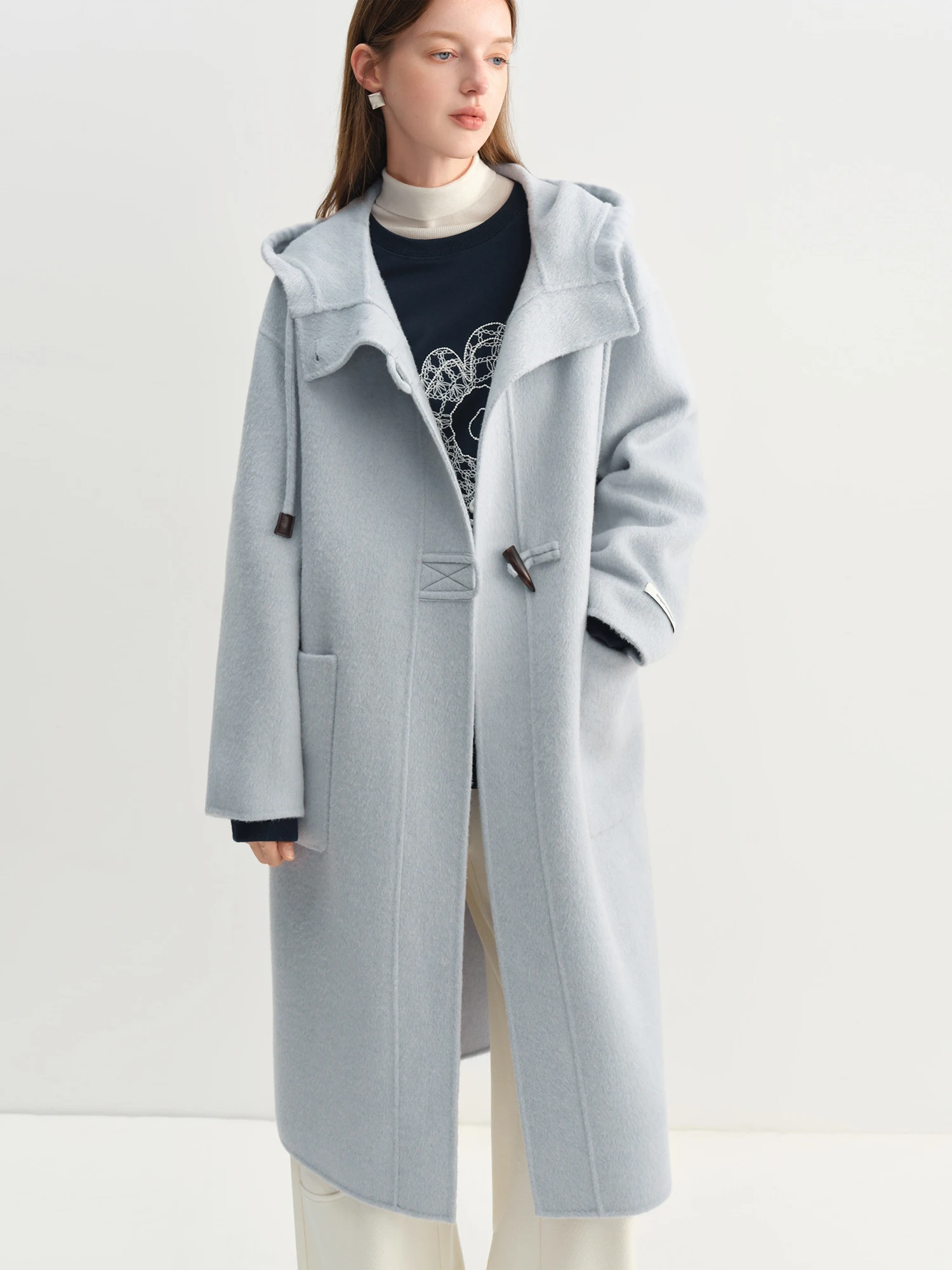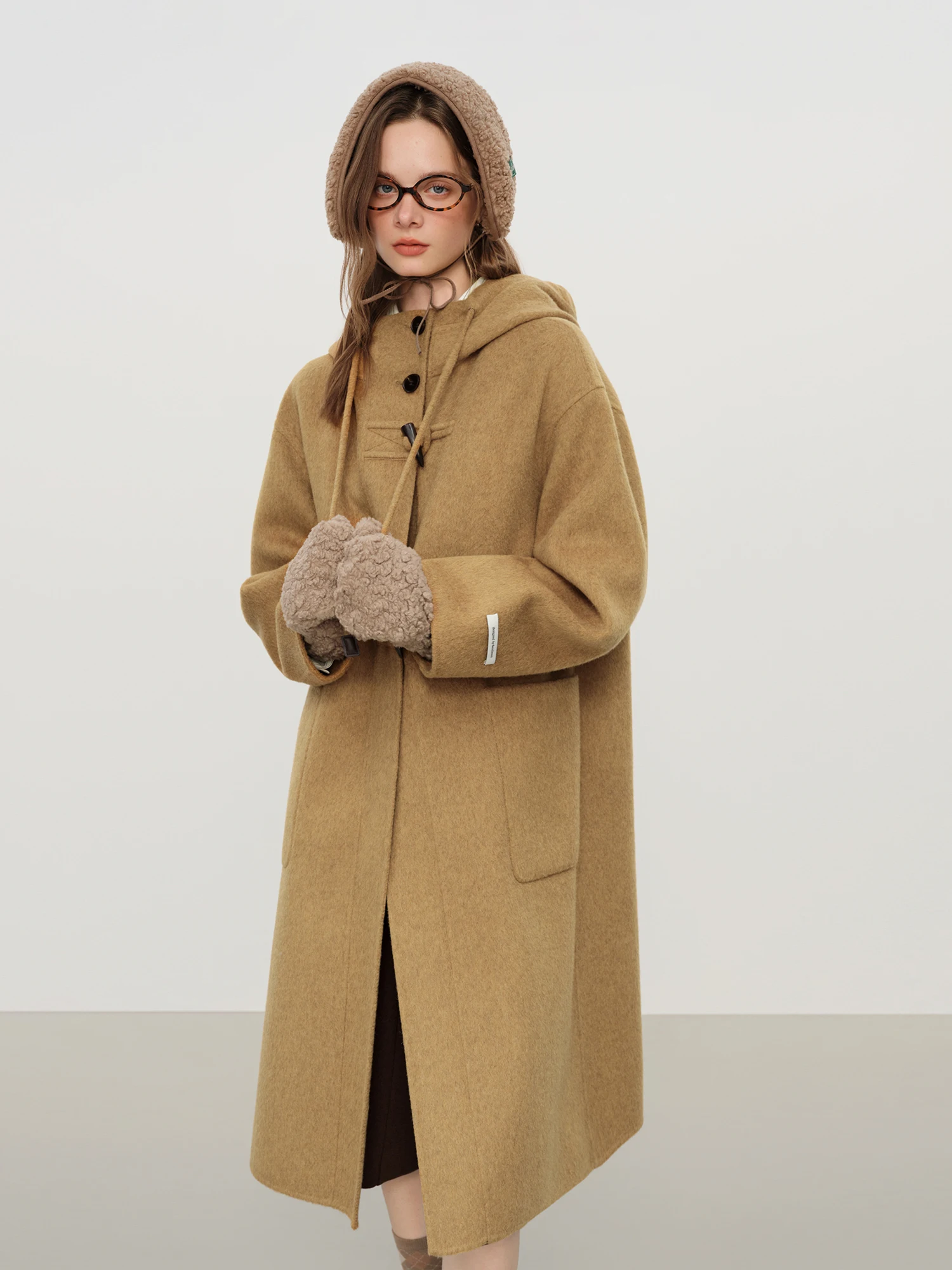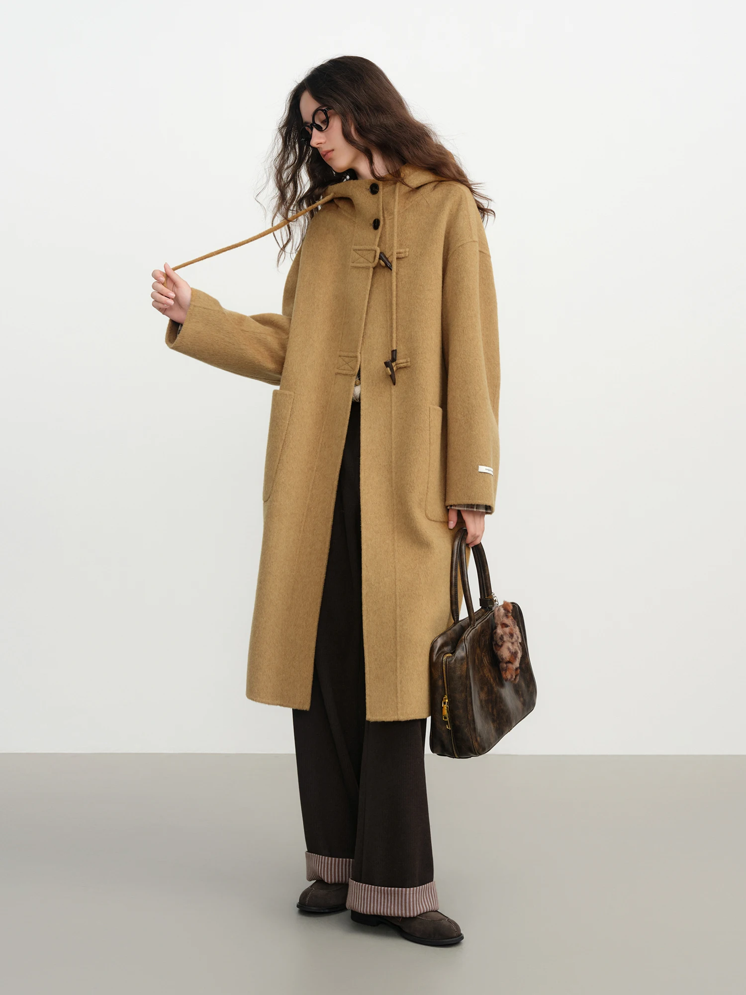 FSLE 2025 Cappotto invernale da donna in misto lana con cappuccio accademico – Cappotto lungo con bottoni a ginocchiera e vestibilità rilassata su entrambi i lati per l’eleganza casual