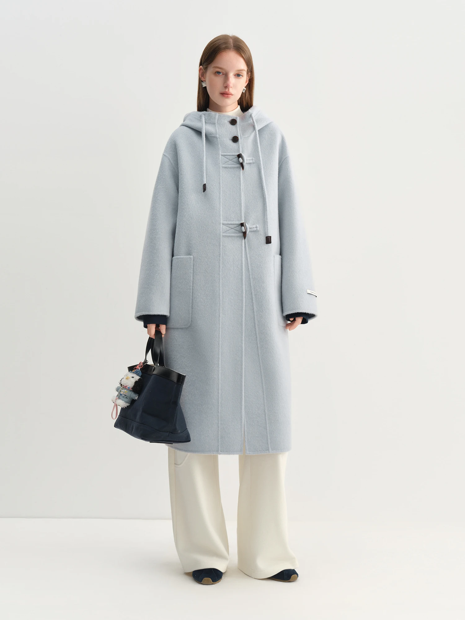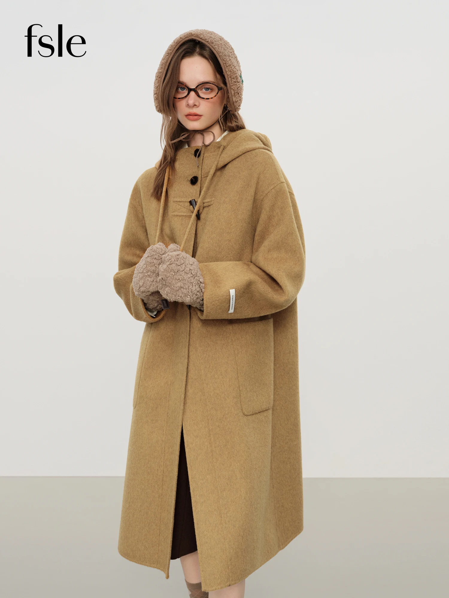 FSLE 2025 Cappotto invernale da donna in misto lana con cappuccio accademico – Cappotto lungo con bottoni a ginocchiera e vestibilità rilassata su entrambi i lati per l’eleganza casual