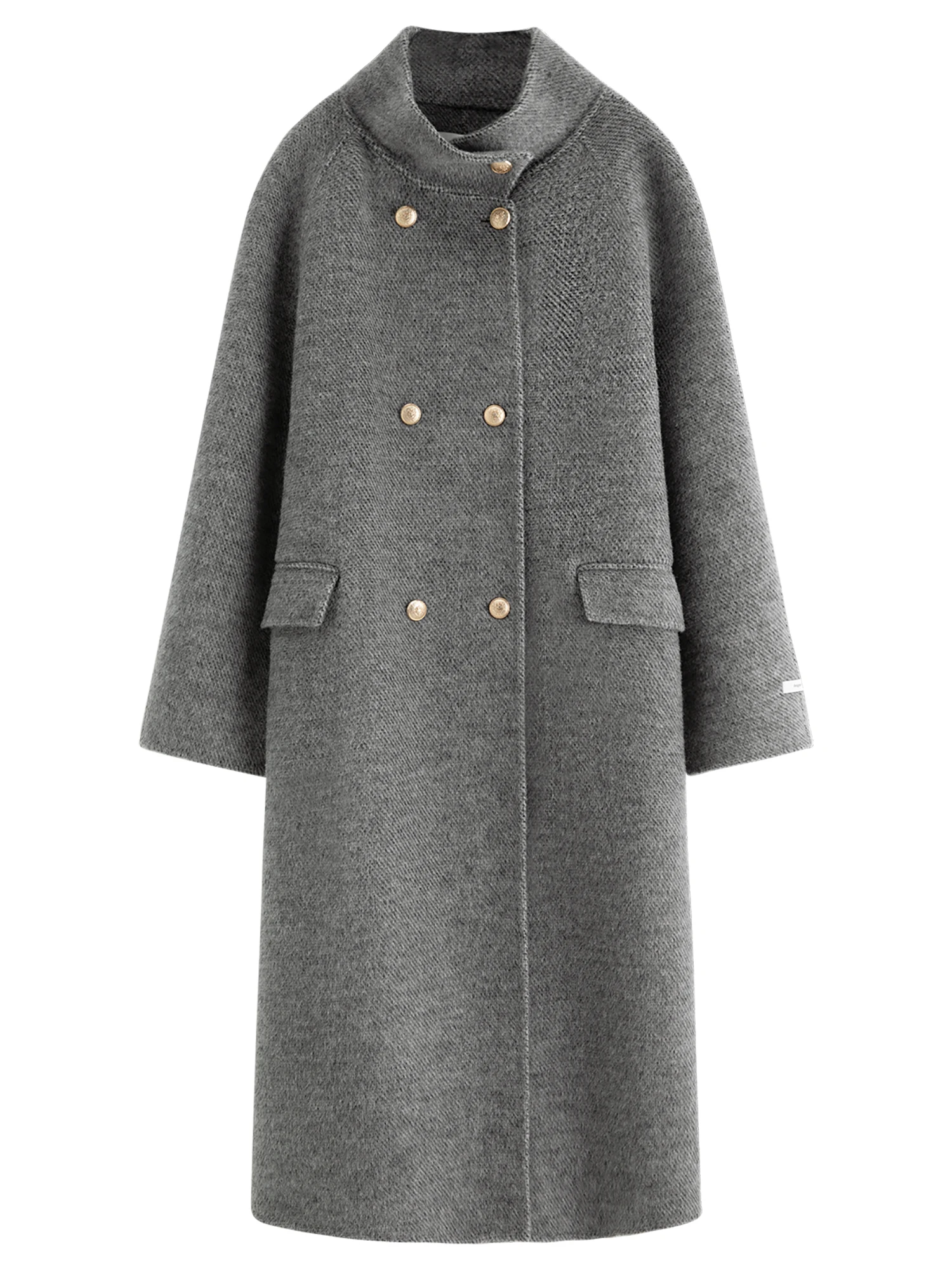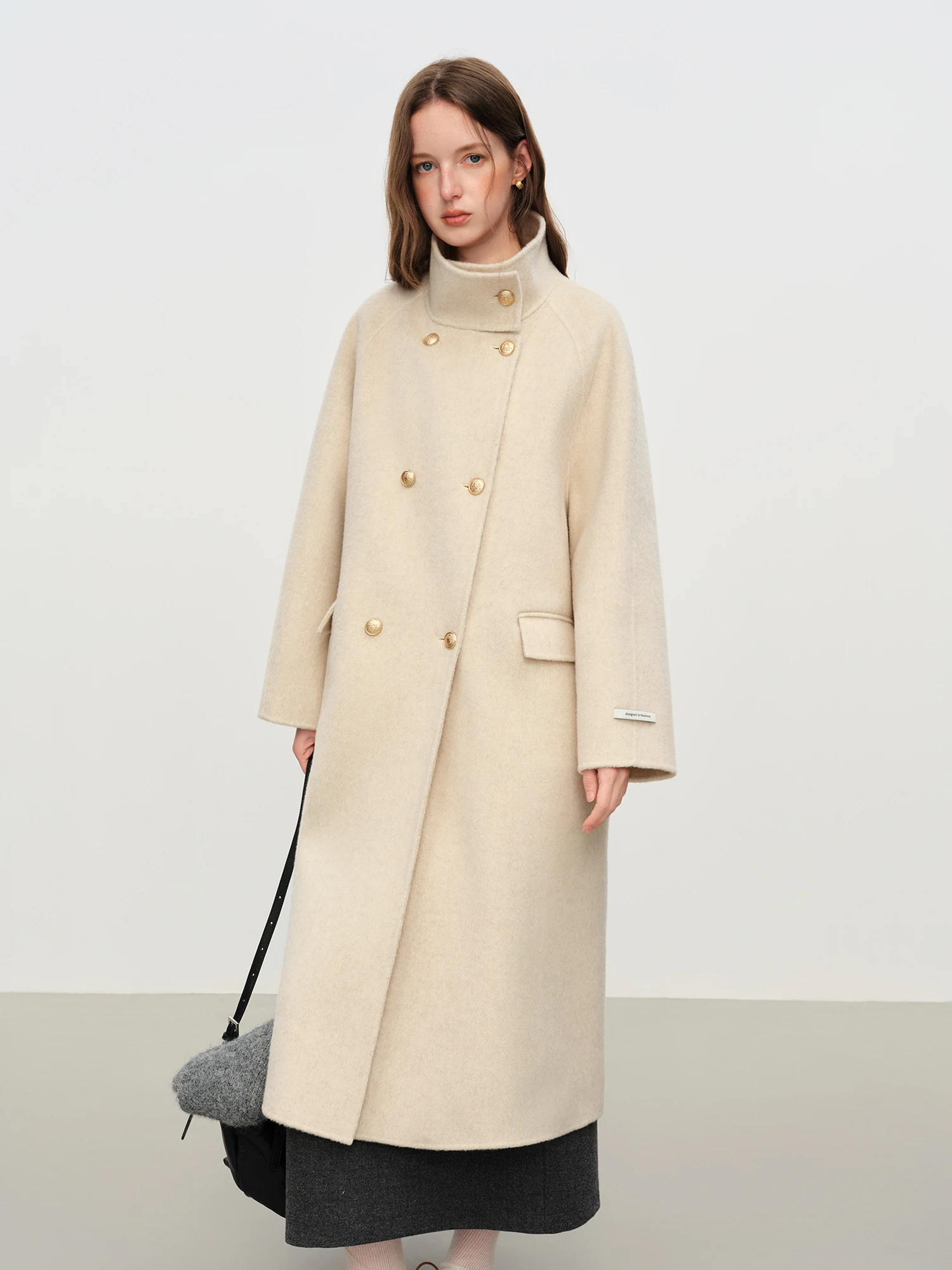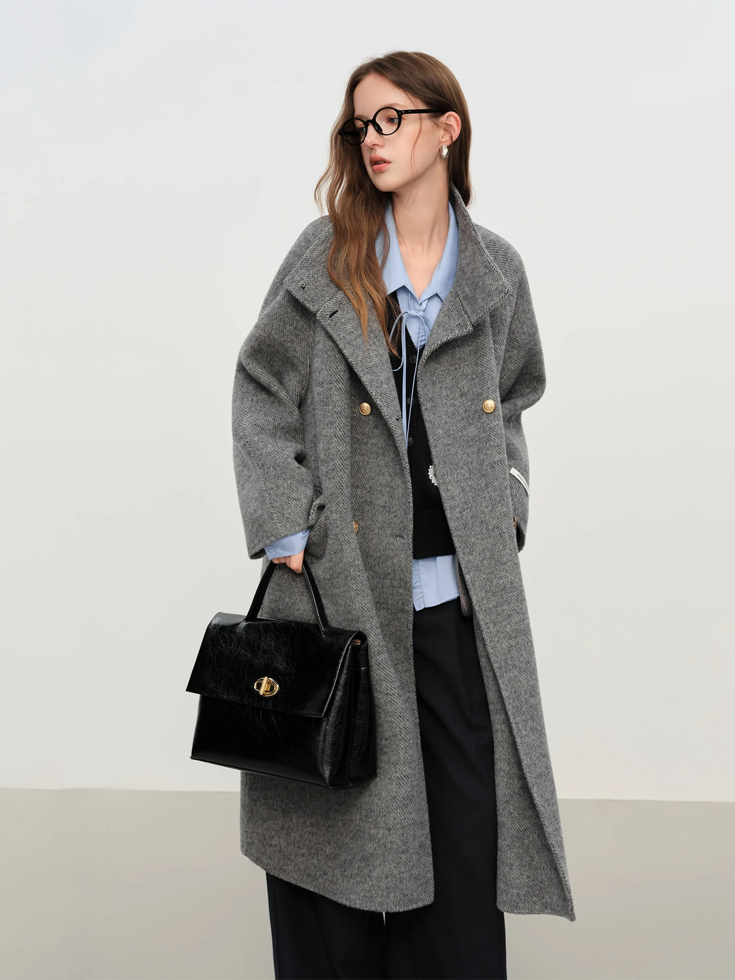 FSLE Autunno Colletto alla coreana Cappotto doppio petto in misto lana Donna 2025 Inverno Nuovo elegante caldo soprabito double face Capispalla chic