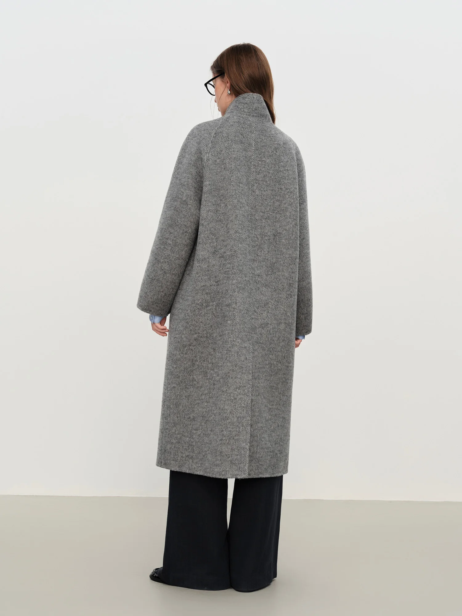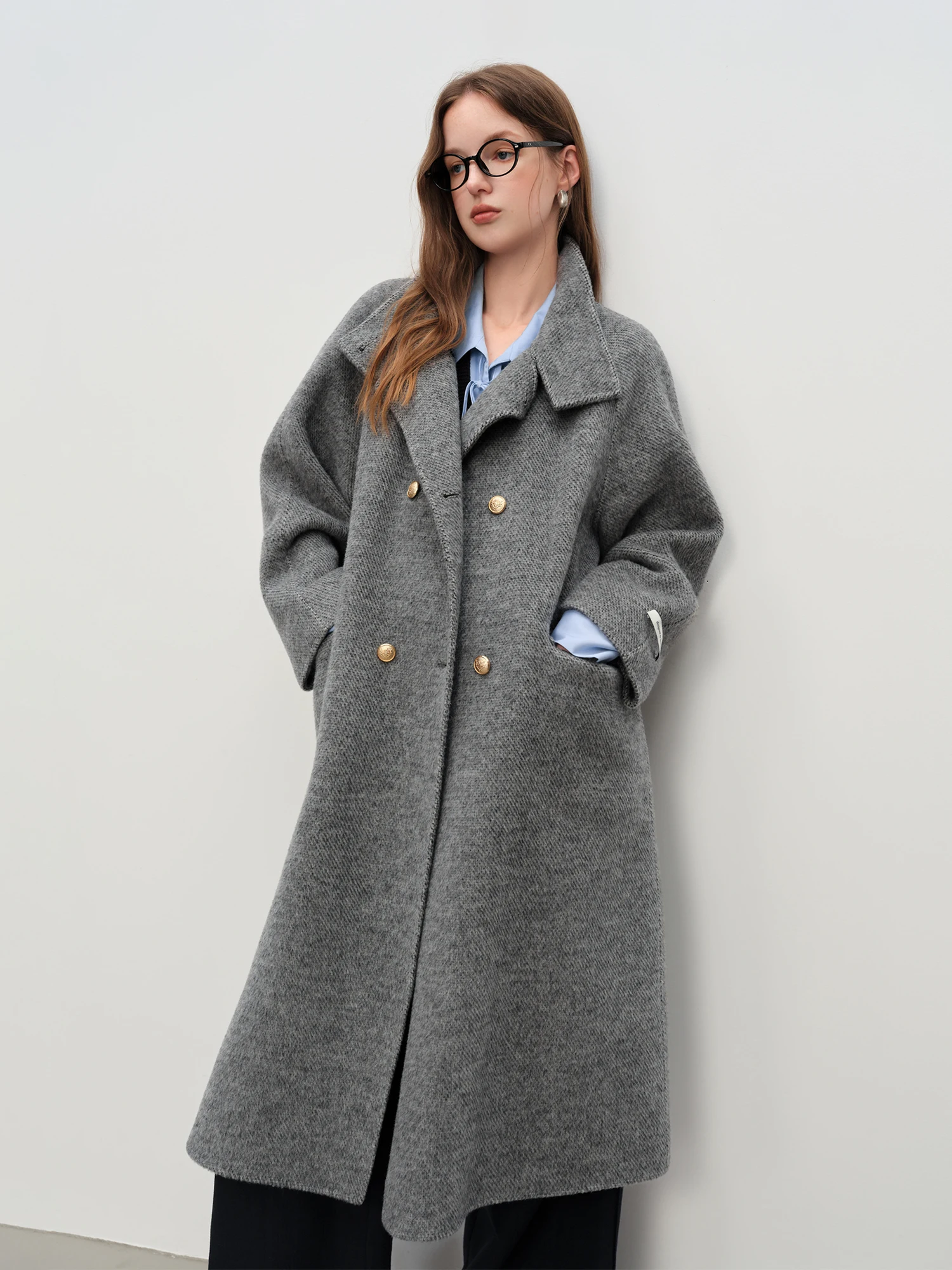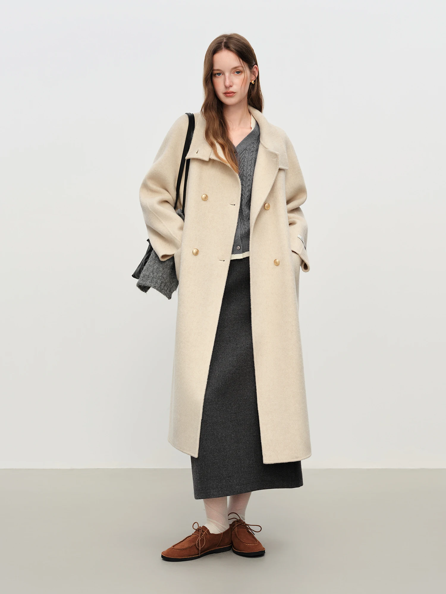 FSLE Autunno Colletto alla coreana Cappotto doppio petto in misto lana Donna 2025 Inverno Nuovo elegante caldo soprabito double face Capispalla chic