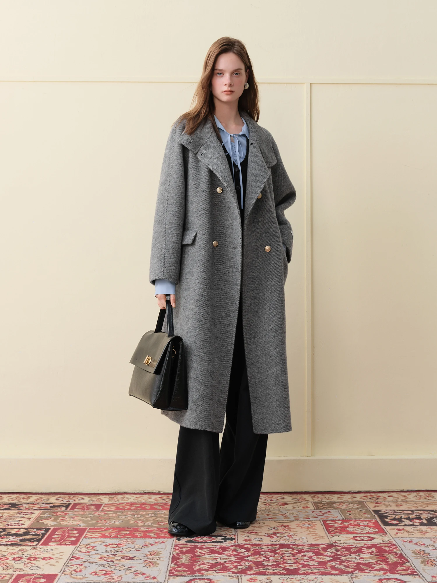 FSLE Autunno Colletto alla coreana Cappotto doppio petto in misto lana Donna 2025 Inverno Nuovo elegante caldo soprabito double face Capispalla chic