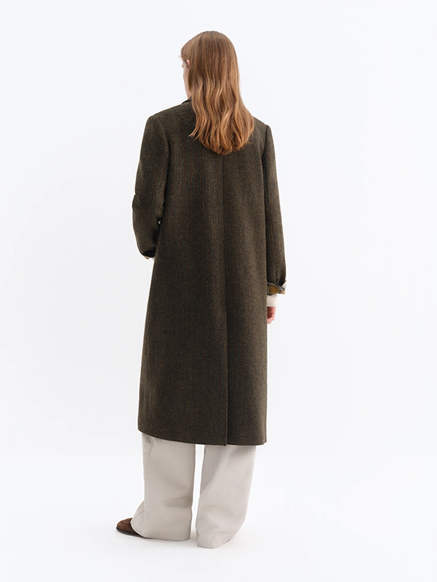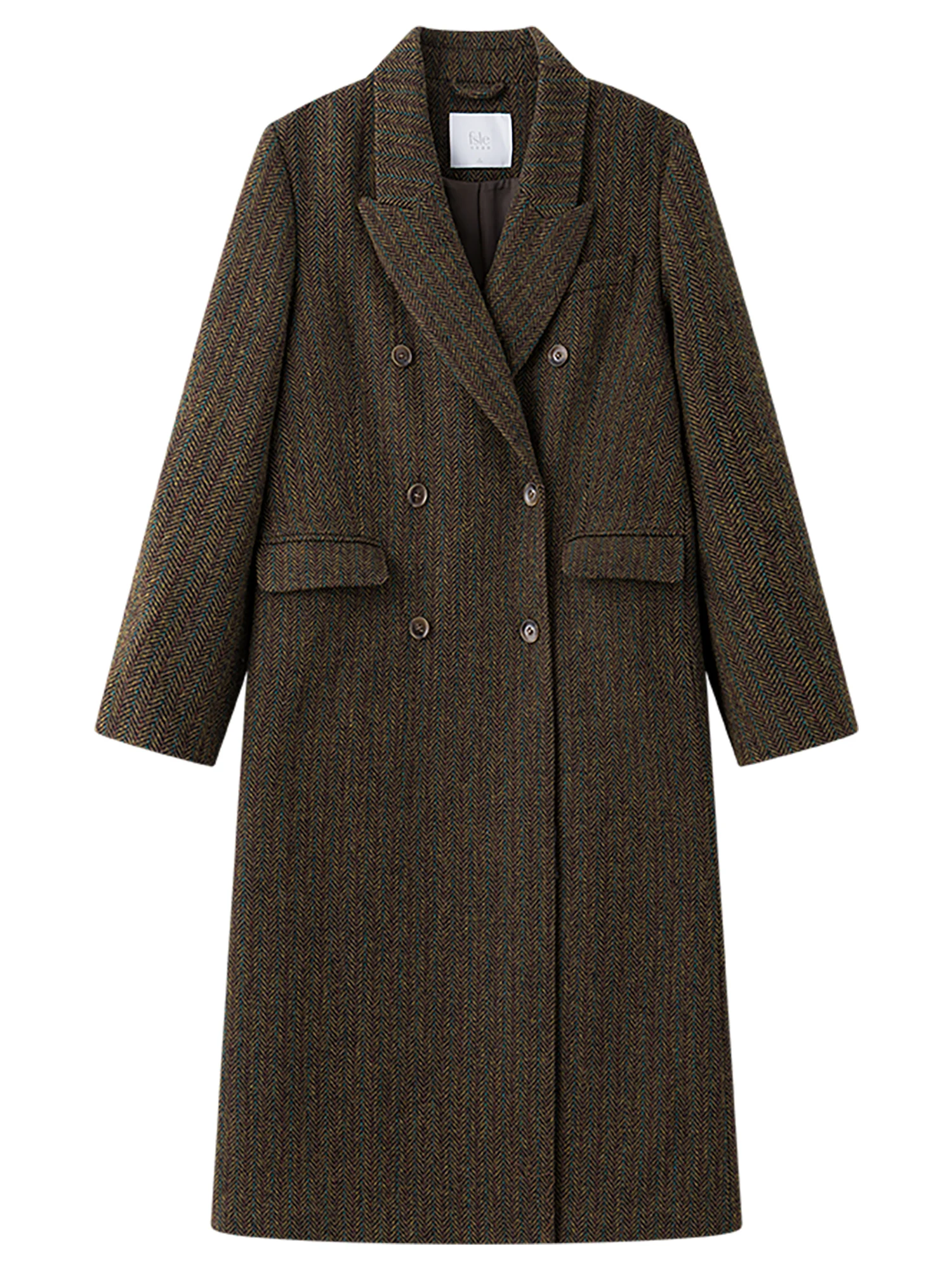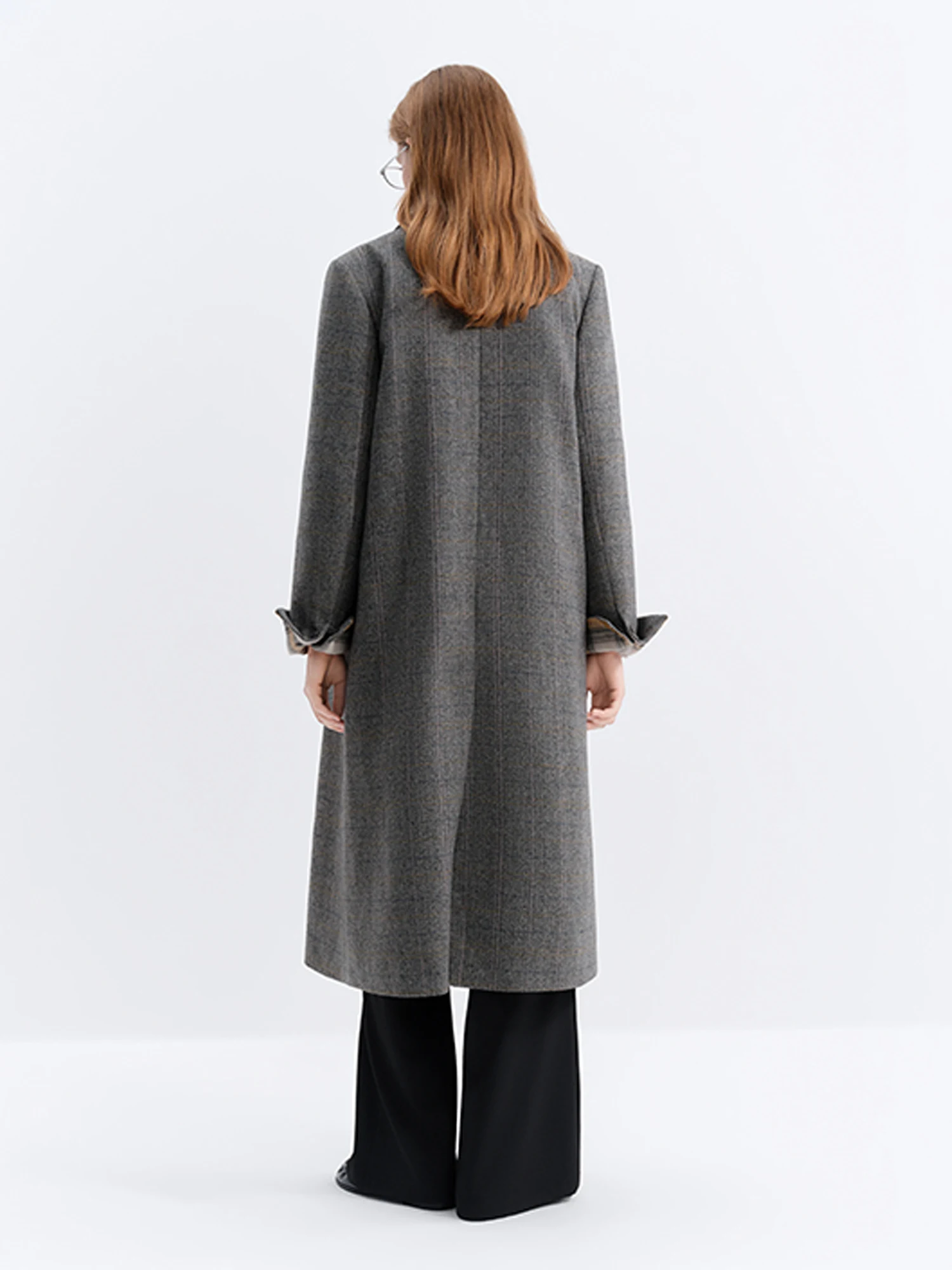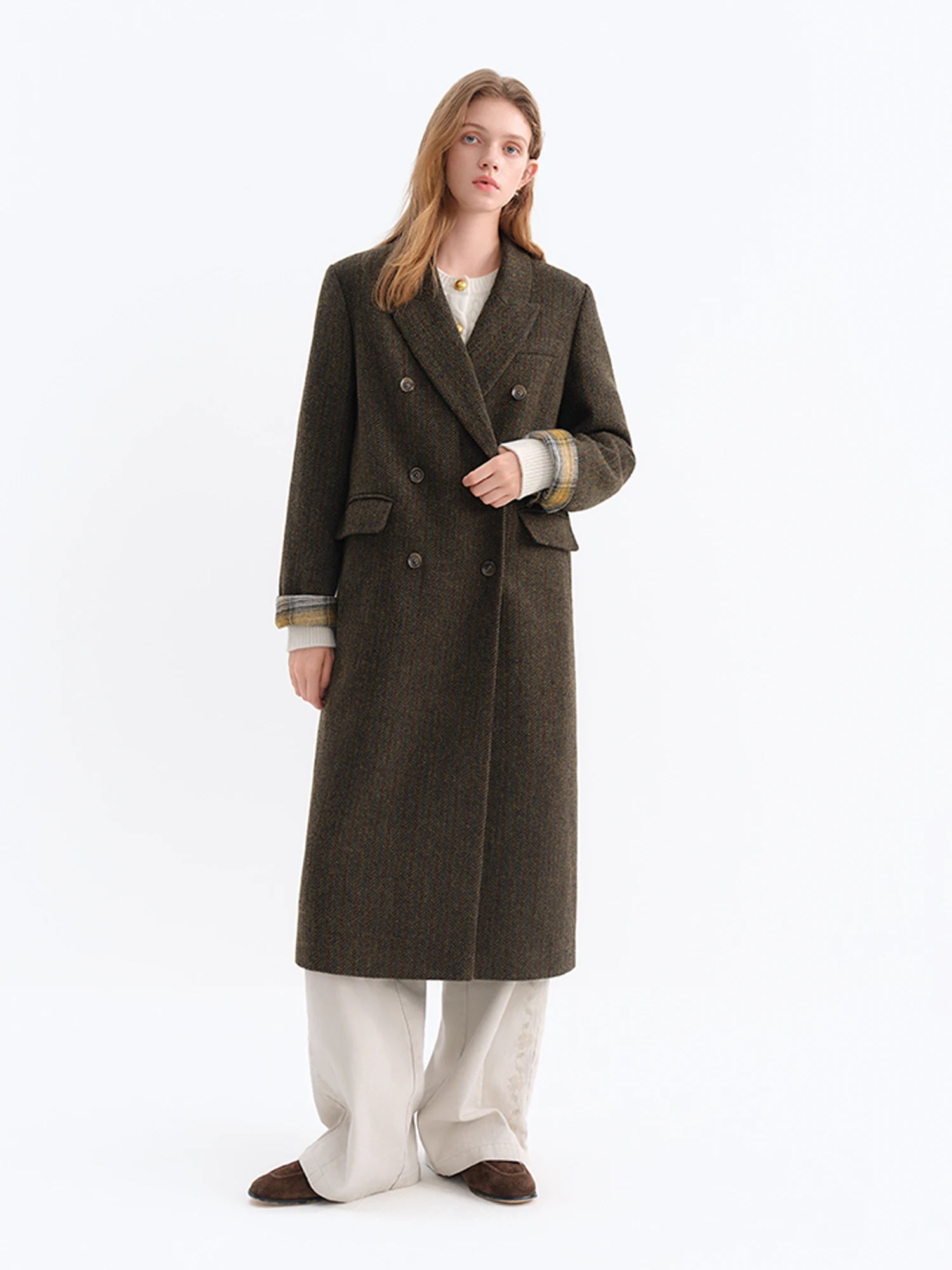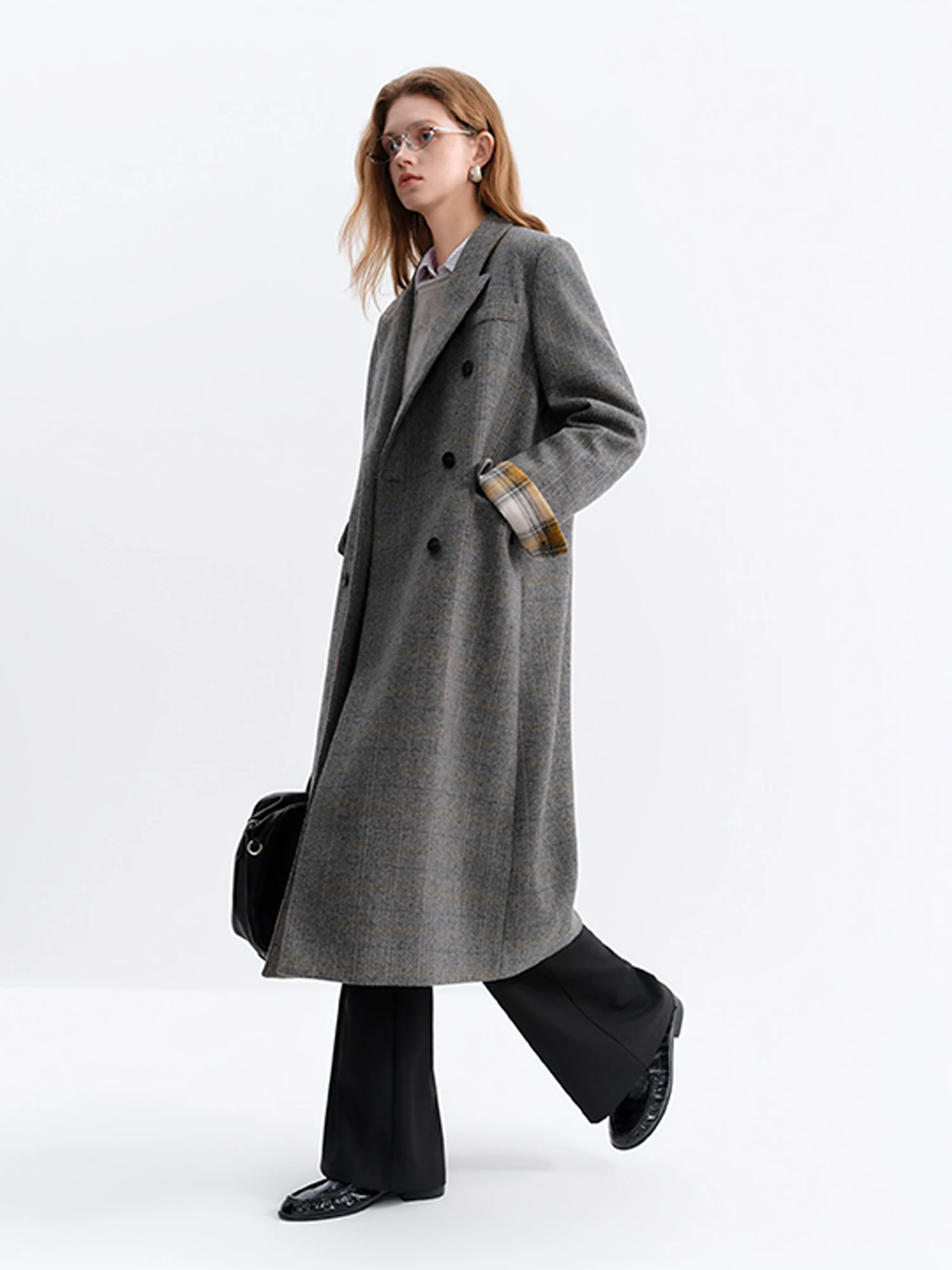 FSLE Blazer Cappotto di lana da donna Inverno 2025 Nuovo cappotto di lana retrò coreano Plaid Pendolarismo Caldo temperamento a metà polpaccio