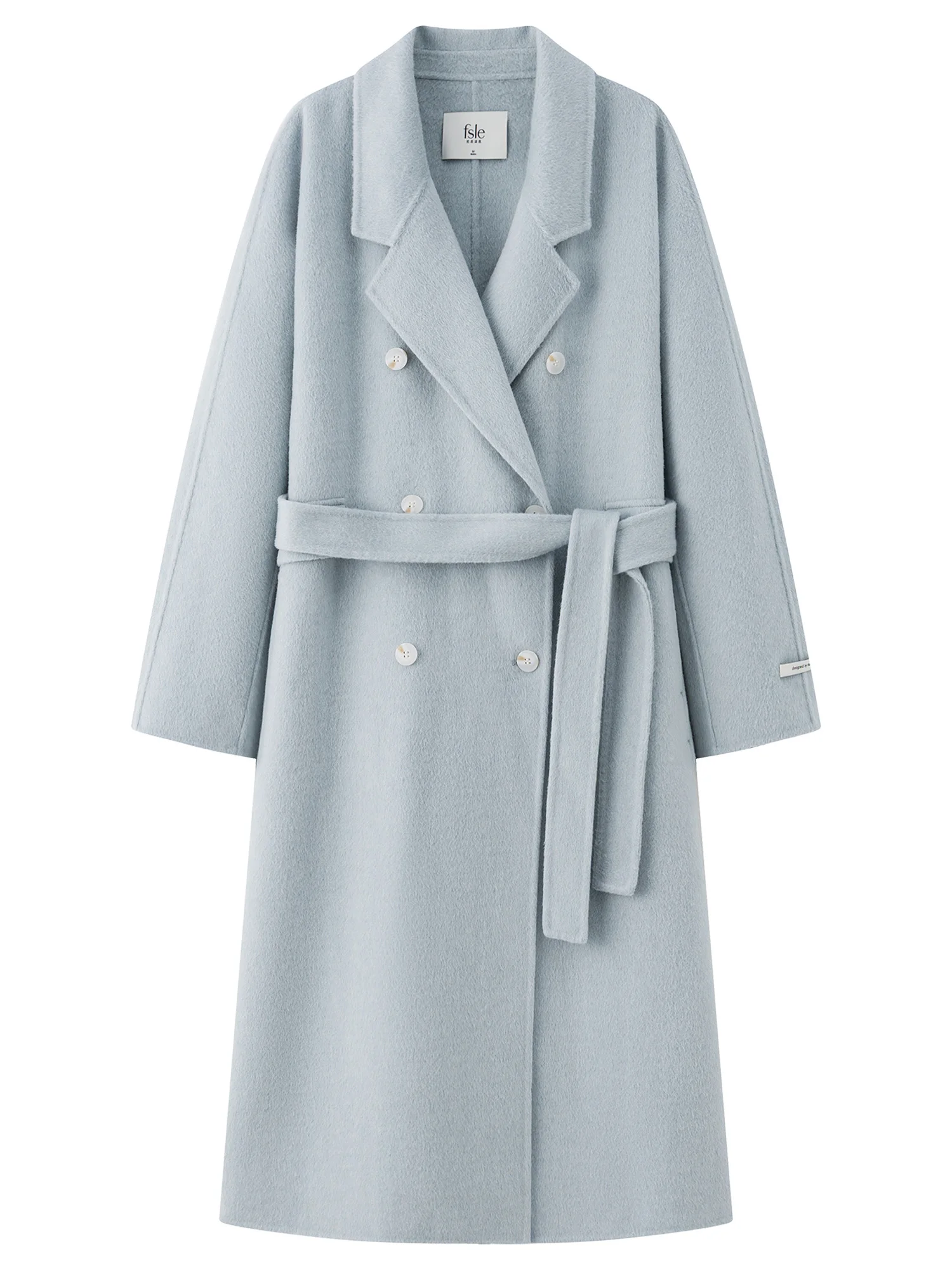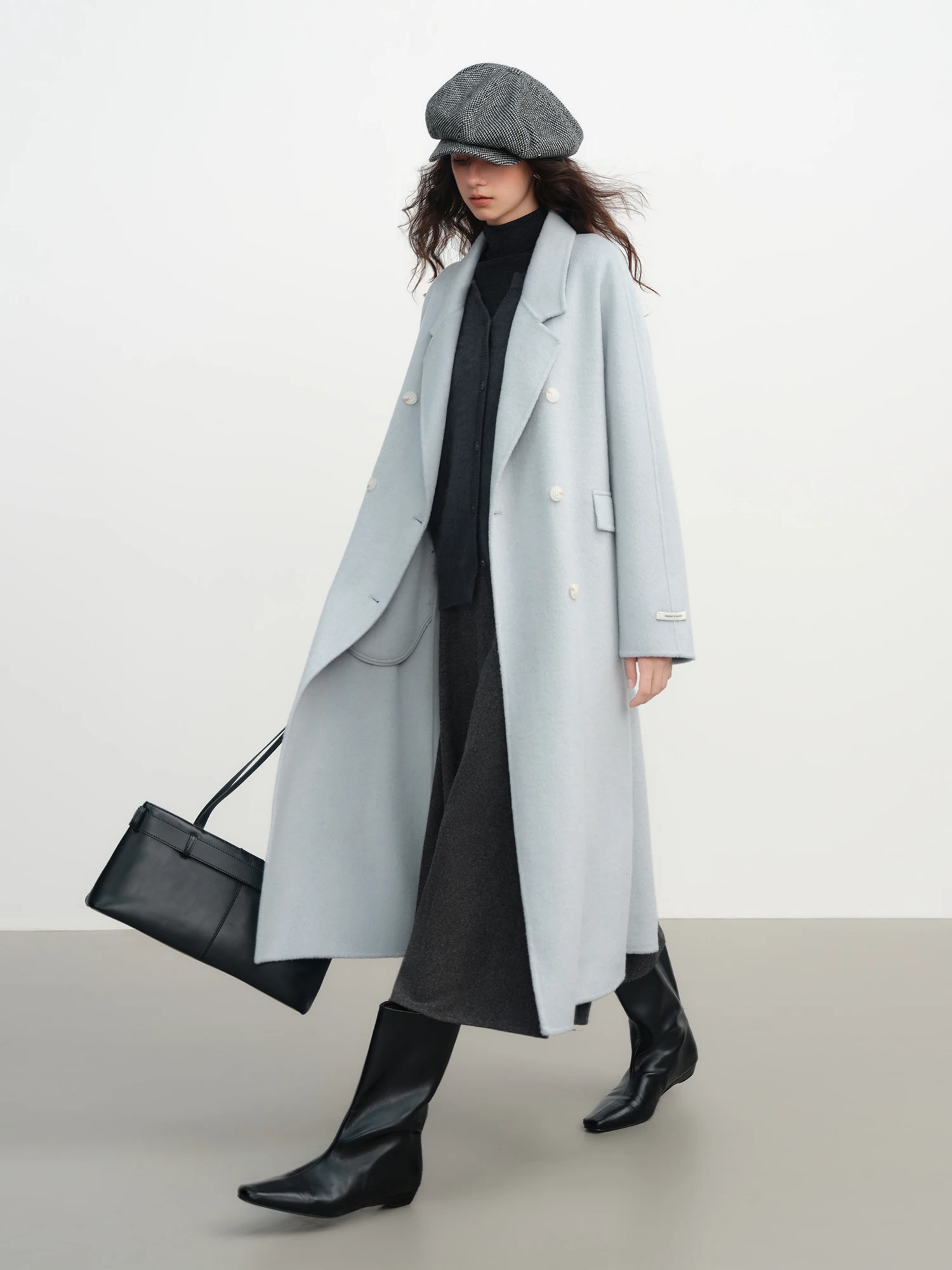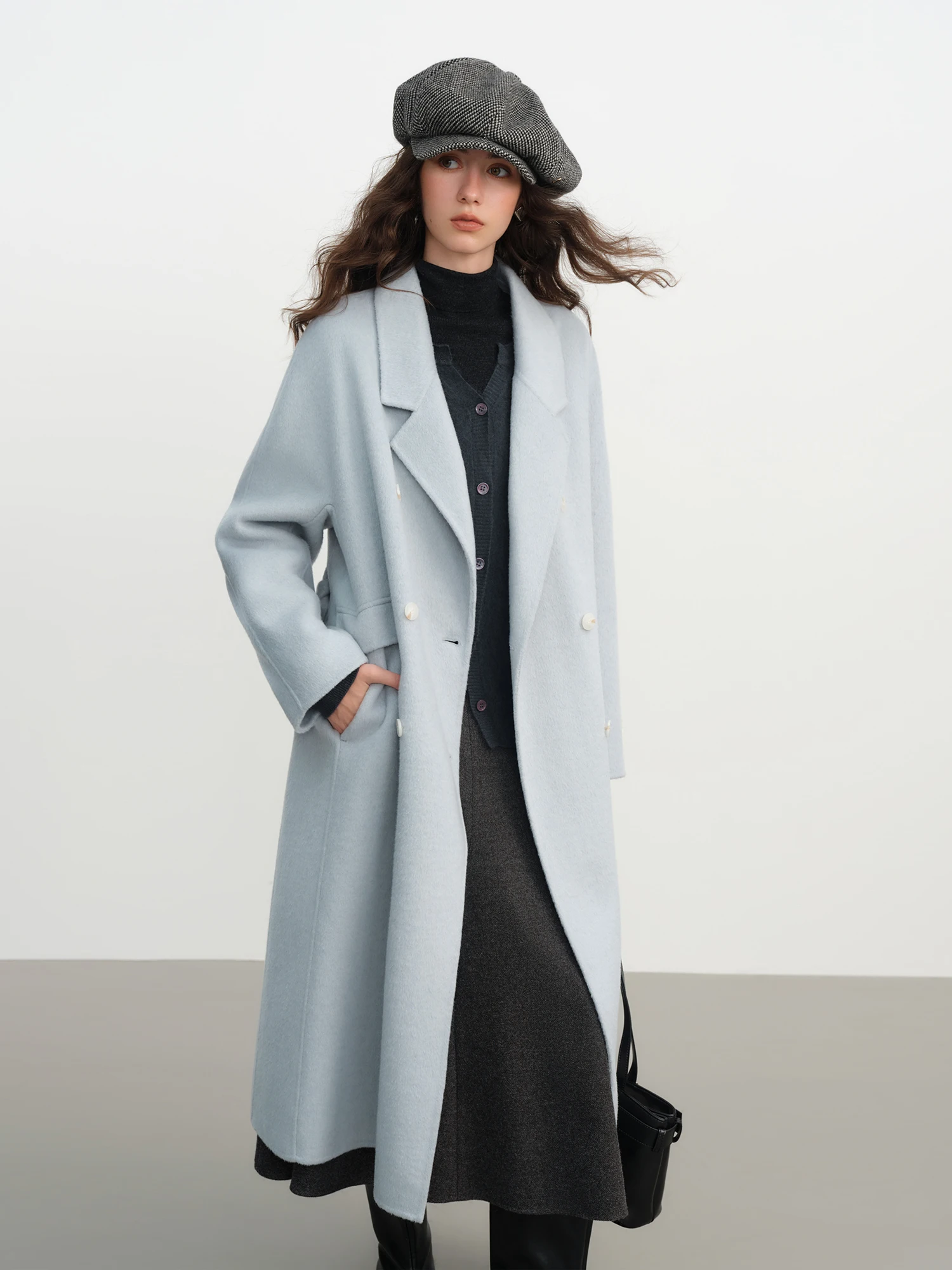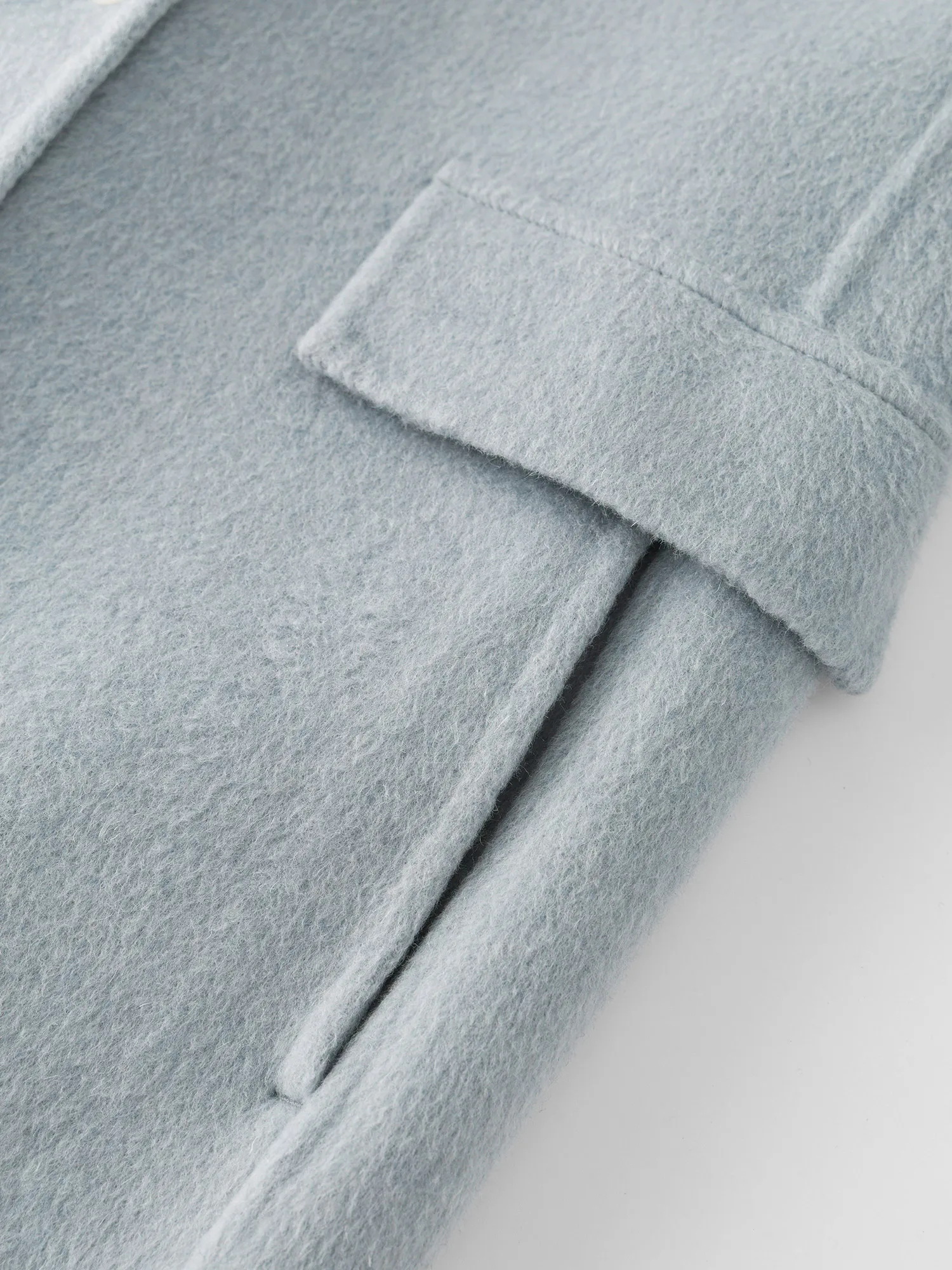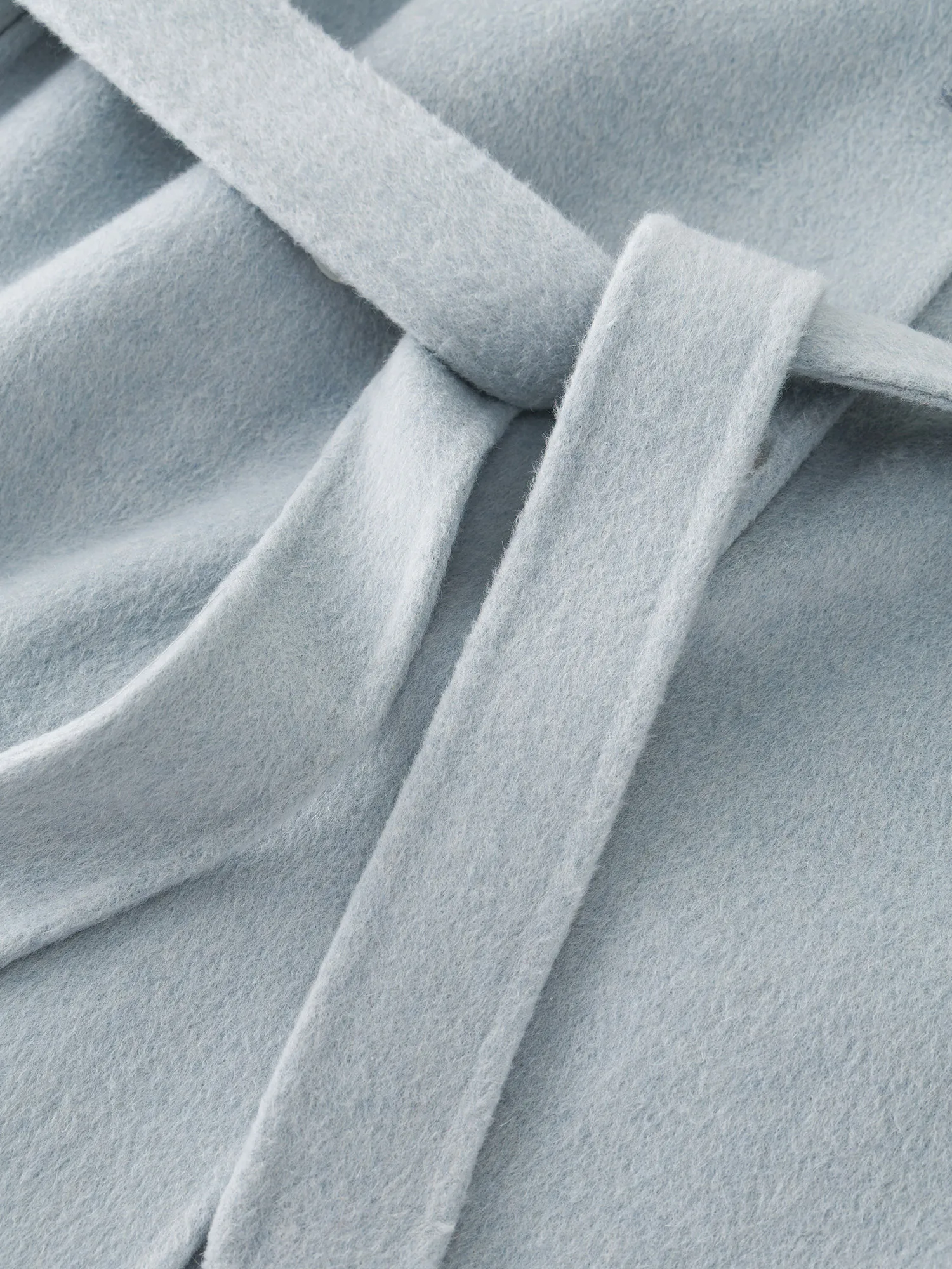 FSLE Cappotto di lana con colletto doppiopetto in cashmere Donna 2025 Pendolarismo invernale Cappotto semplice pigro allentato casual azzurro