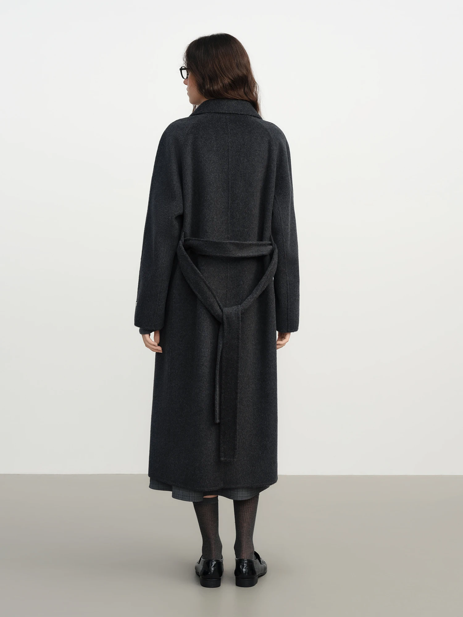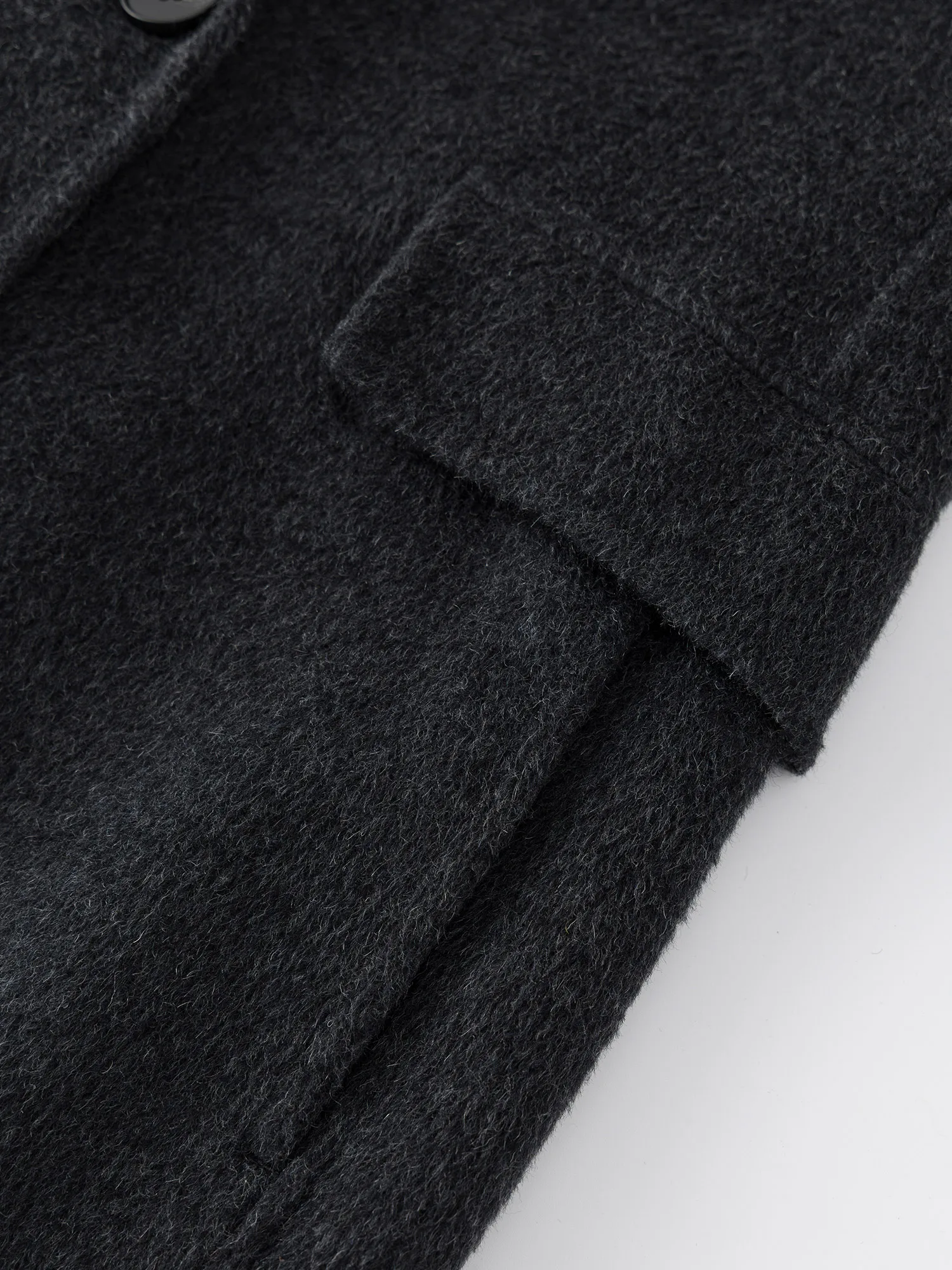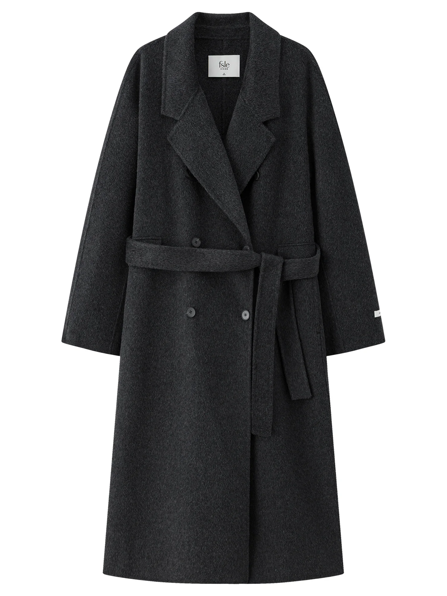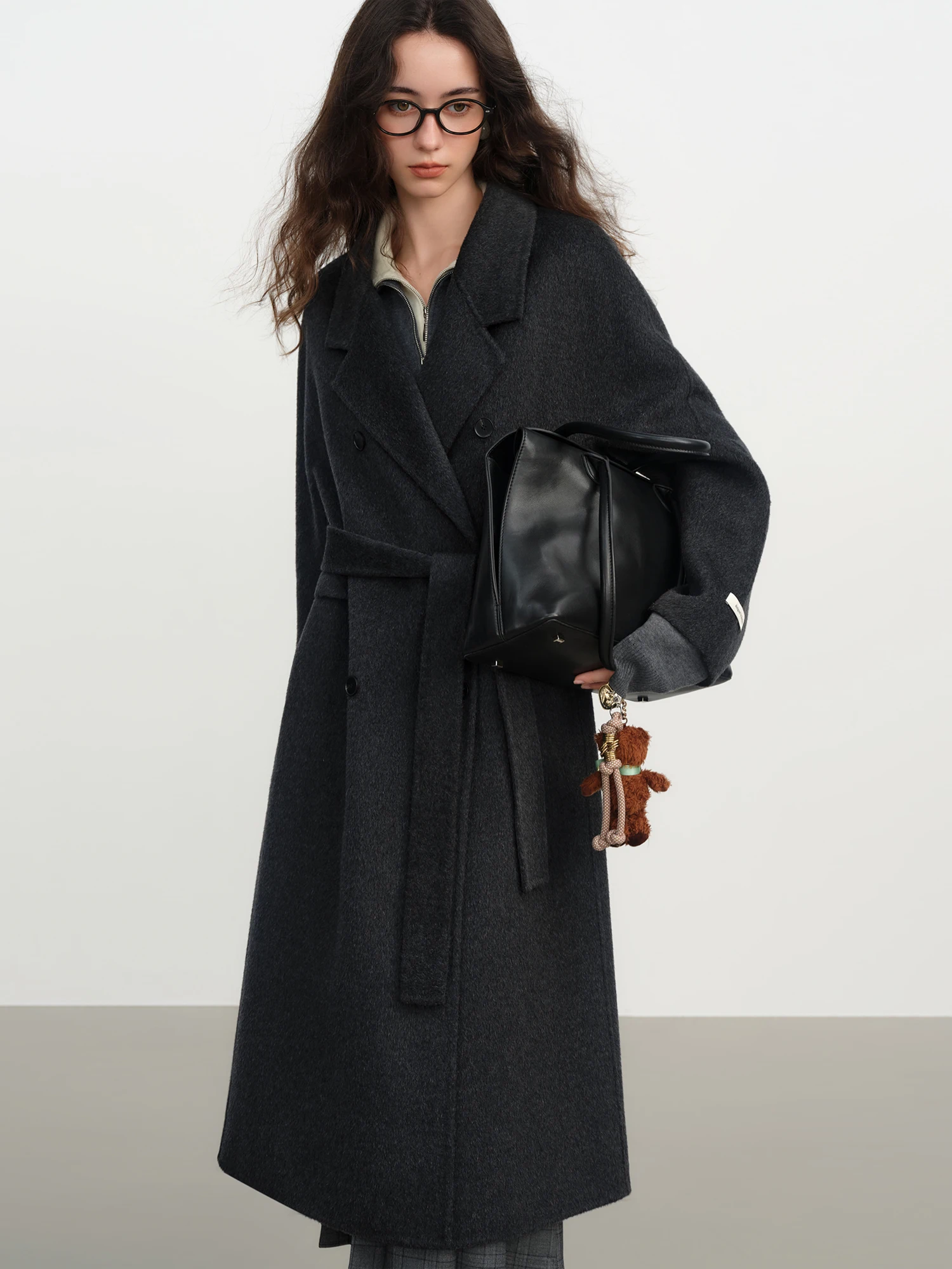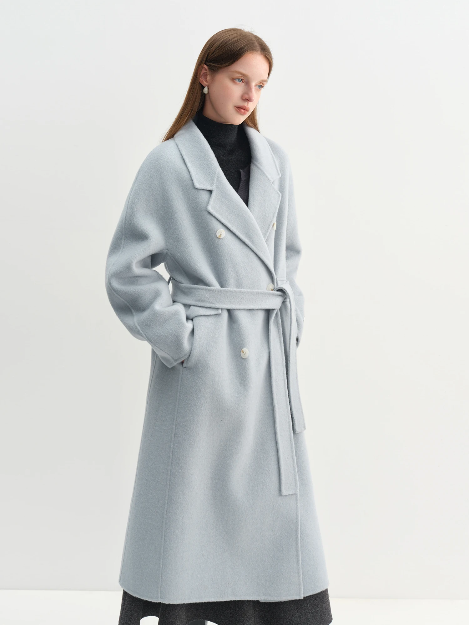 FSLE Cappotto di lana con colletto doppiopetto in cashmere Donna 2025 Pendolarismo invernale Cappotto semplice pigro allentato casual azzurro