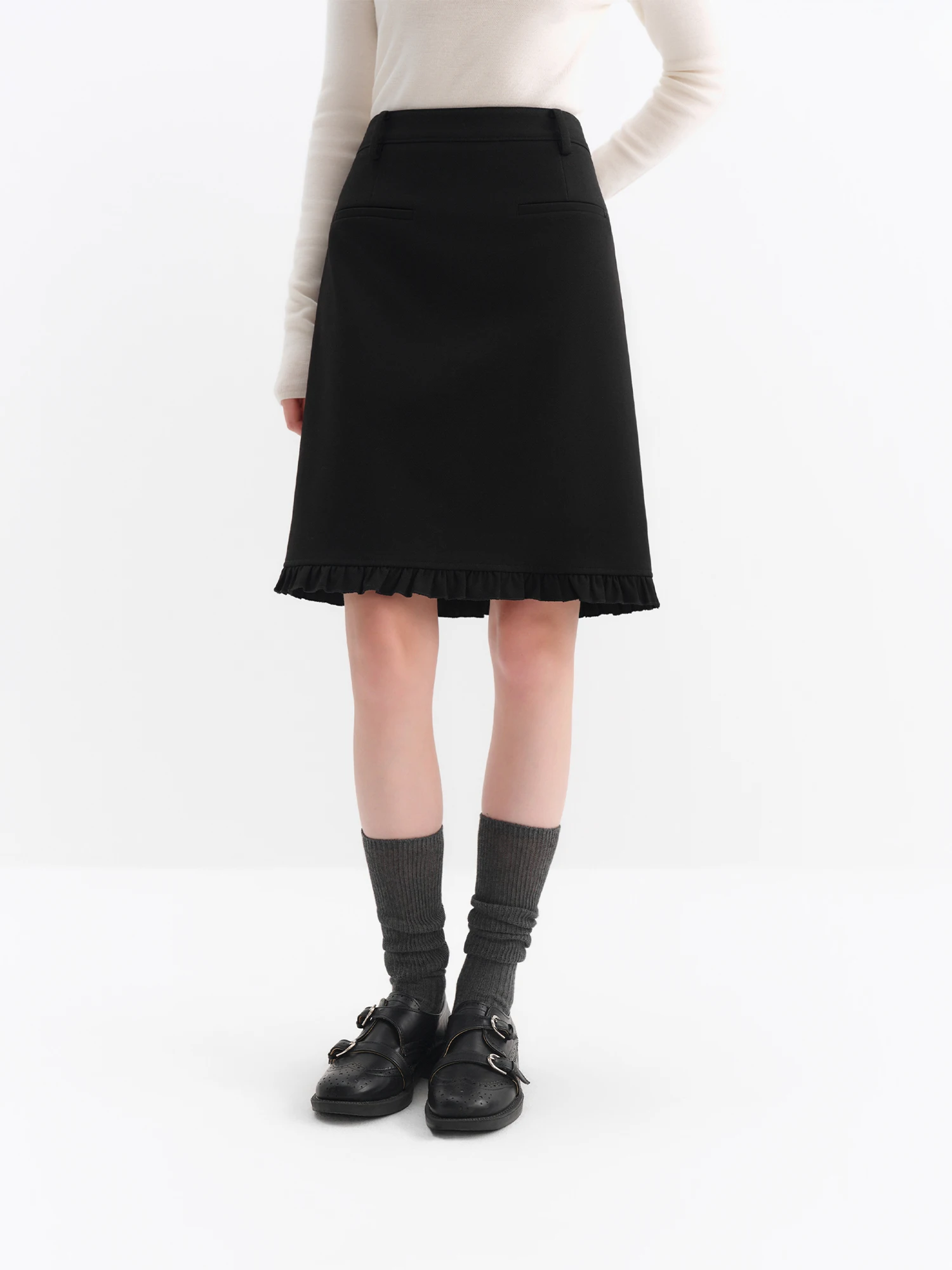 FSLE Design elegante orlo arricciato lusinghiero mezza gonna a trapezio inverno autunno 2025 nuova gonna di arrivo gonne nere alte al ginocchio da ufficio