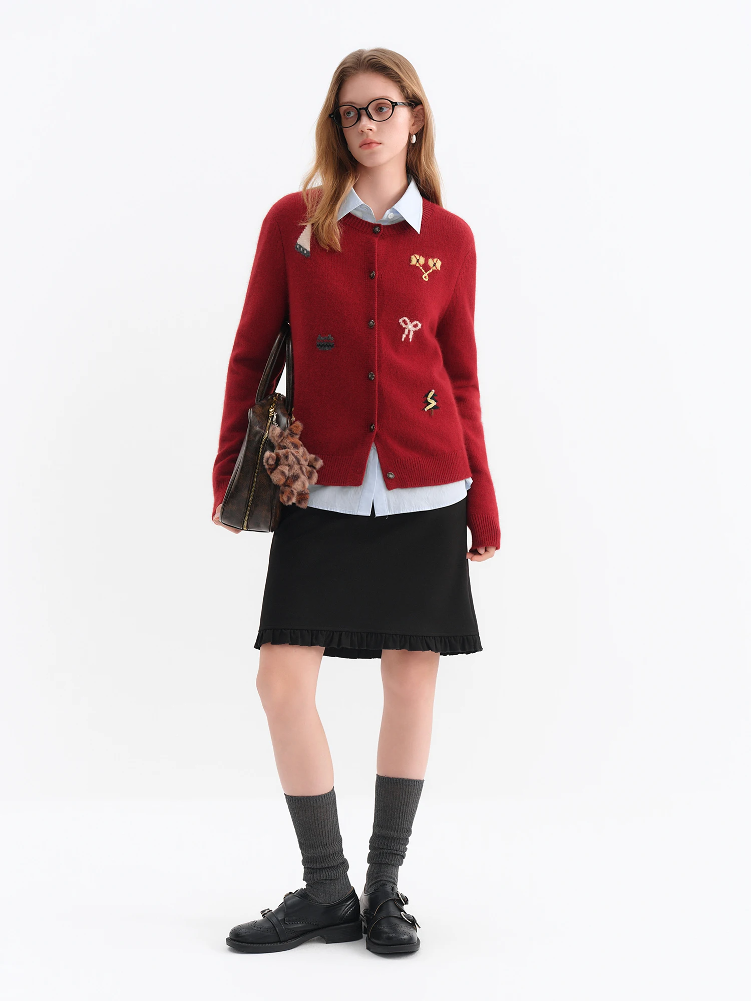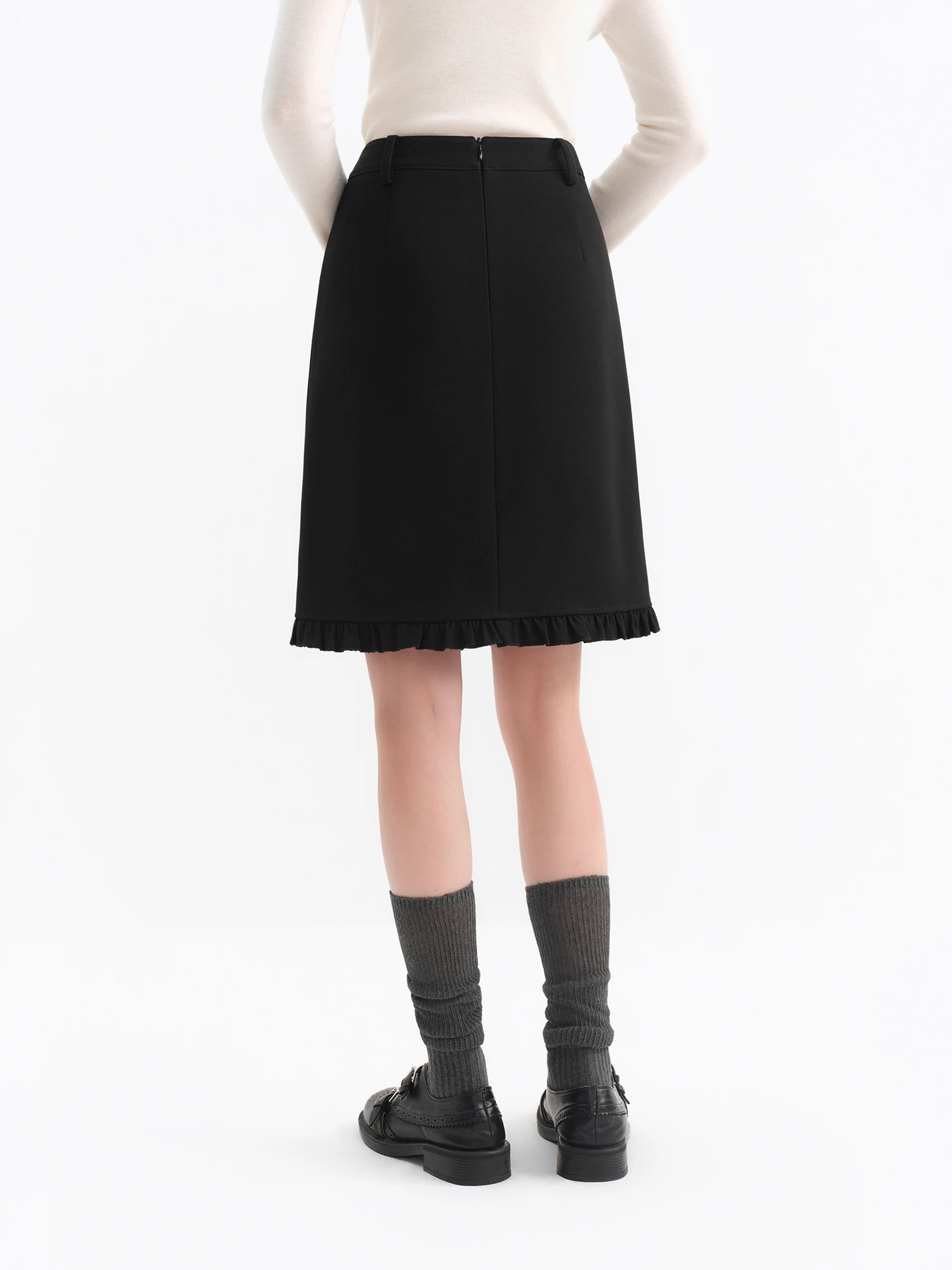 FSLE Design elegante orlo arricciato lusinghiero mezza gonna a trapezio inverno autunno 2025 nuova gonna di arrivo gonne nere alte al ginocchio da ufficio