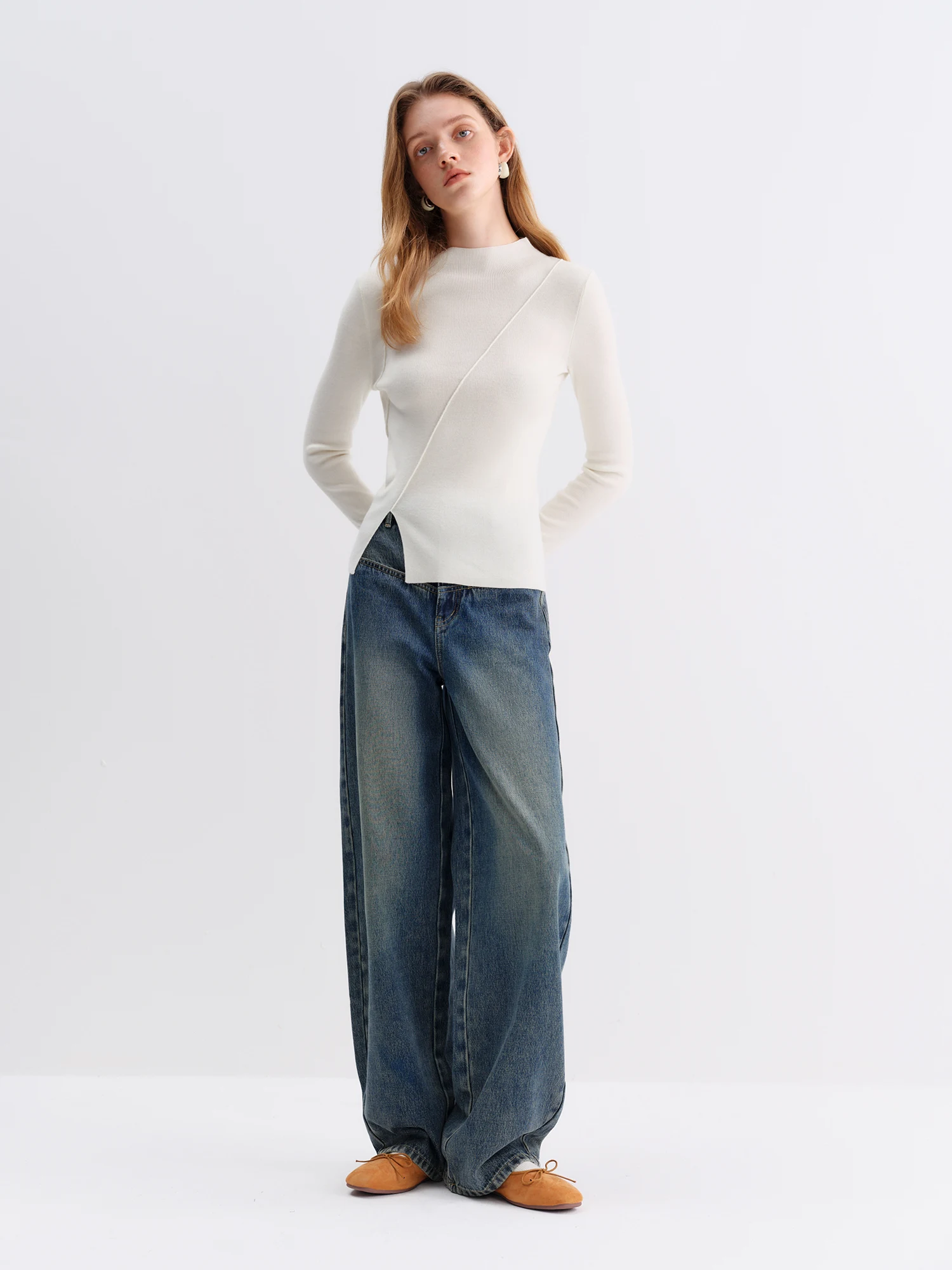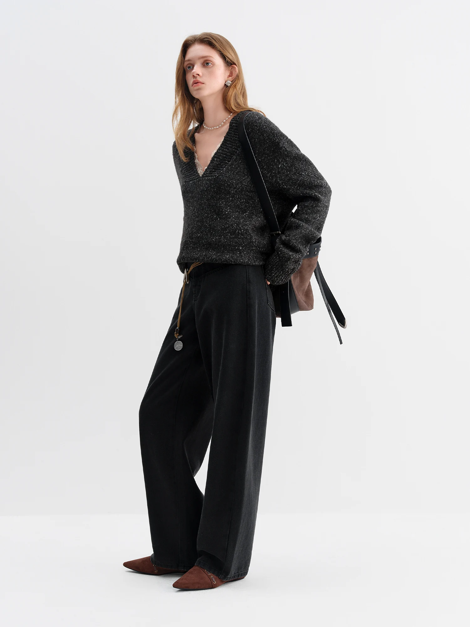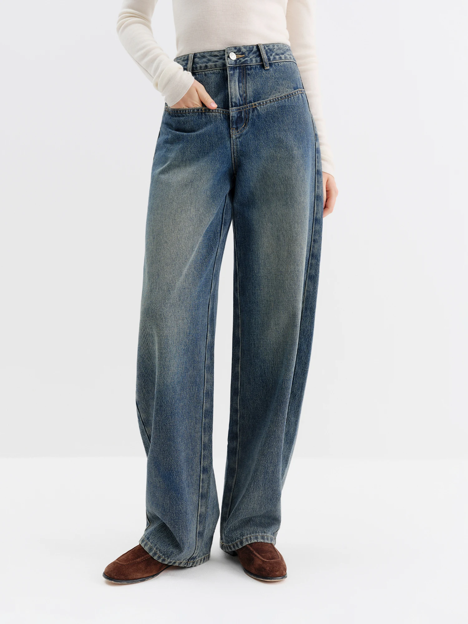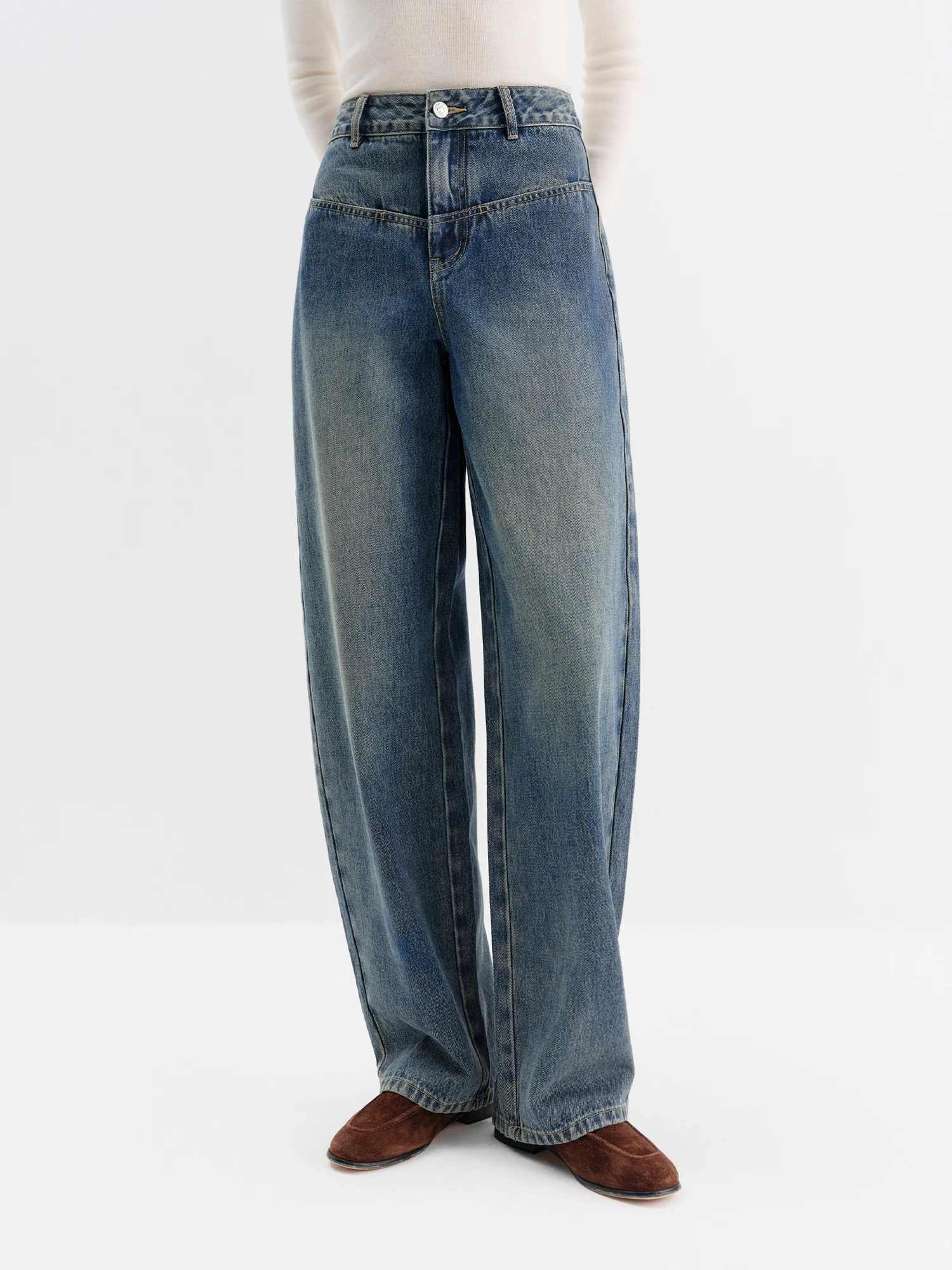 FSLE Jeans a gamba dritta lavati vintage per donna Pantaloni oversize a vita alta a gamba larga Autunno/Inverno 2025 Nuova collezione di arrivi