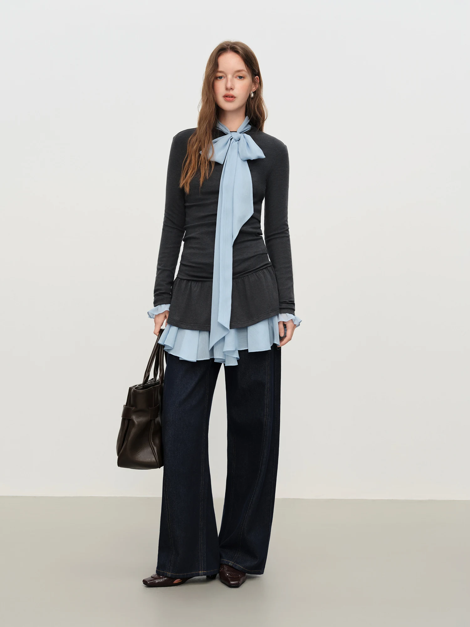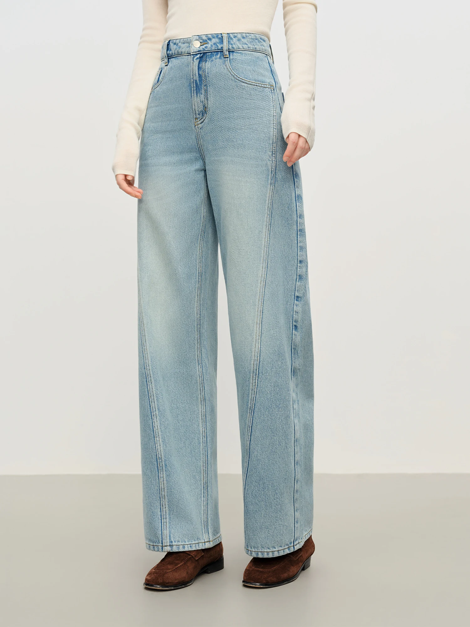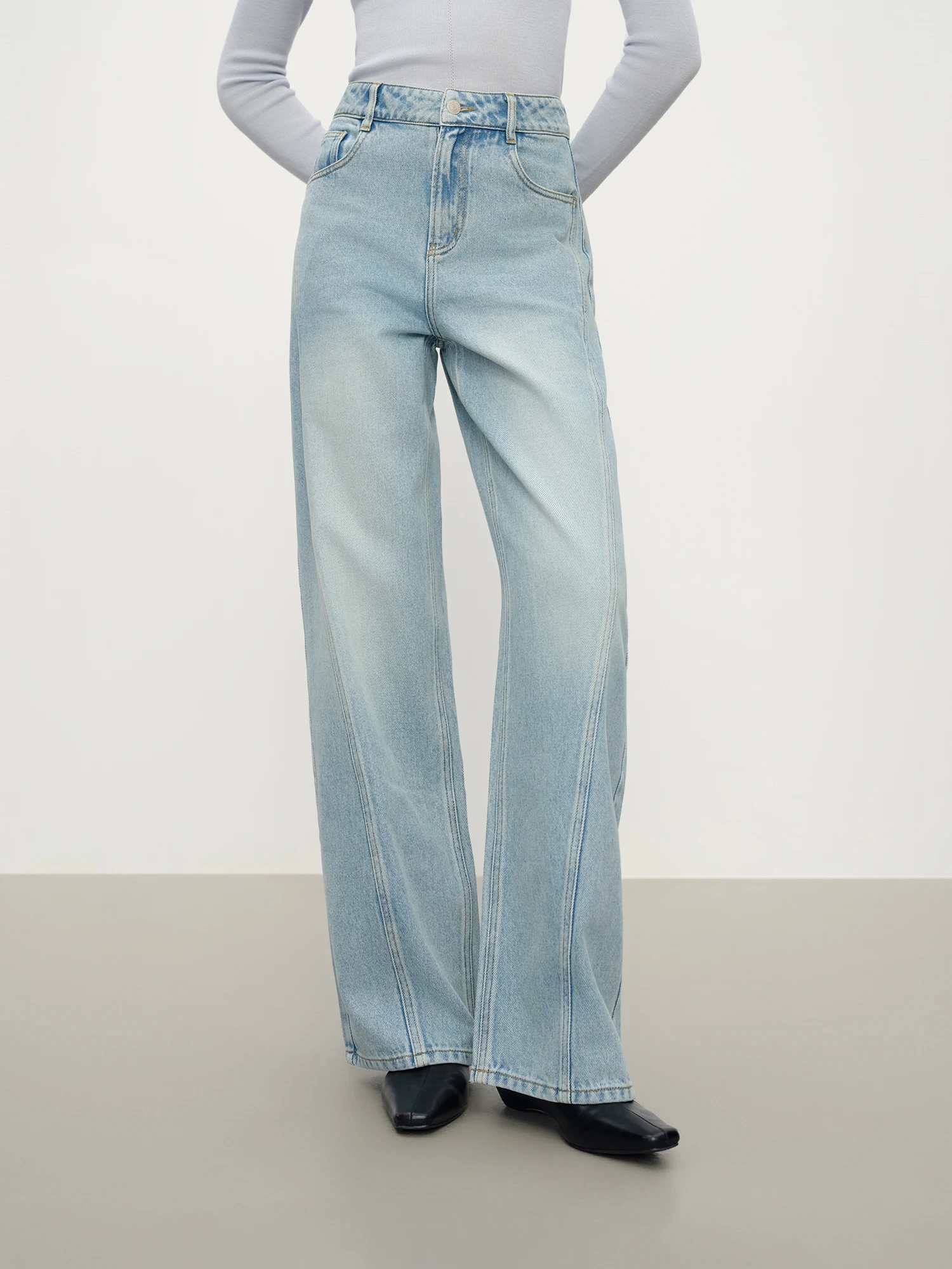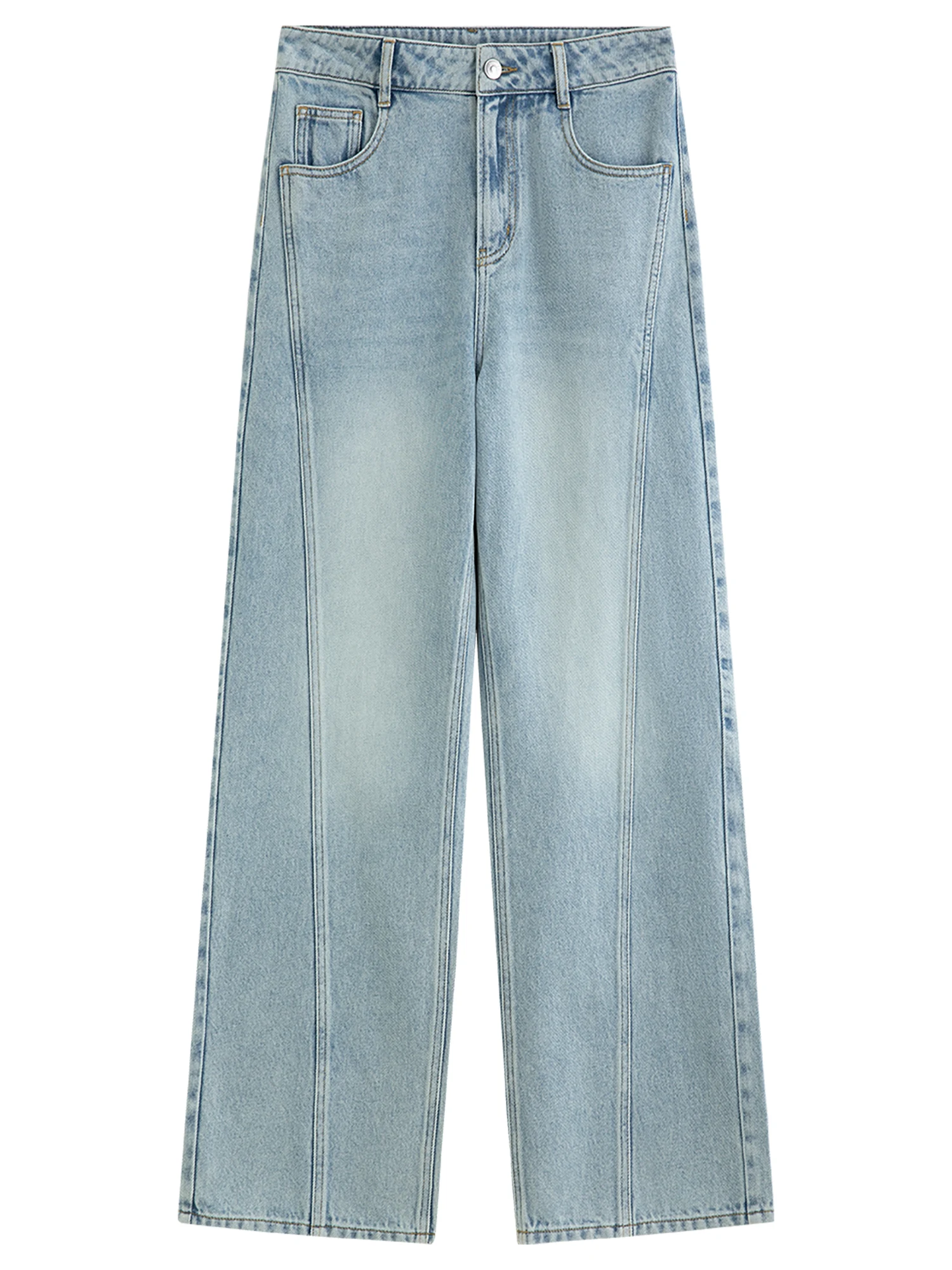 FSLE Jeans versatili casual blu dritti retrò per donna Inverno 2025 Nuovo outfit quotidiano ampio All-match