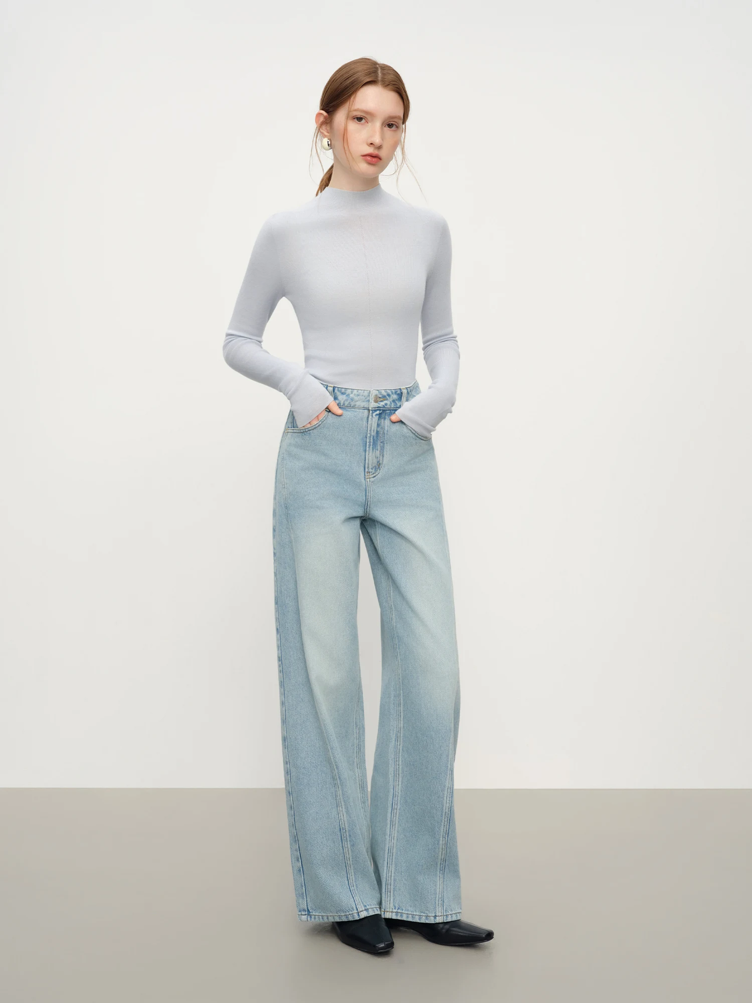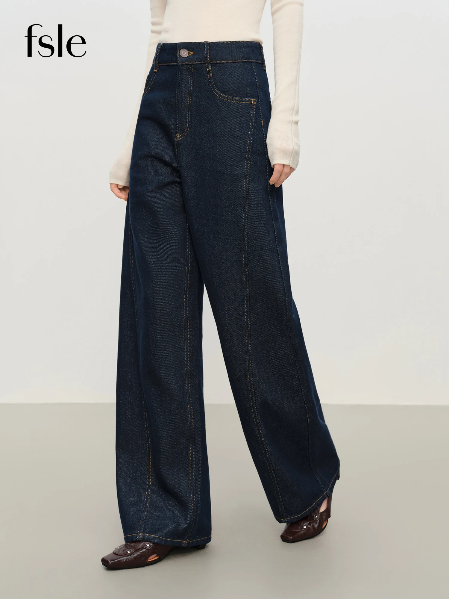 FSLE Jeans versatili casual blu dritti retrò per donna Inverno 2025 Nuovo outfit quotidiano ampio All-match