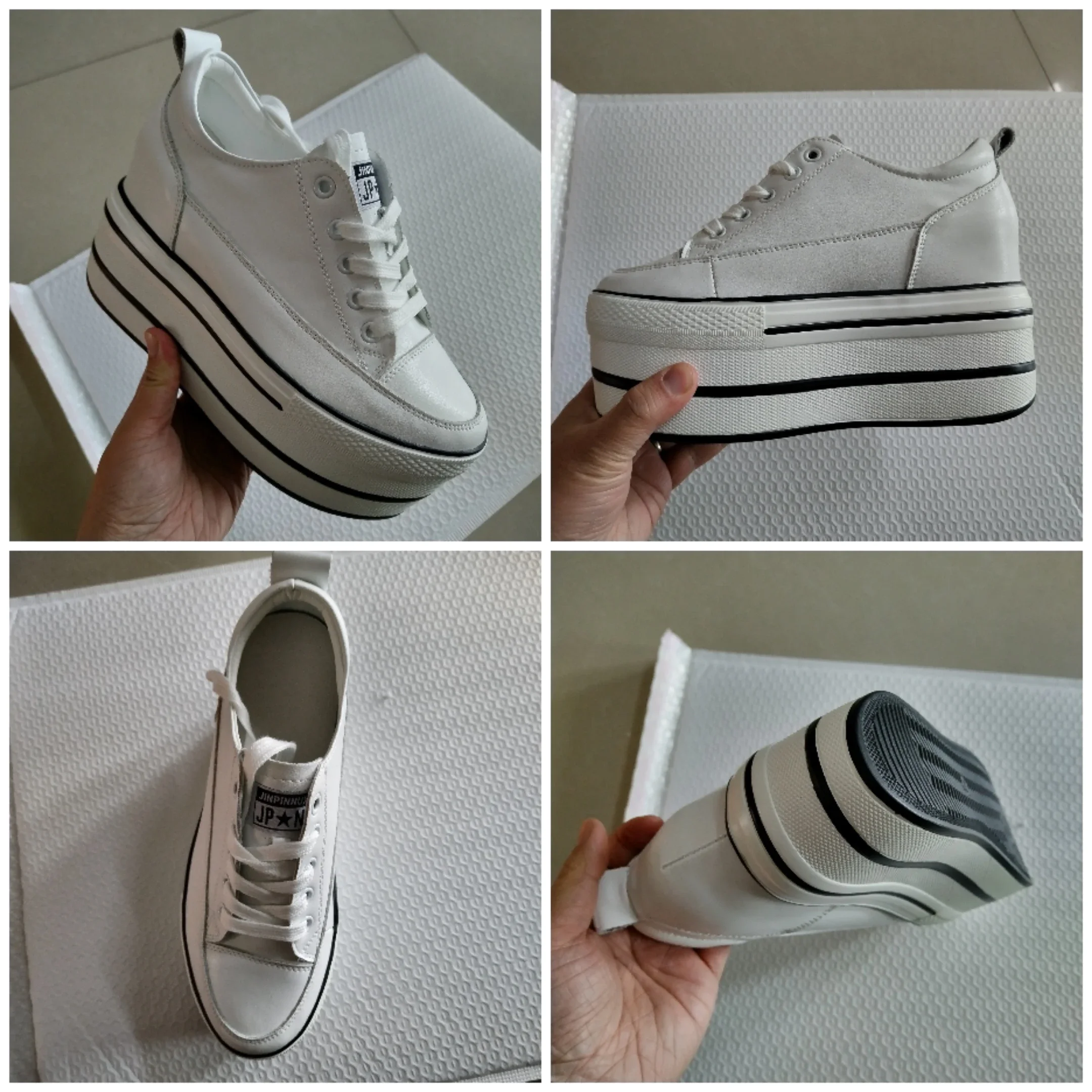 Fujin 10,5 cm tacco alto e spesso plateau appartamenti scarpe casual da donna scarpe da ginnastica casual in vera pelle di qualità morbida bianco nero