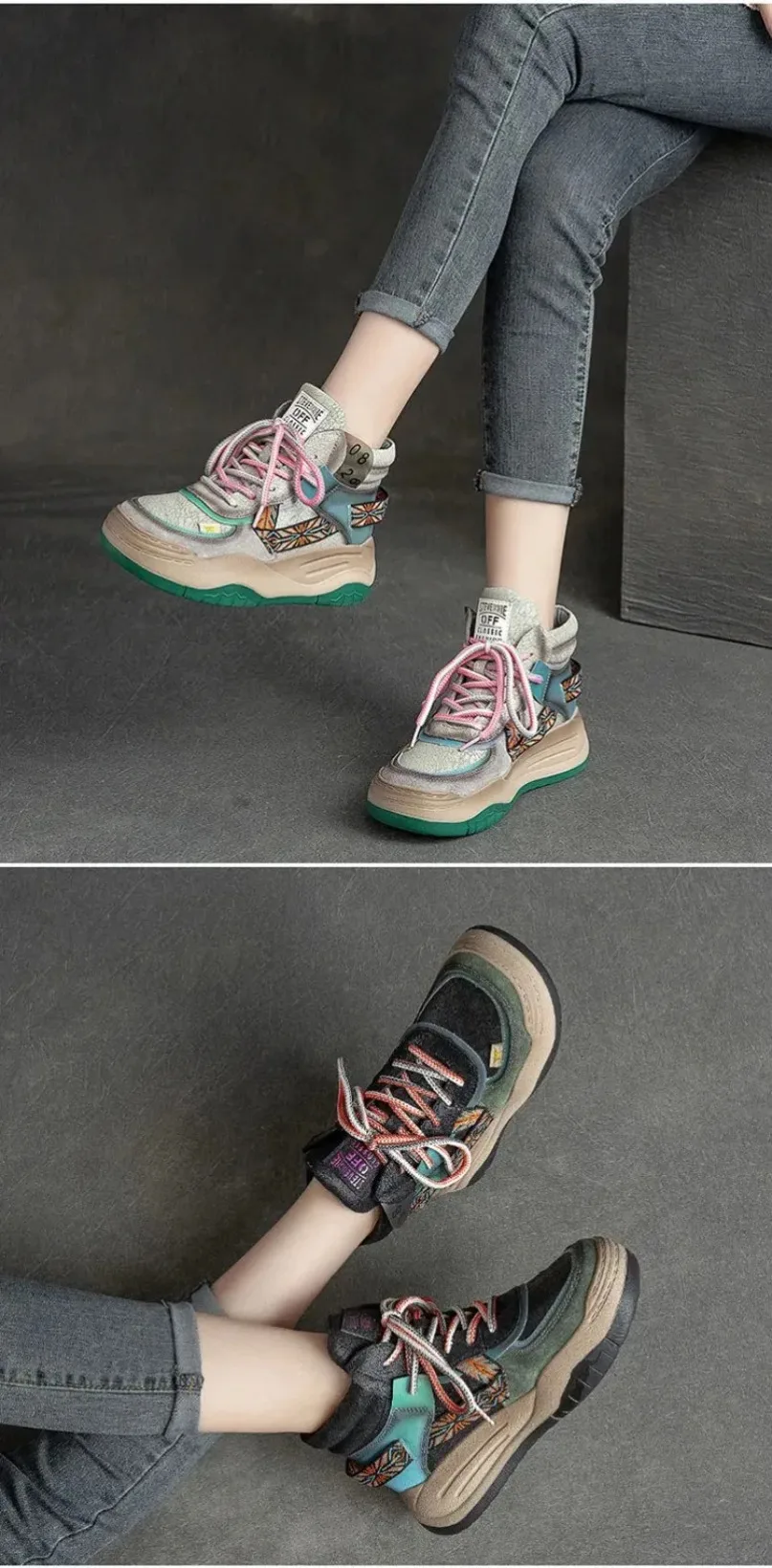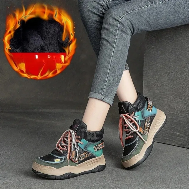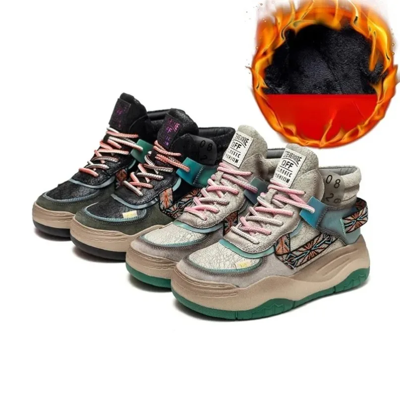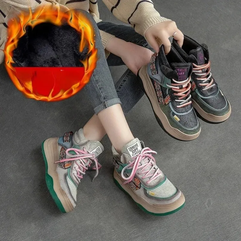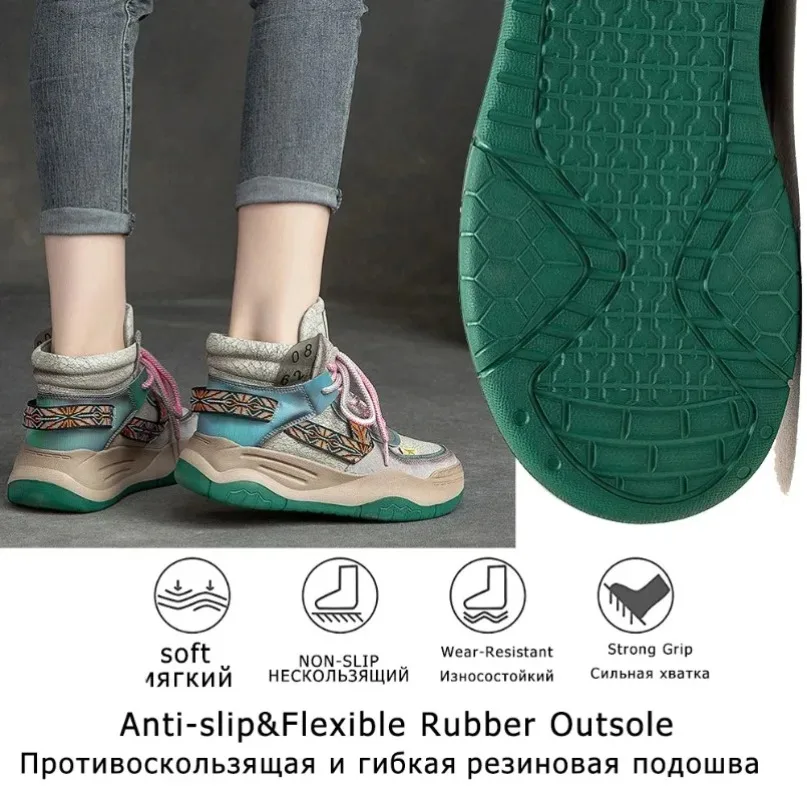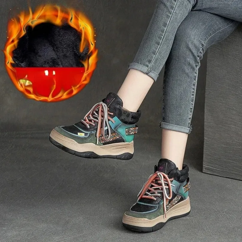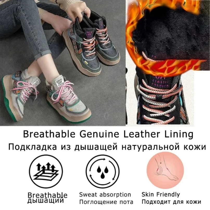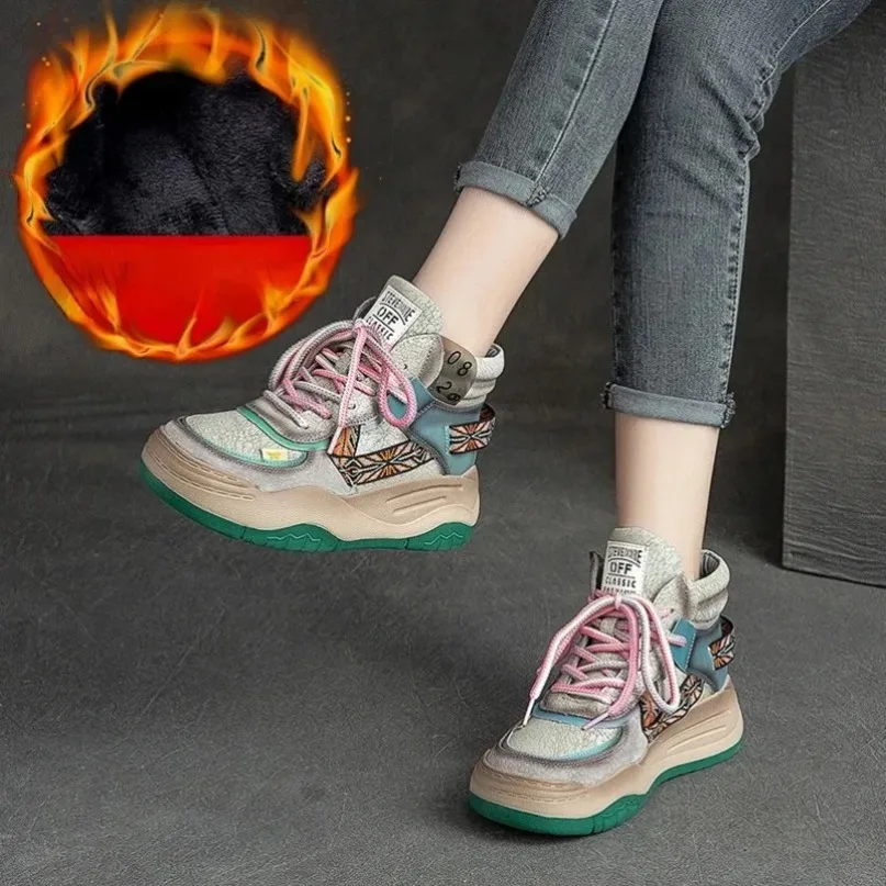 Fujin 5CM Sneakers con plateau in vera pelle Donna Lady Platform Causale Autunno Autunno Inverno Moda Sneakers Scarpe Stivaletti
