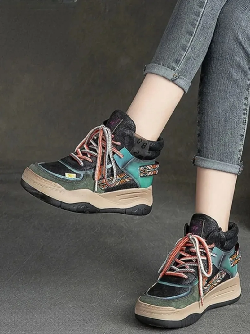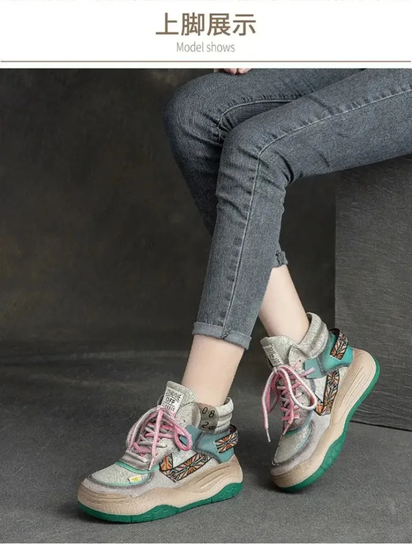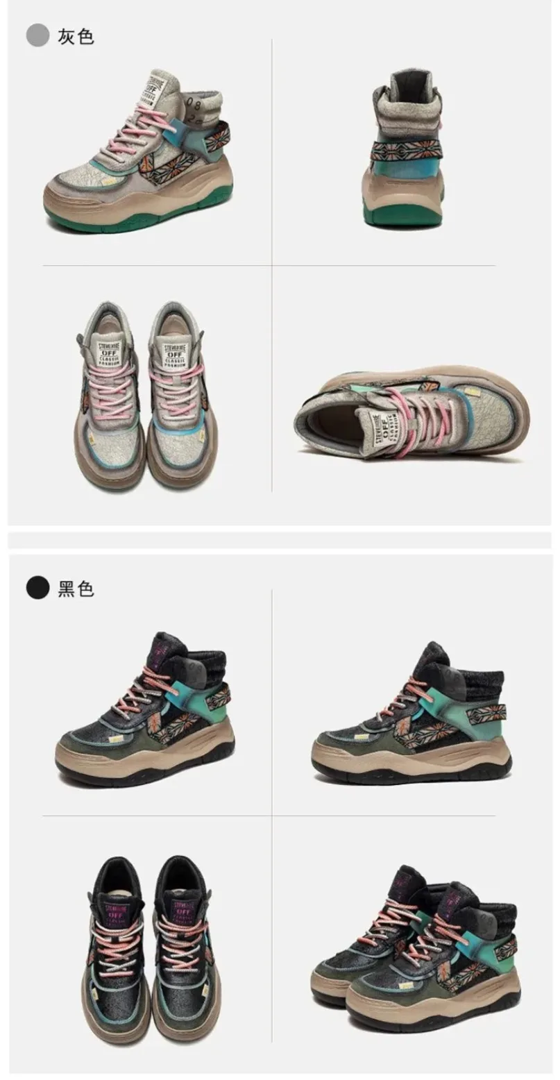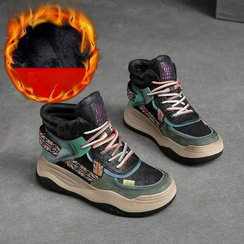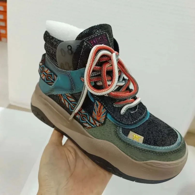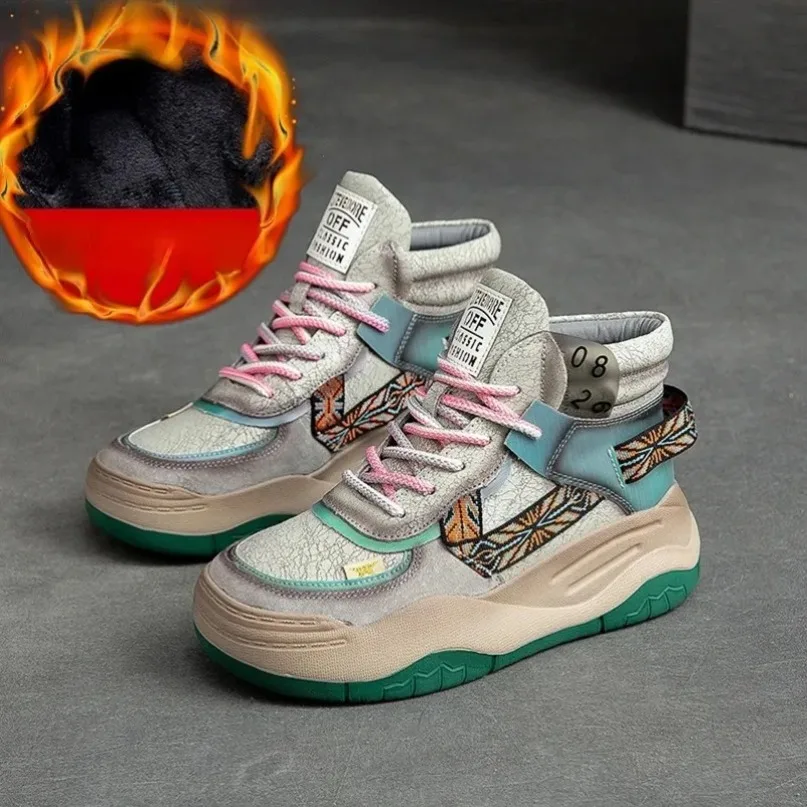 Fujin 5CM Sneakers con plateau in vera pelle Donna Lady Platform Causale Autunno Autunno Inverno Moda Sneakers Scarpe Stivaletti