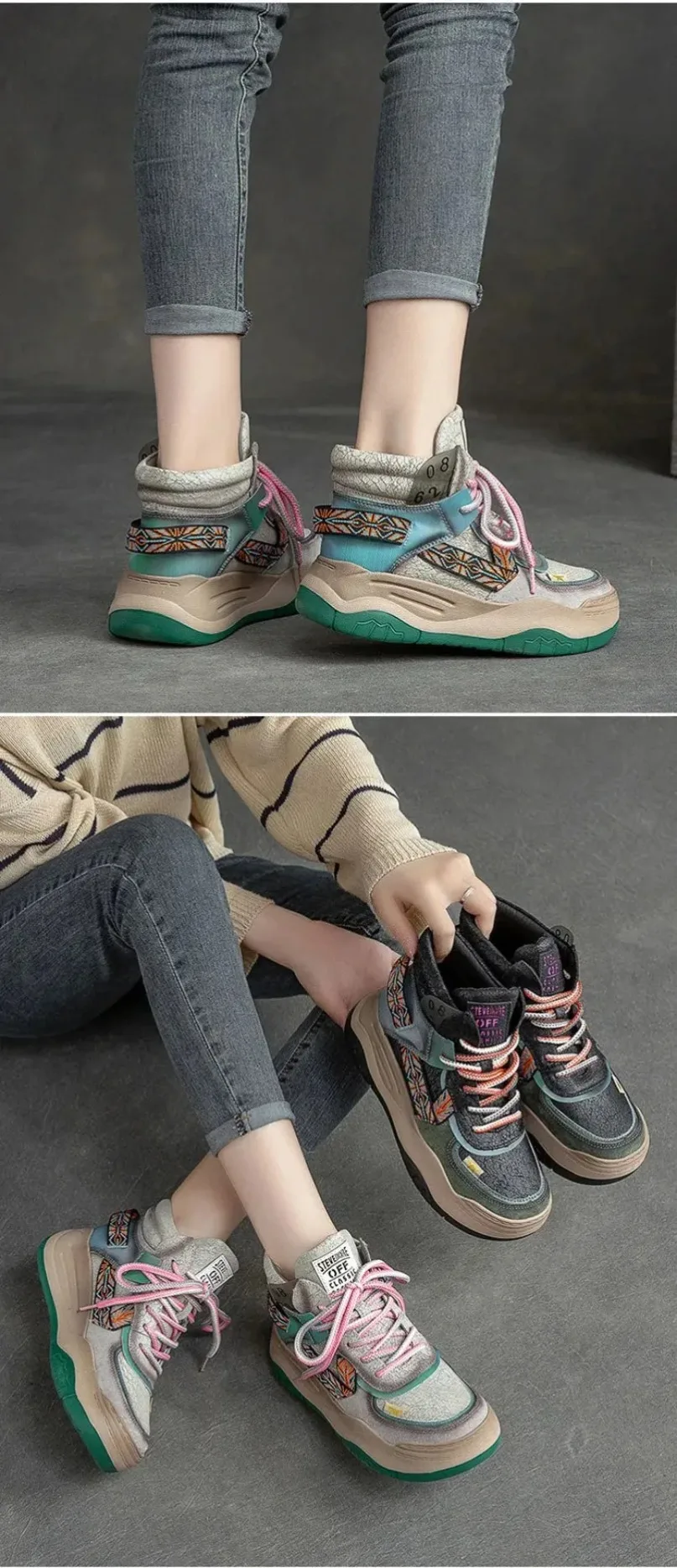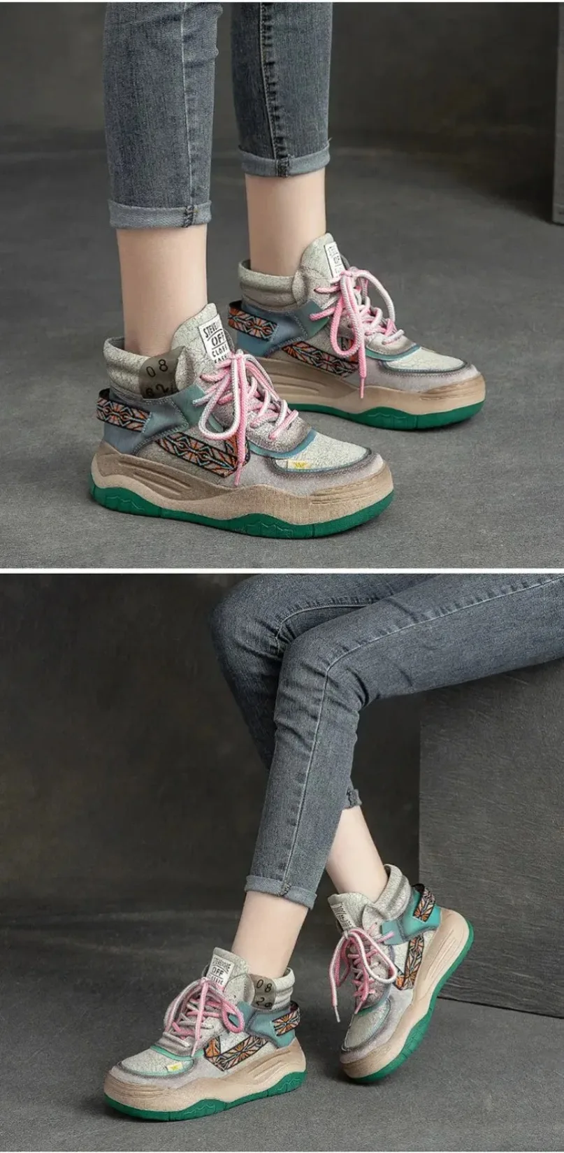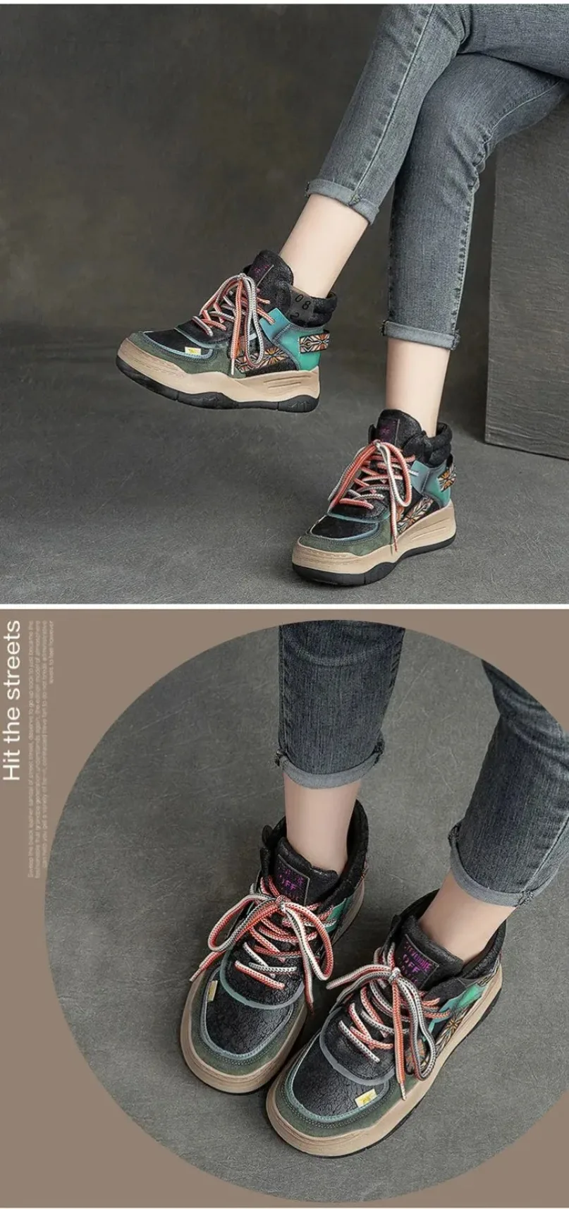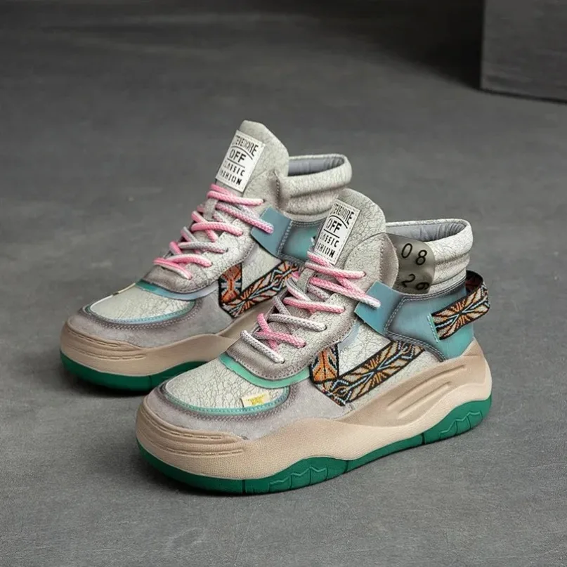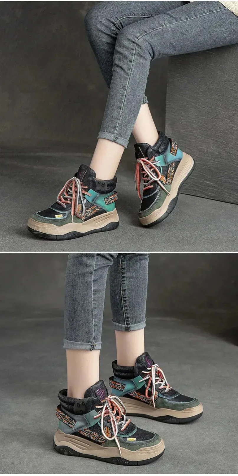 Fujin 5CM Sneakers con plateau in vera pelle Donna Lady Platform Causale Autunno Autunno Inverno Moda Sneakers Scarpe Stivaletti