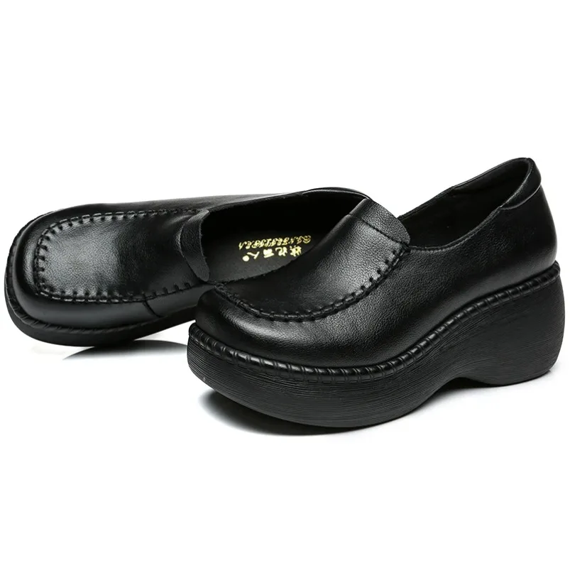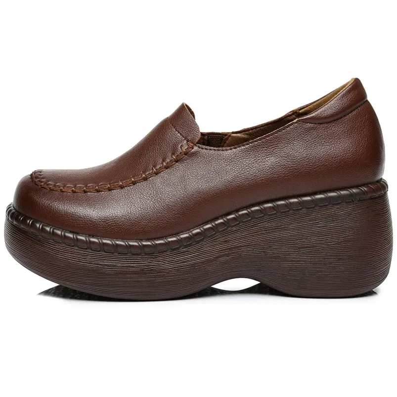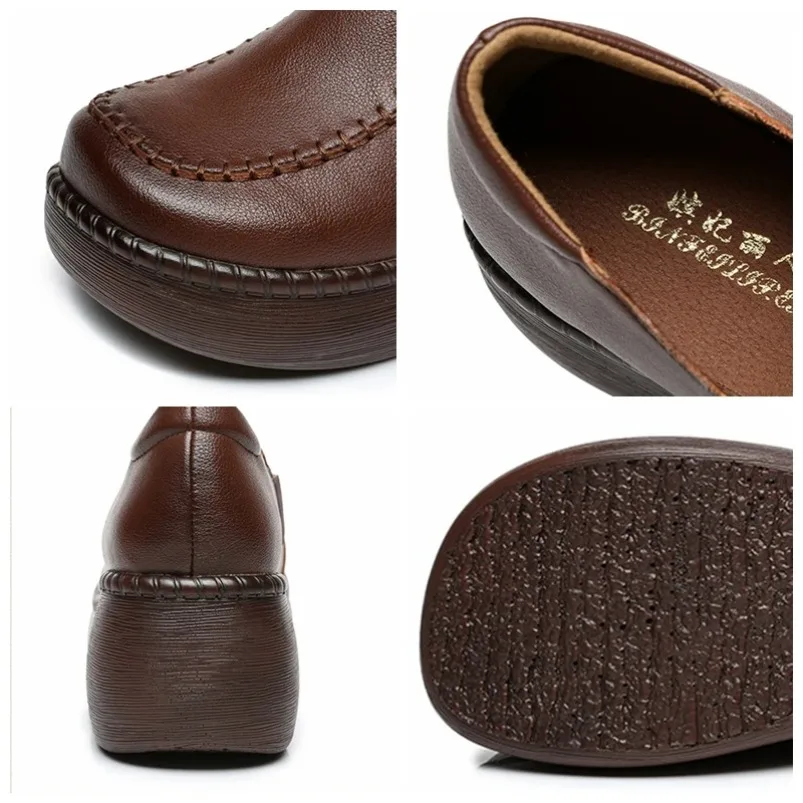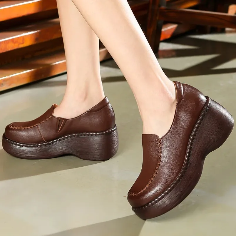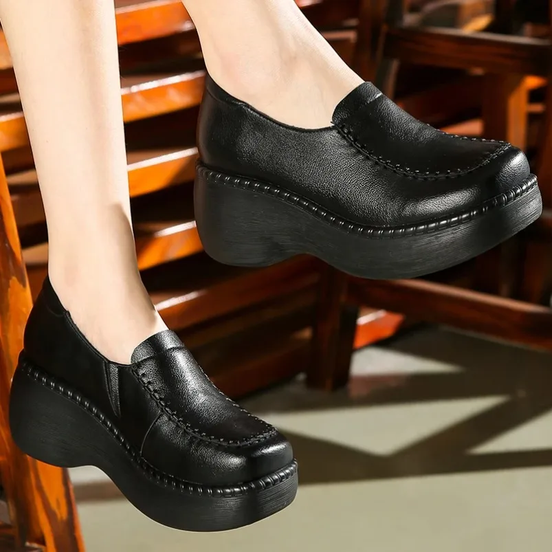 Fujin Décolleté con zeppa di lusso da donna Retro Mary Jane Scarpe da donna in vera pelle di mucca 6 cm Tacchi da donna Piattaforma moda estiva appartamenti
