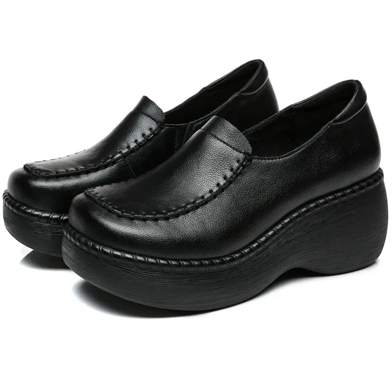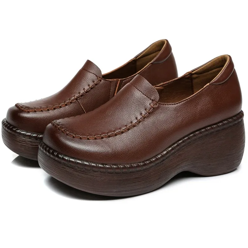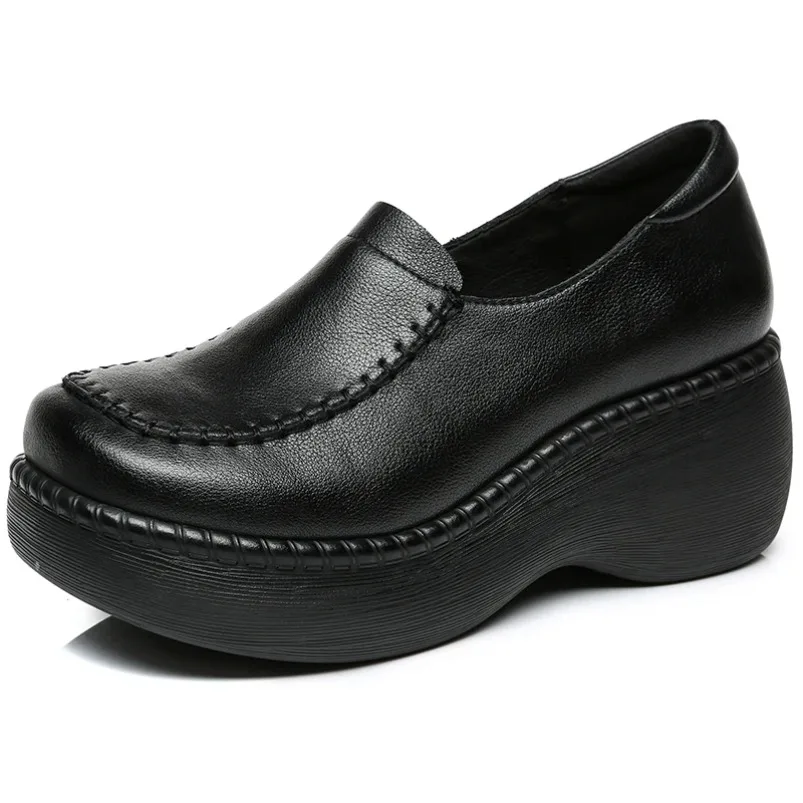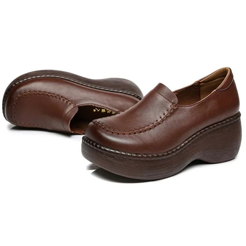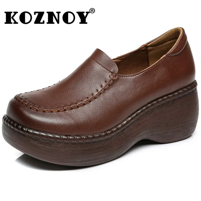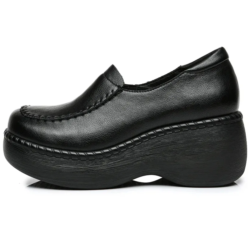 Fujin Décolleté con zeppa di lusso da donna Retro Mary Jane Scarpe da donna in vera pelle di mucca 6 cm Tacchi da donna Piattaforma moda estiva appartamenti