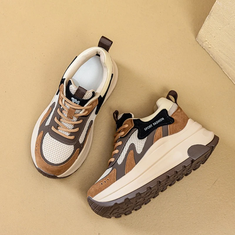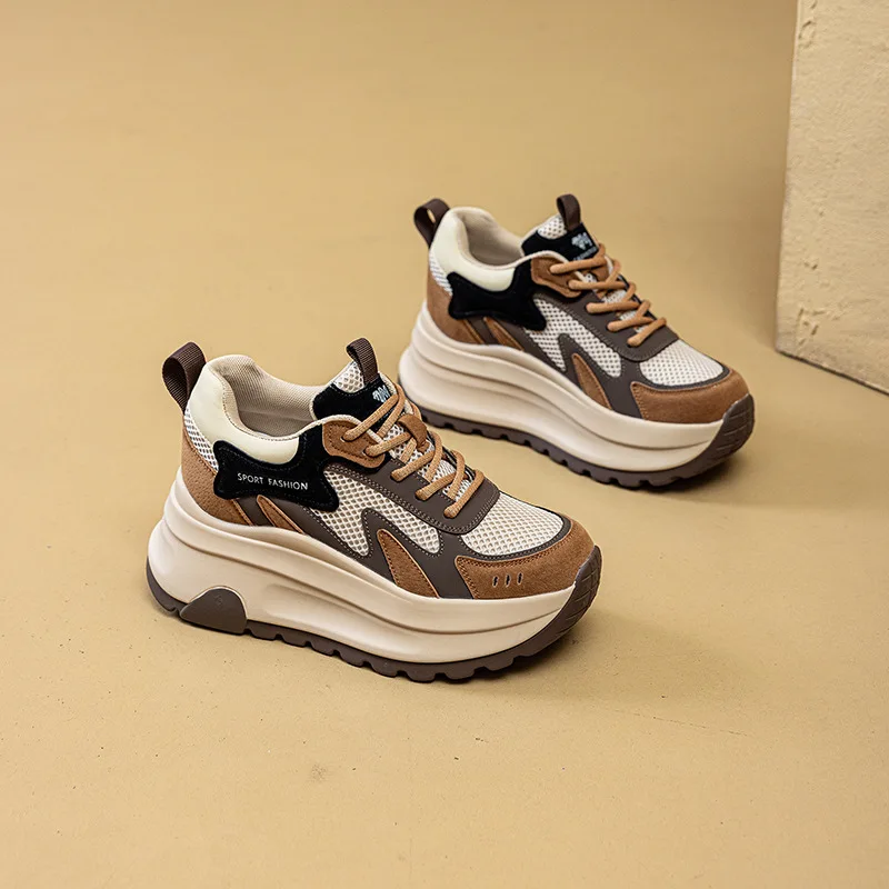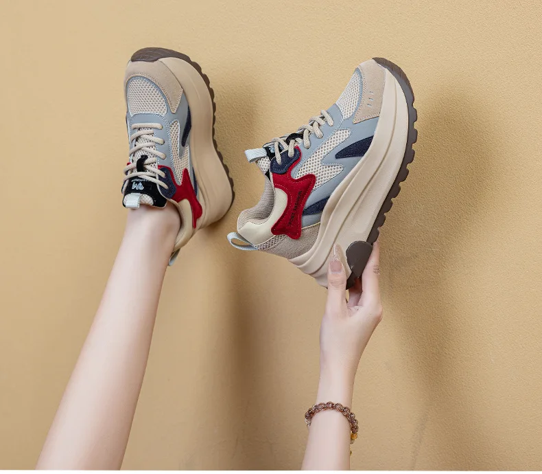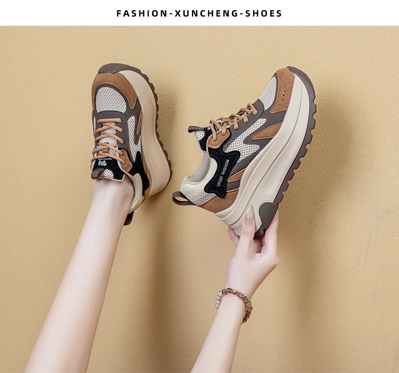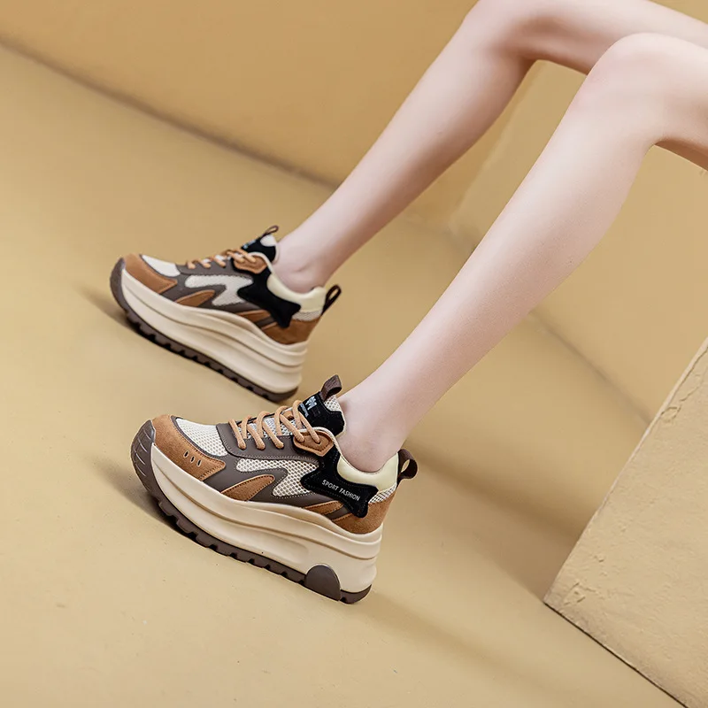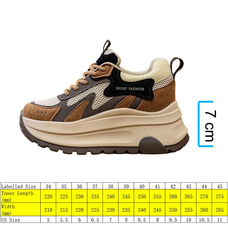 Fujin Sneakers con plateau da 7 cm Scarpe casual da donna in pelle microfibra Sneakers robuste per scarpe da passeggio da donna comode Primavera Autunno