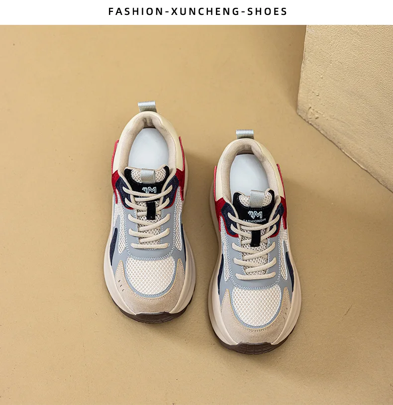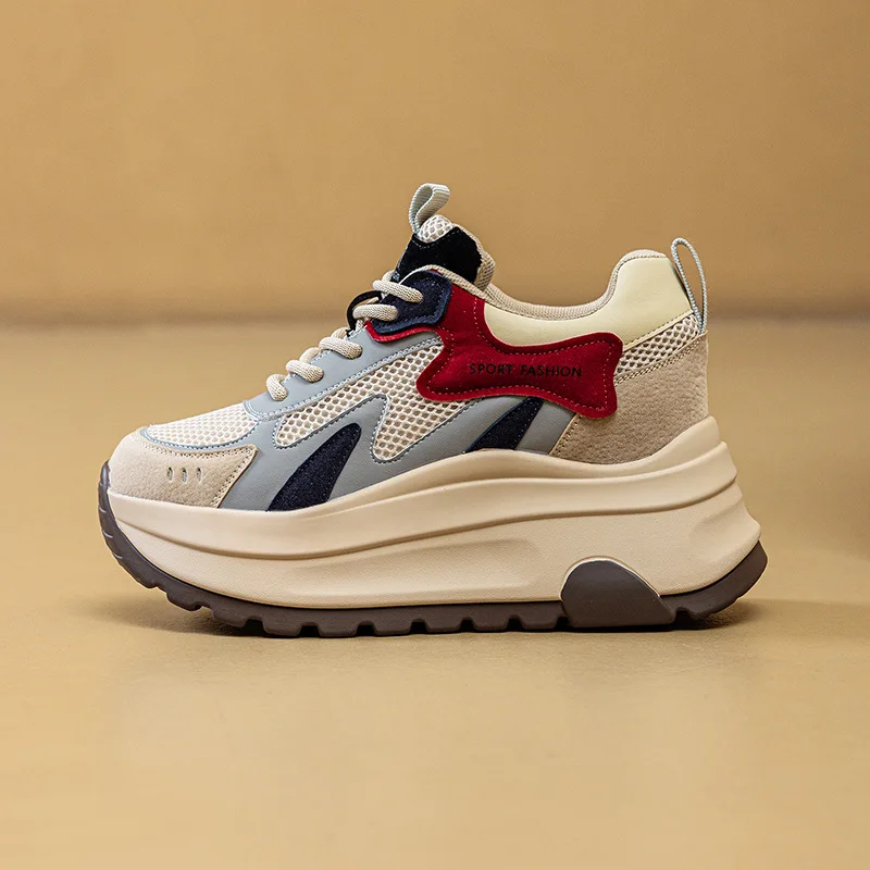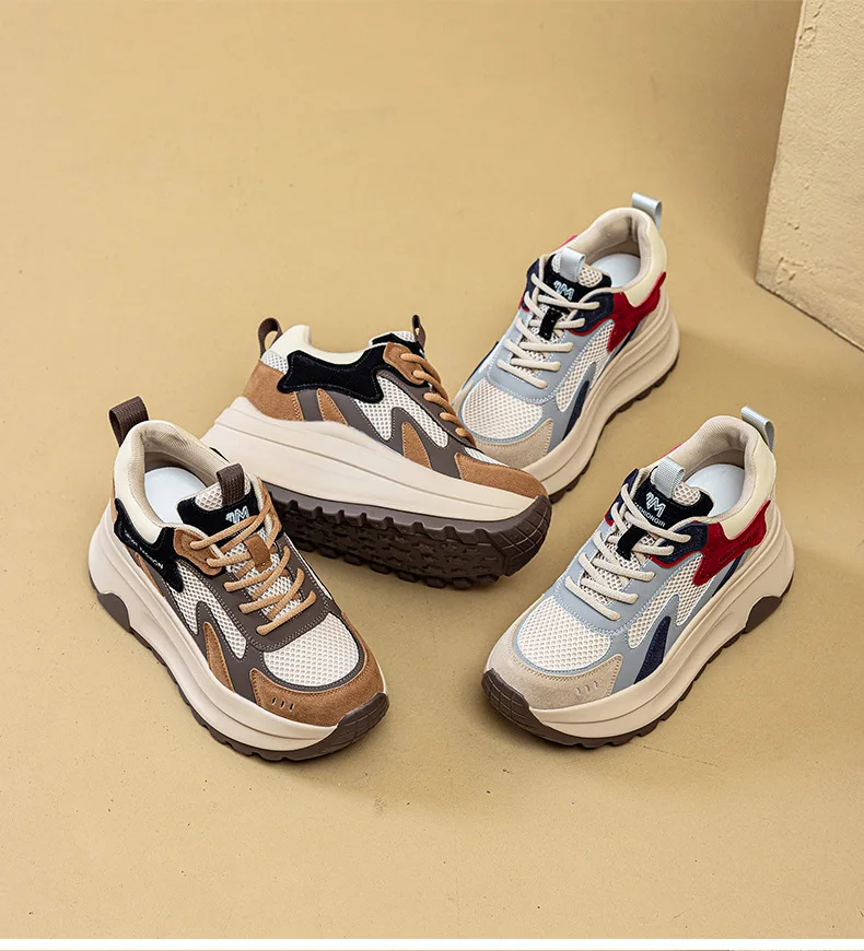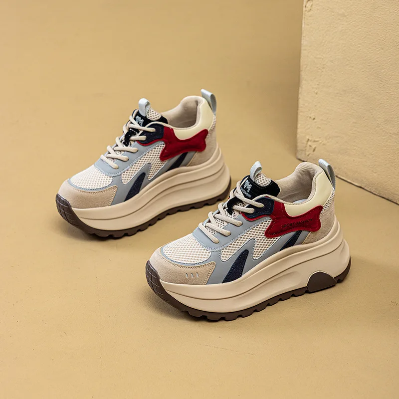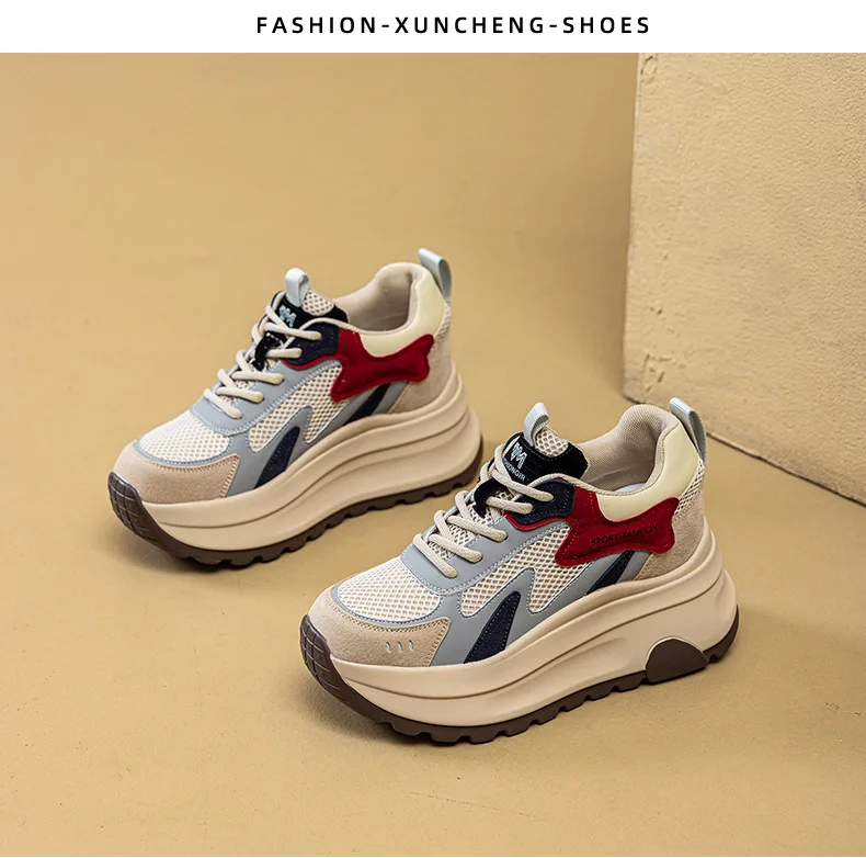 Fujin Sneakers con plateau da 7 cm Scarpe casual da donna in pelle microfibra Sneakers robuste per scarpe da passeggio da donna comode Primavera Autunno