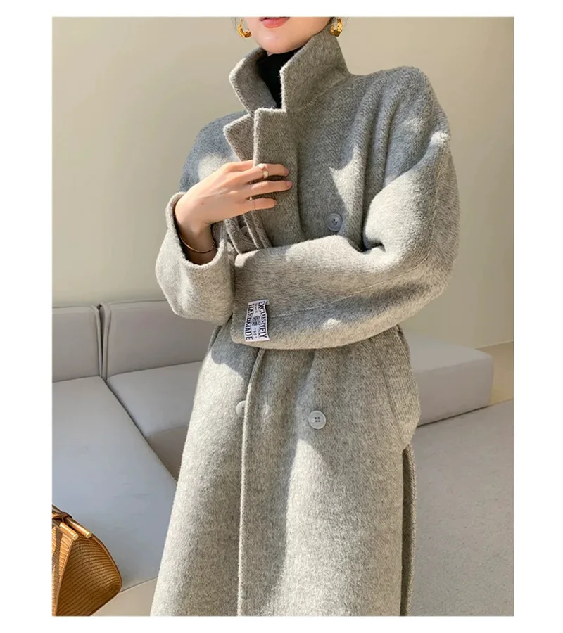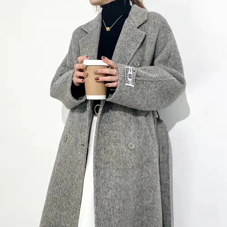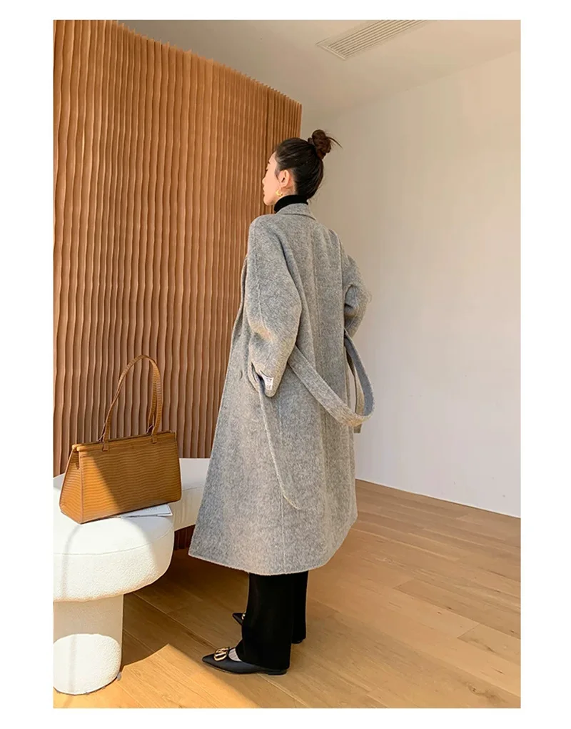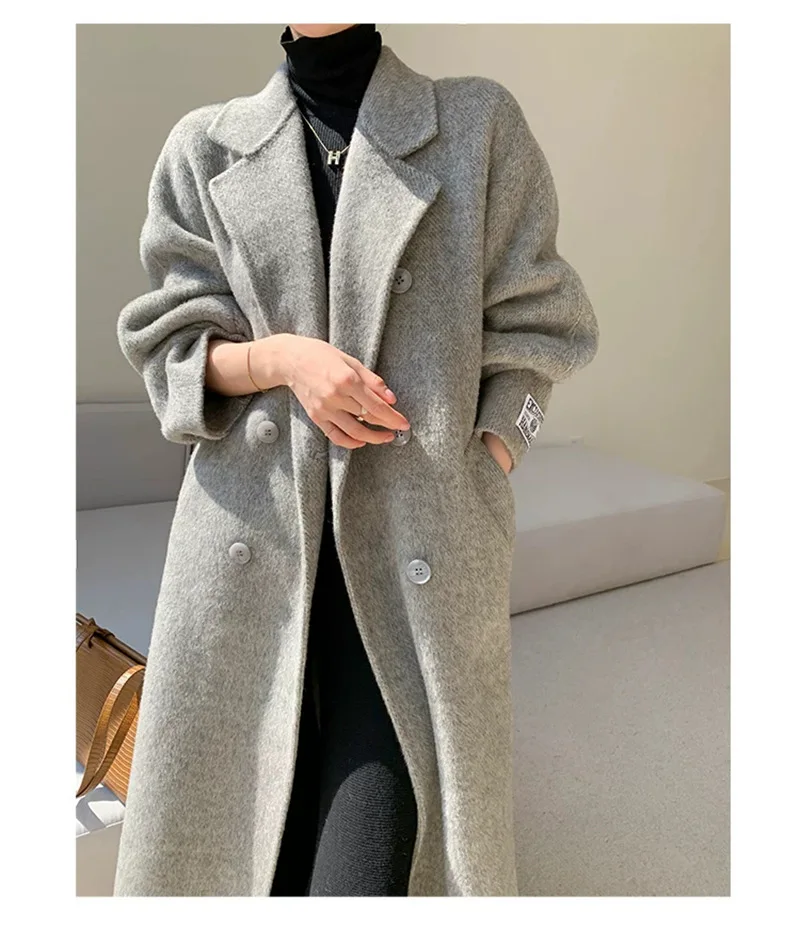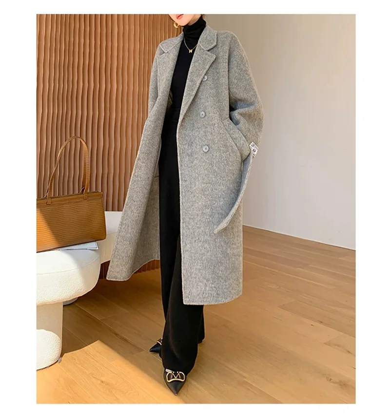 Furyume Trench in lana di Cashmere a doppia faccia per donna giacca lunga colletto rovesciato cappotto di lana Casual nuovo autunno e inverno 1Furyume Trench in lana di Cashmere a doppia faccia per donna giacca lunga colletto rovesciato cappotto di lana Casual nuovo autunno e inverno
