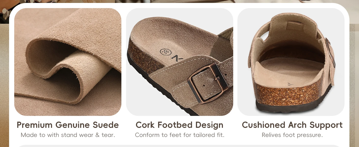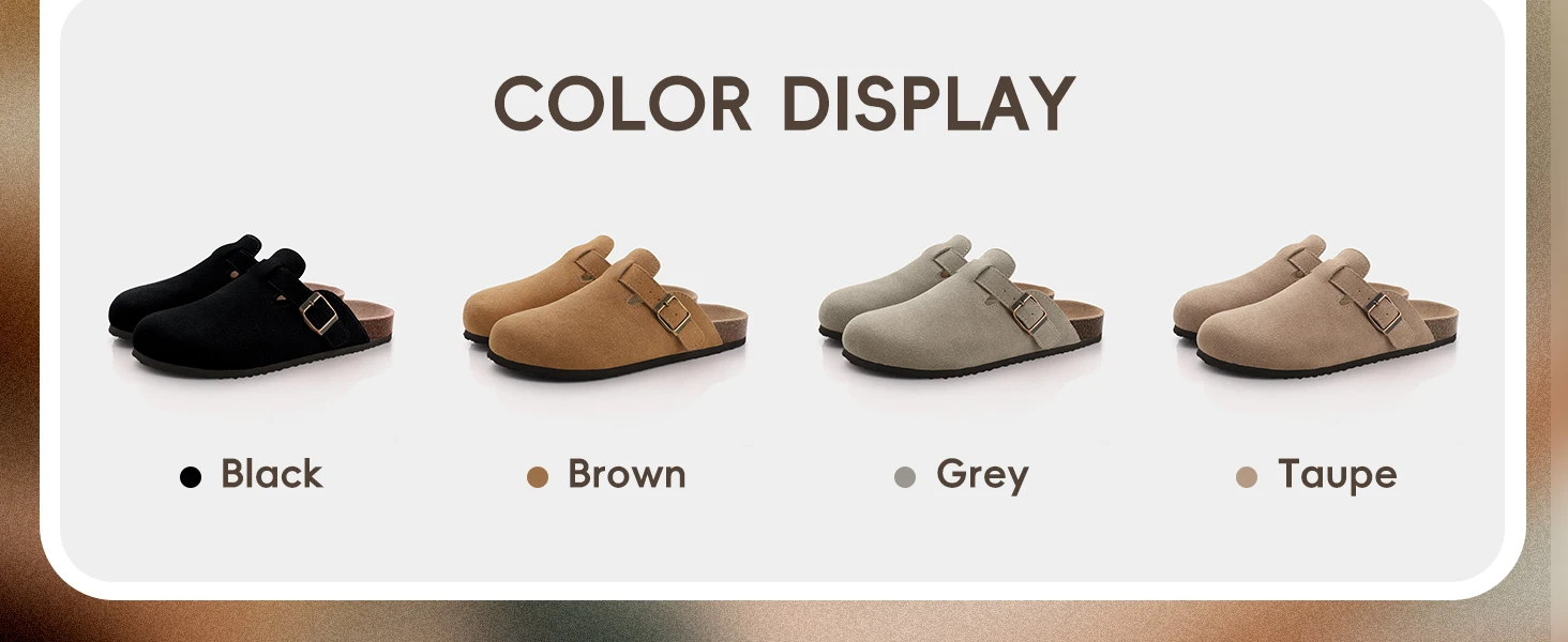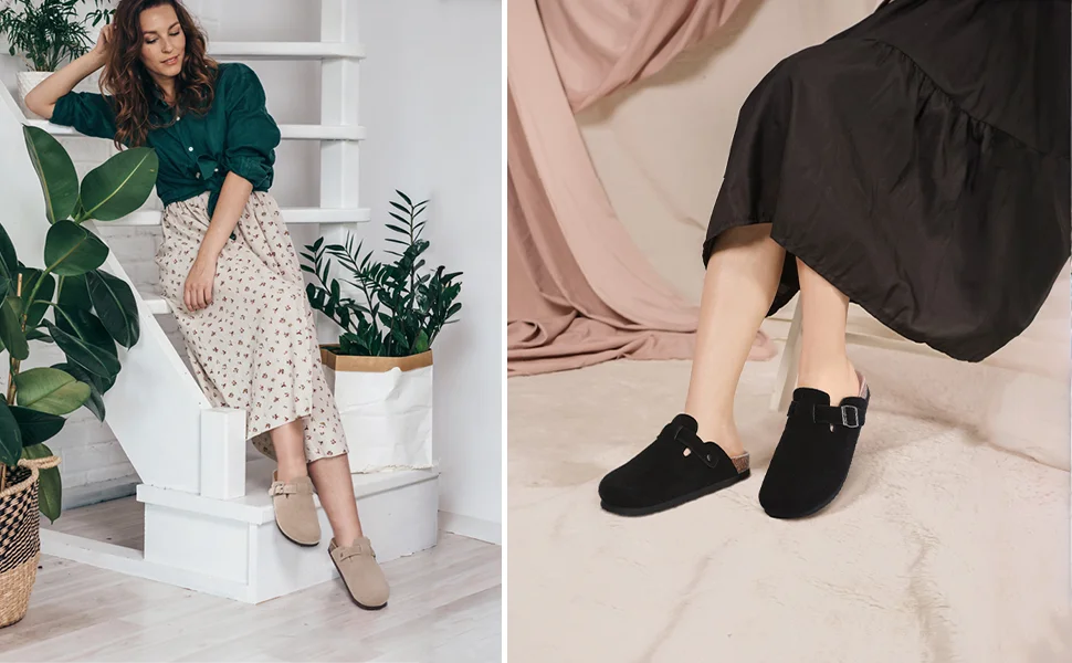 Ultimate Comfort: il materasso morbido in sughero con tacco profondo si adatta alla forma del piede, previene lo scivolamento. Il supporto dell’arco plantare allevia la pressione, dona i piedi stanchi, un’esperienza rilassante. La fibbia regolabile consente di vari piedi e ti stai comodamente ed elegante con i nostri zoccoli alla moda.