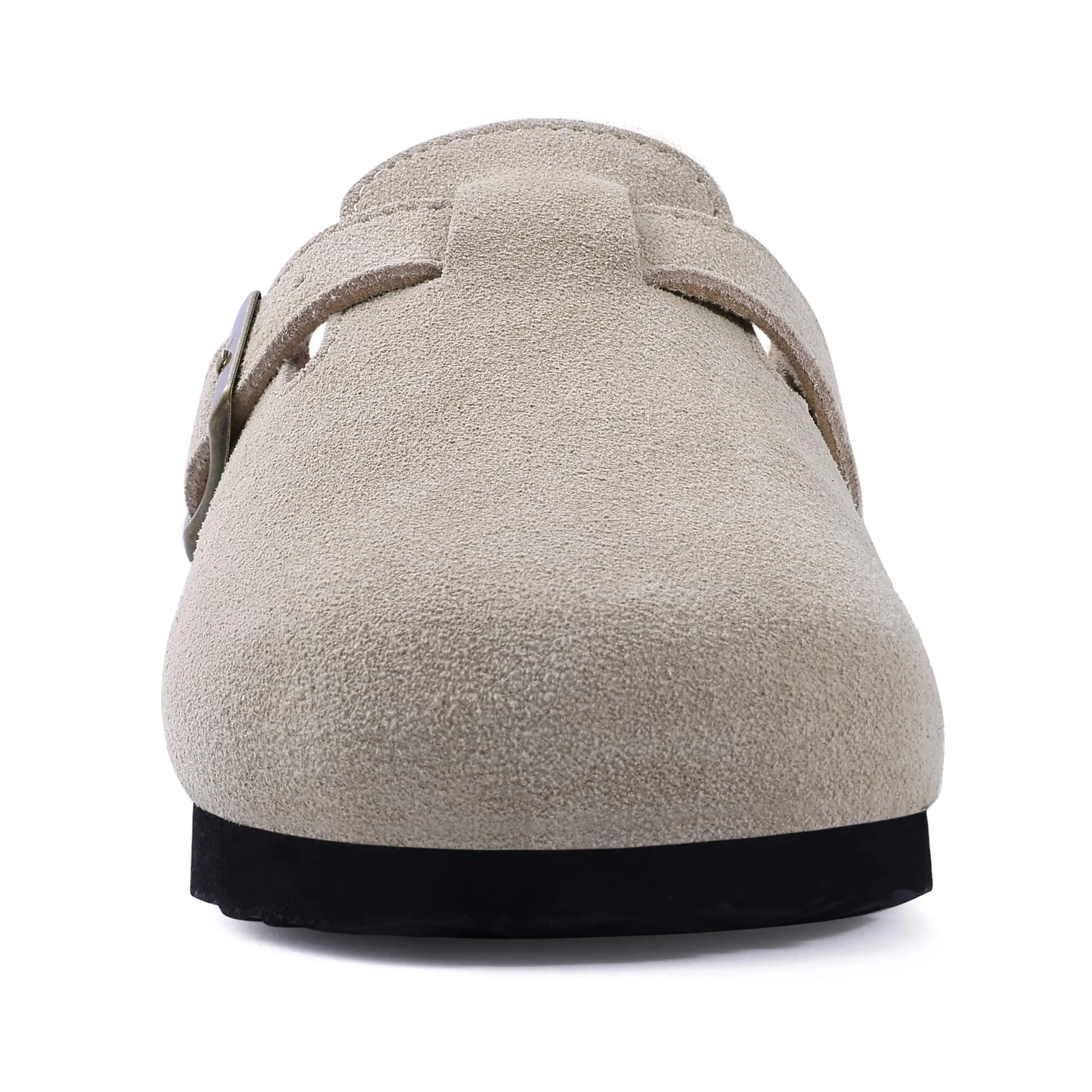 Zoccoli classici in pelle: la parte superiore e la sottopiede sono realizzati in vera pelle scamosciata, che forniscono un tocco morbido e accogliente per un massimo comfort. La fibbia indossata presenta un complemento dai toni vintage, un classico zoccoli per uomini e donne in un armadio alla moda. Scioglie e tu sparse!