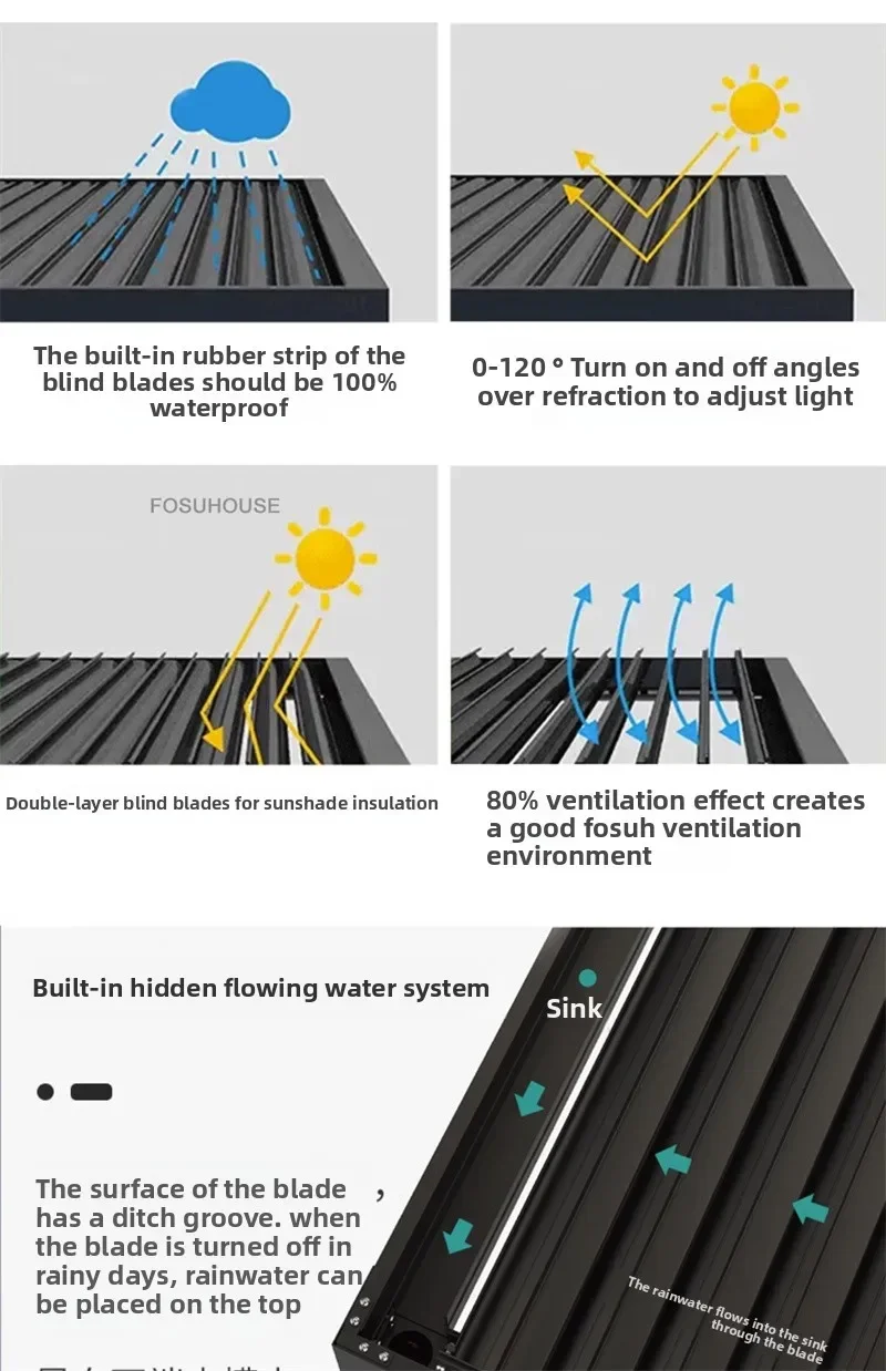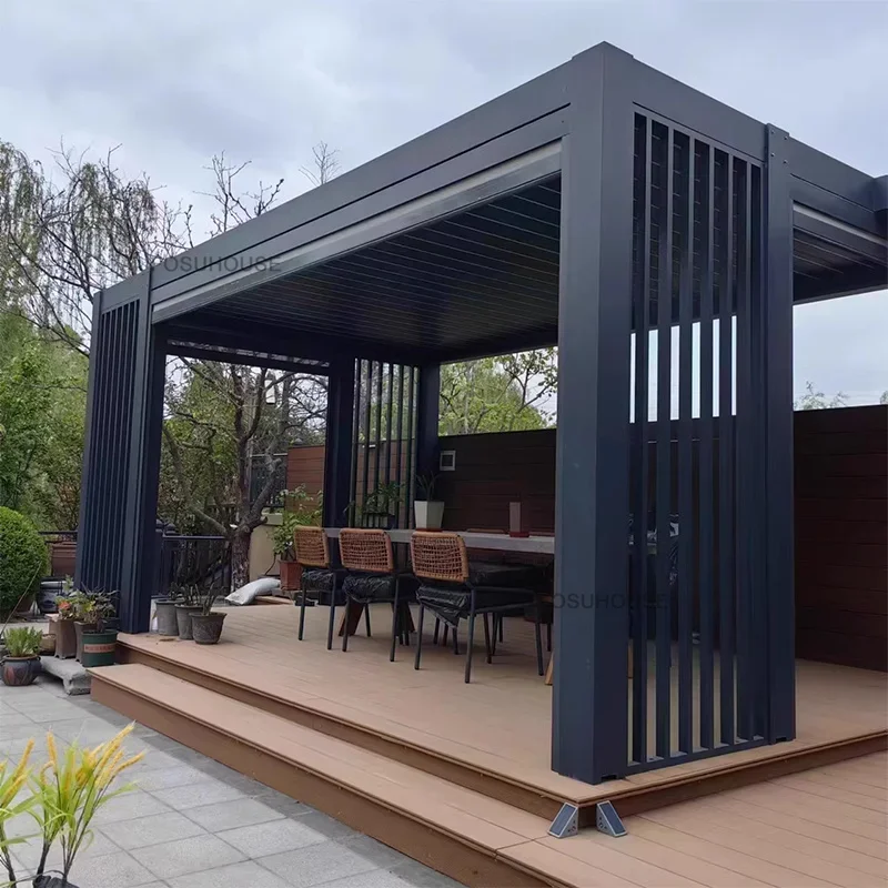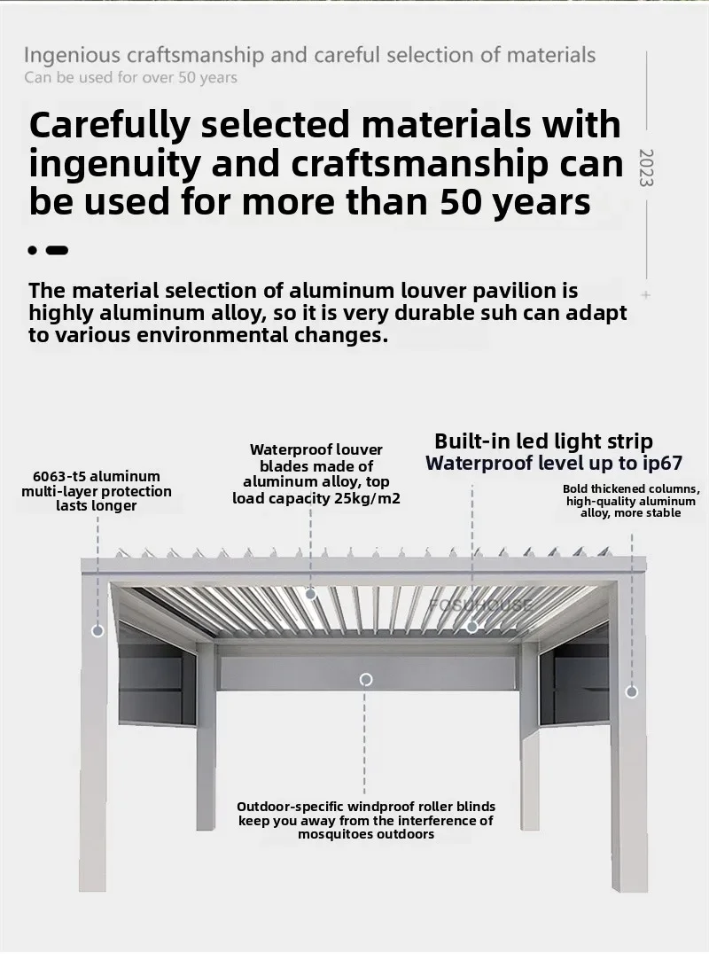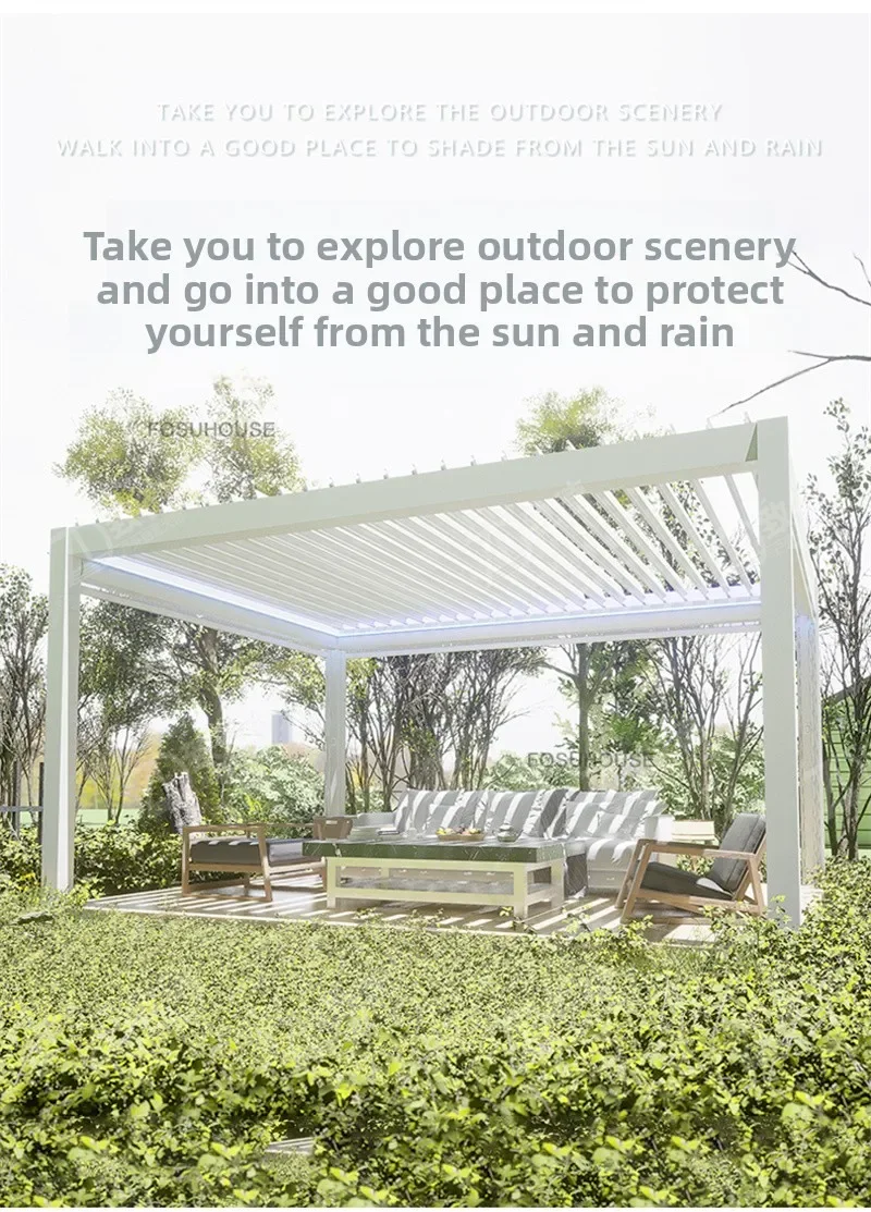 Gazebo nordici in lega di alluminio per protezione solare da giardino esterno Parabillon con feritoia antipioggia pergolato da giardino Pergola elettrica addensata