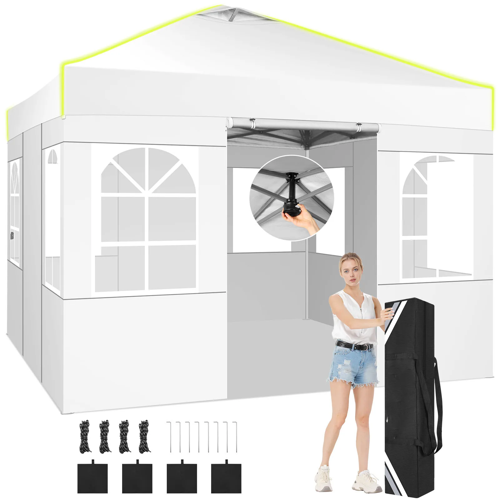 Apertura ventilazione in rete e strisce riflettenti: gazebo pieghevole 3 x 3 stabile impermeabile ha una struttura del ombrello antivento con fessure di ventilazione integrate per mantenere la circolazione dell’aria e migliorare la resistenza al vento.Le strisce riflettenti sono strategiche posizionate per aumentare la visibilità in condizioni di scarsa illuminazione o di notte.