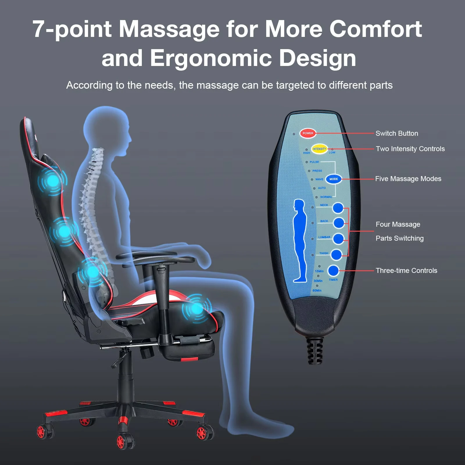 [MASSAGGIO] Le fusioni perfette di sedia da gioco e poltrona massaggiante.Controllo della maniglia, sette elementi di massaggio intelligenti, cinque modalità di massaggio, commutazione di quattro parti di massaggio, tre controlli di tempo e due controlli di intensità.Permettendoti di goderti la massoterapia più formale e professionale mentre lavori e divertiti.