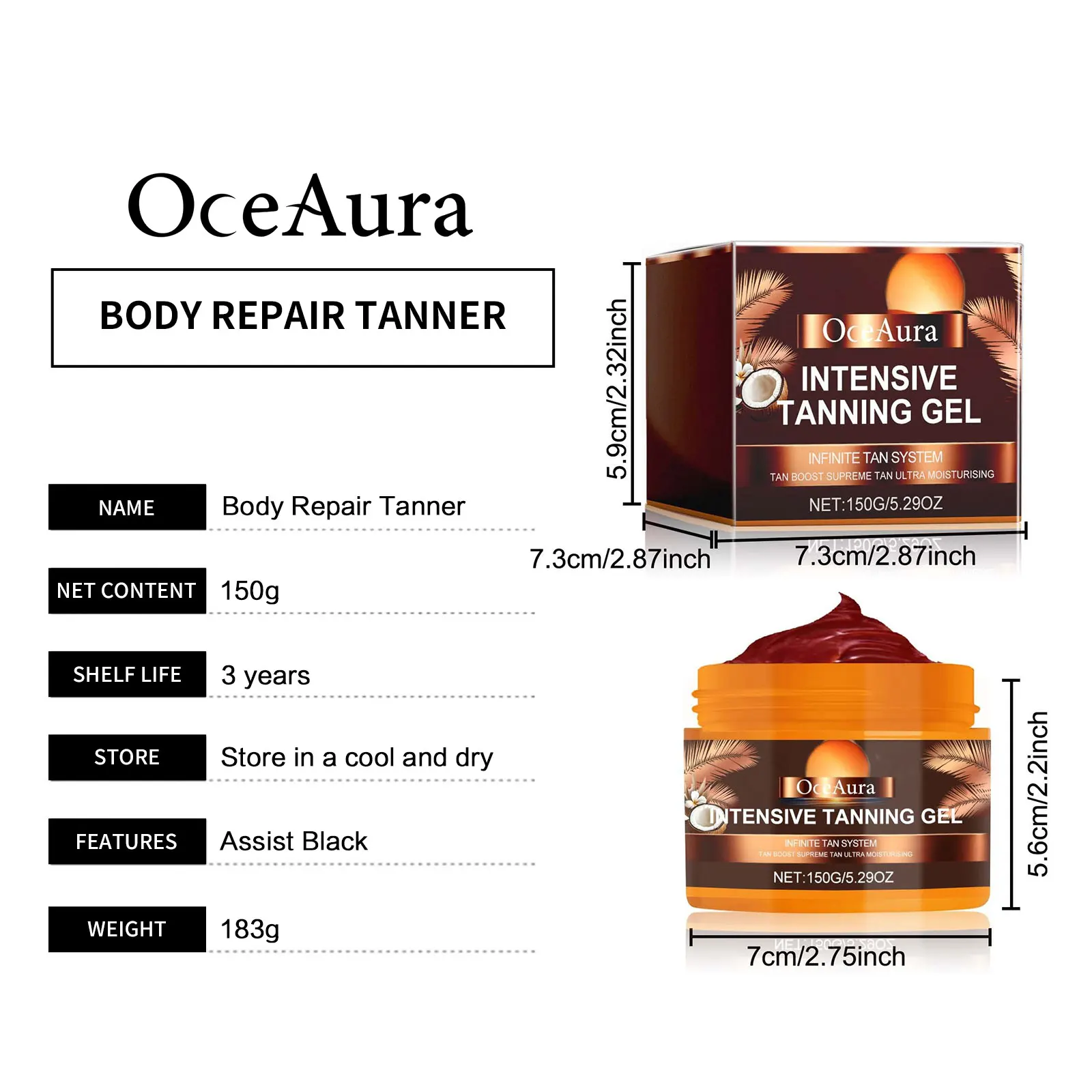 OceAura Gel abbronzante intensivo Nutrire la pelle Idrata Riparatrice Senza sole Abbronzatura Booster Abbronzante Lettino estivo Crema acceleratore abbronzante per spiaggia 150g
