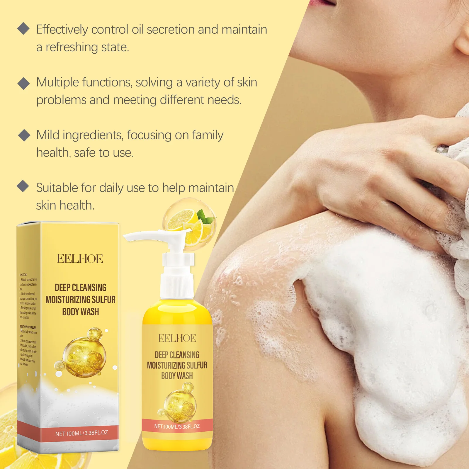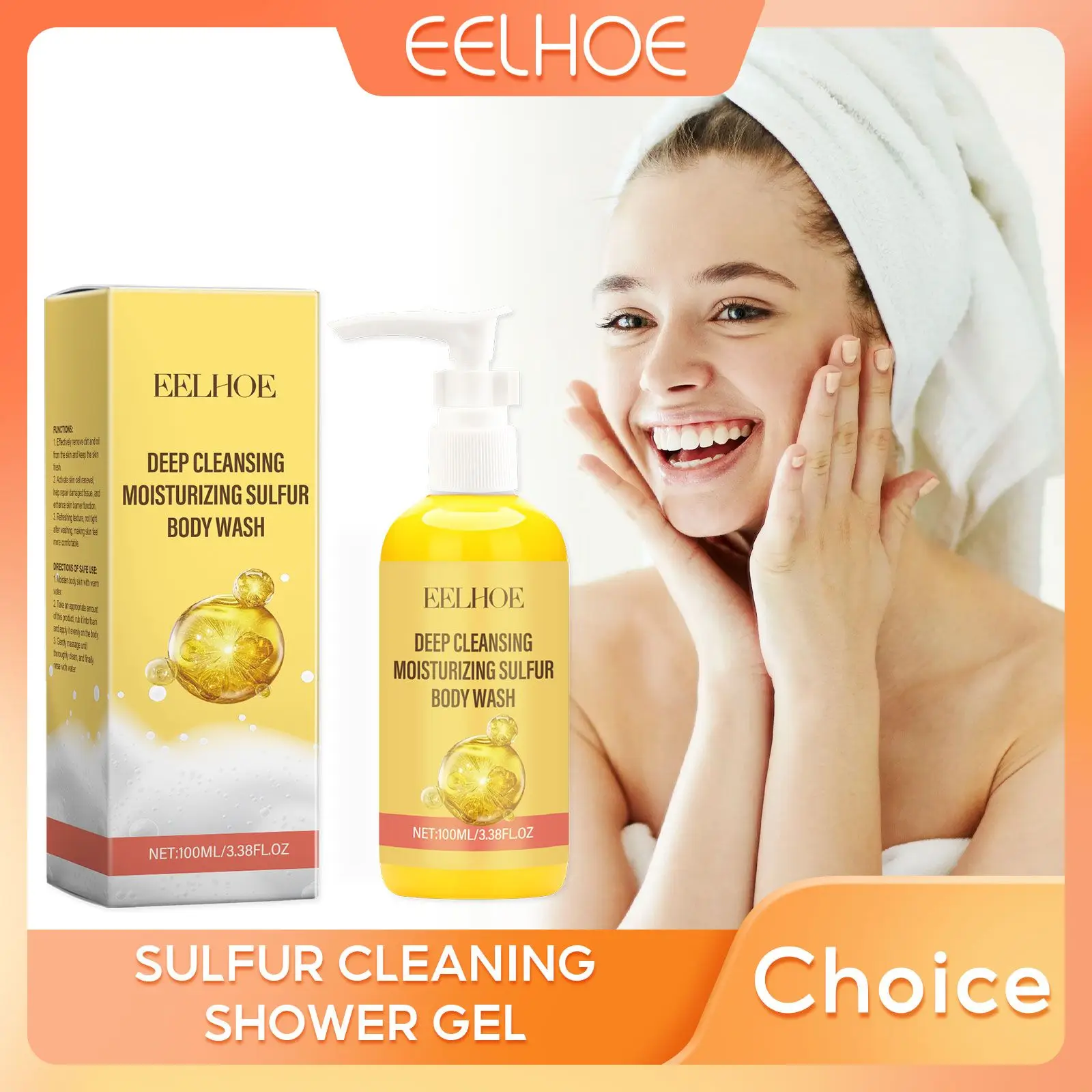 EELHOE Gel doccia per il lavaggio del corpo con zolfo Pulizia profonda Lozione da bagno idratante esfoliante profumata a lunga durata Prodotti da bagno leviganti 100ml