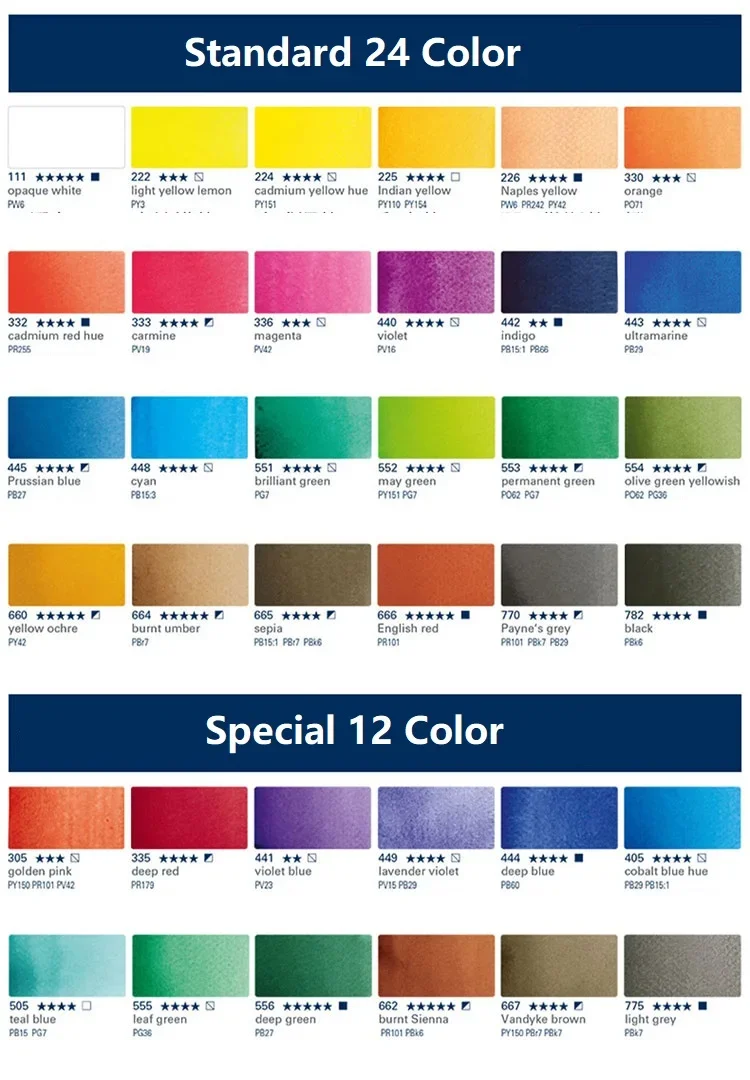 ???? COLORI HORADAM AQUARELL: i colori hanno una solubilità molto buona e sono adatti a tutte le tecniche di pittura ad acquerello. La gamma contiene colori opachi e trasparenti. Le padelle possono essere facilmente ricaricate con il colore del tubo HORADAM AQUARELL.