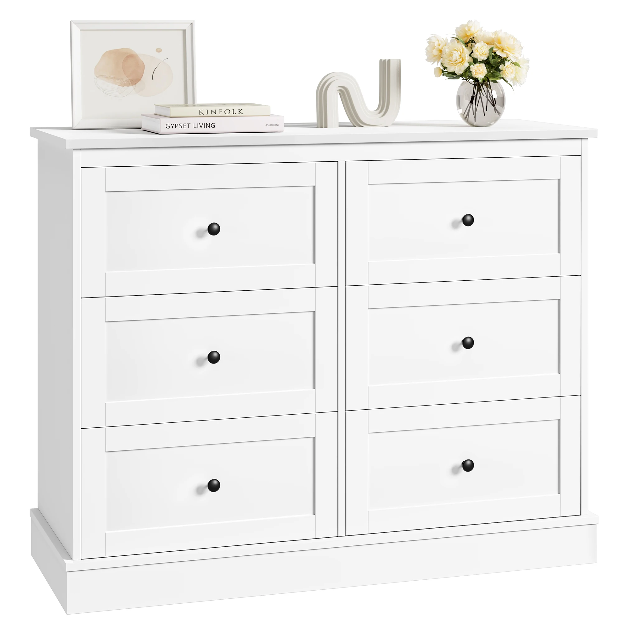 Getone Cassettiera bianca per camera da letto con 6 cassetti, credenza per camera da letto, soggiorno, 108x87x40 cm, in legno