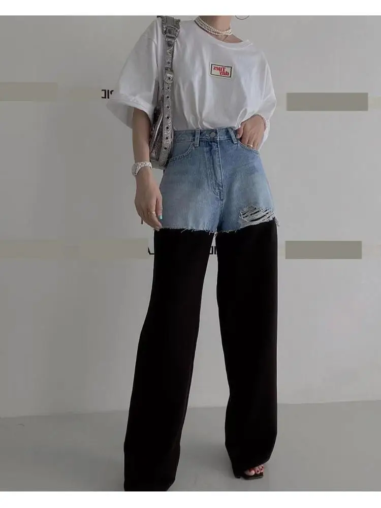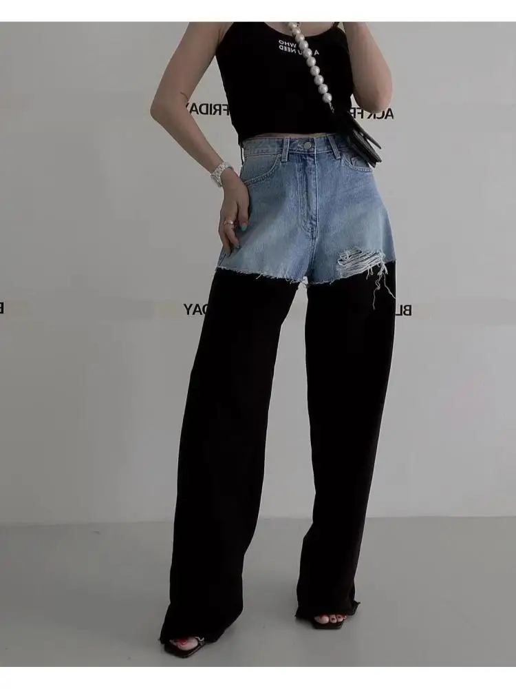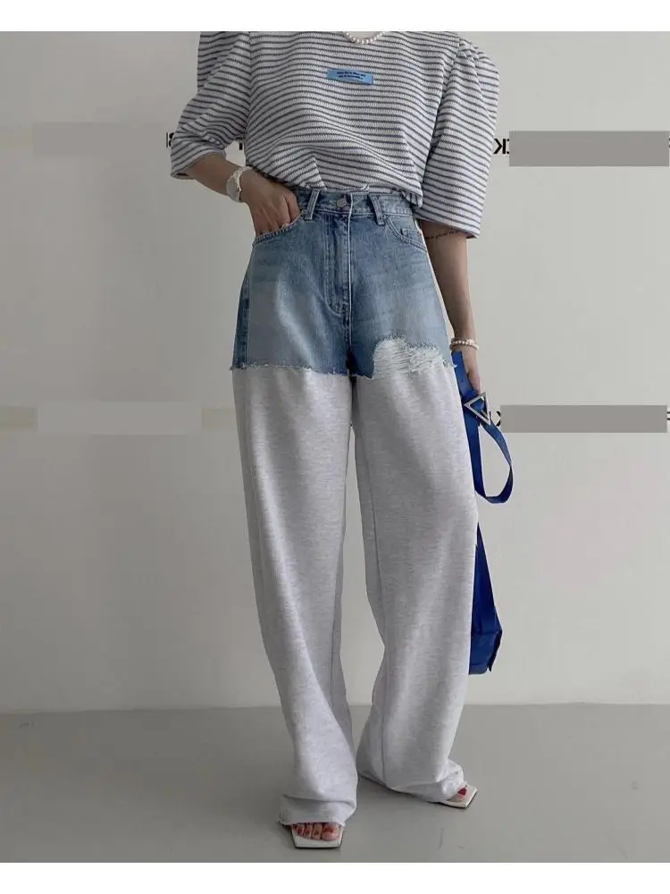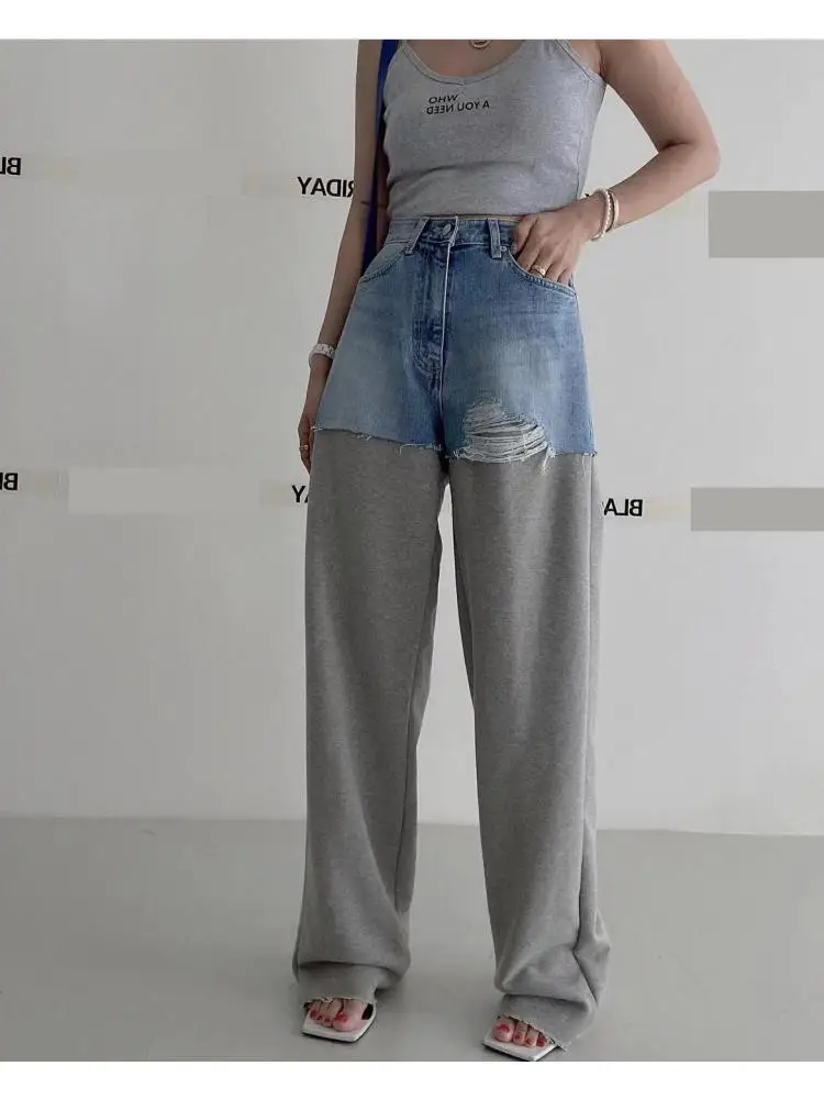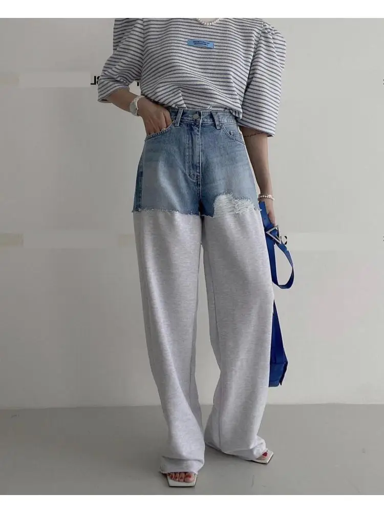 Getspring pantalone donna Capris 2023 primavera autunno Retro vita alta Denim cucito tutto abbinato pantaloni larghi Casual lunghi e larghi