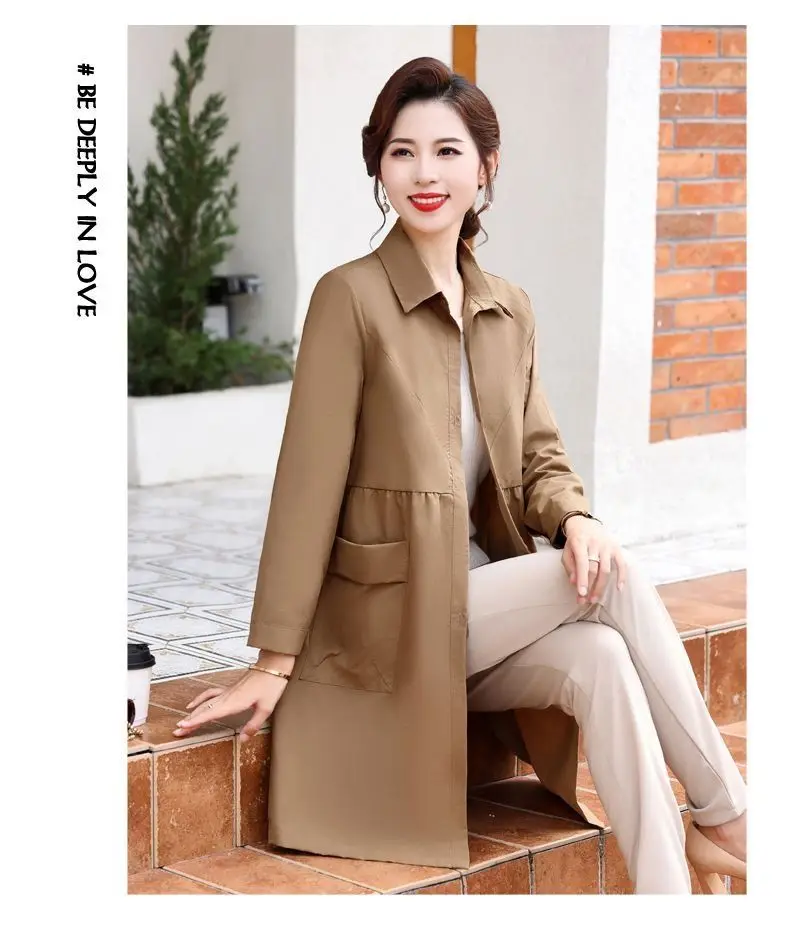 Giacca a vento da donna autunno 2025 nuova giacca stile straniero di fascia alta di media lunghezza tinta unita stile britannico