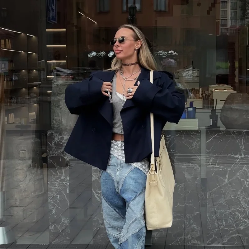 Adoro questa giacca! Ma mi aspettavo che fosse il bel blu scuro come raffigurato in tutte le foto e in realtà è un blu violaceo! Ma il taglio è fantastico!