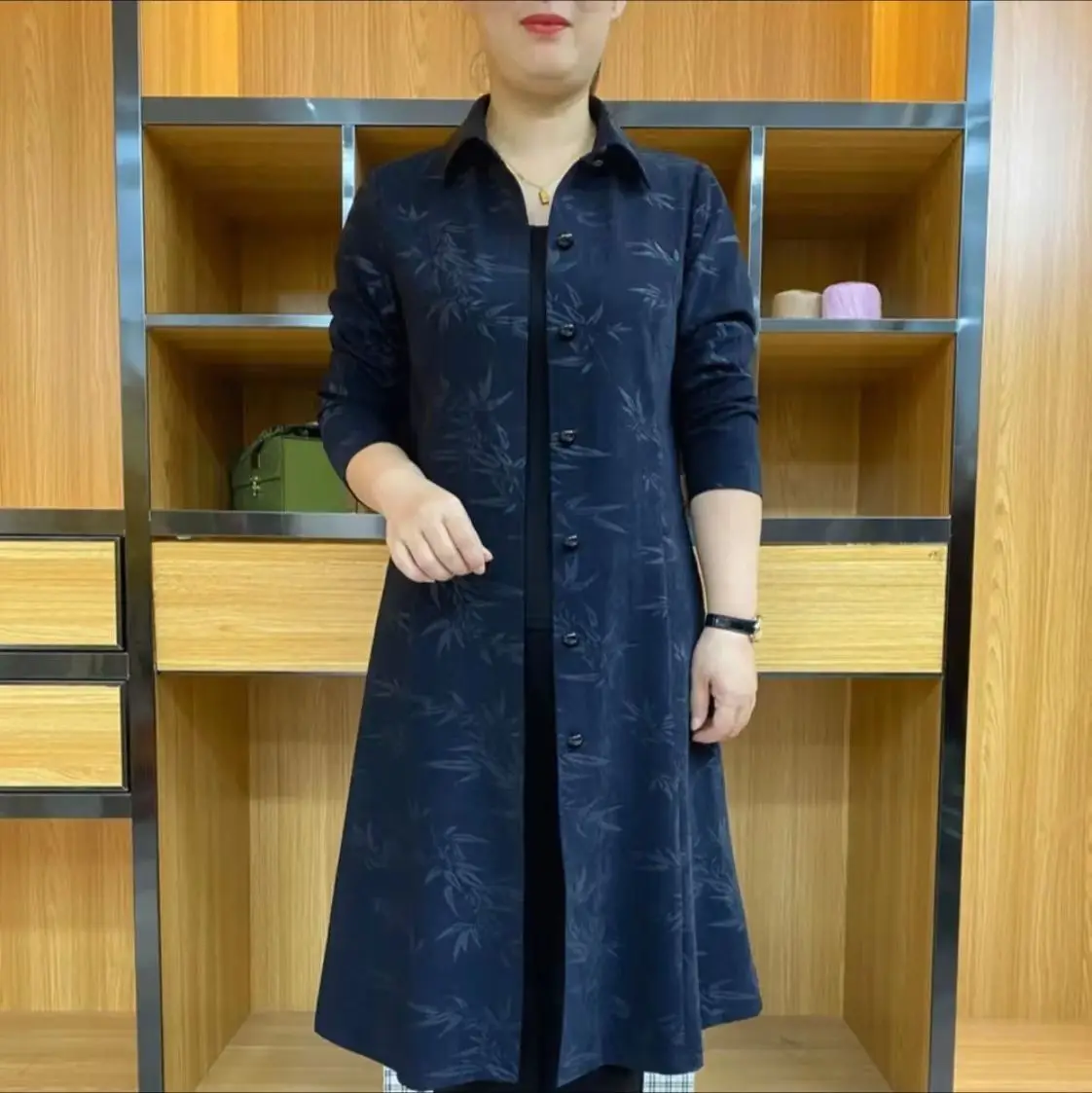 Giacca a vento per madre di mezza età e anziana di fascia alta nuova giacca ampia da donna di media lunghezza autunnale ed elegante
