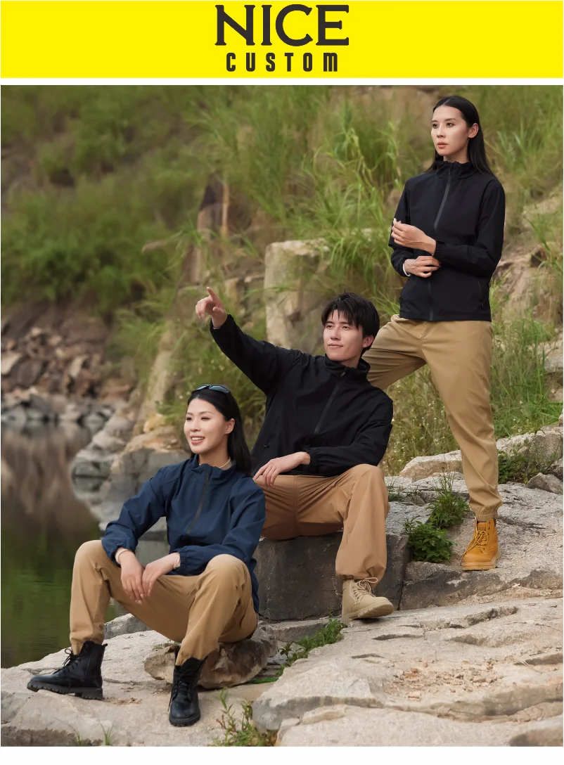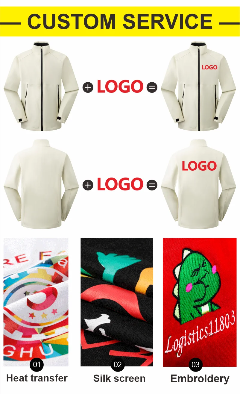 Giacca antistatica con colletto alla coreana Logo aziendale personalizzato Felpa da esterno Ricamo Team Design personale Stampa cappotto impermeabile