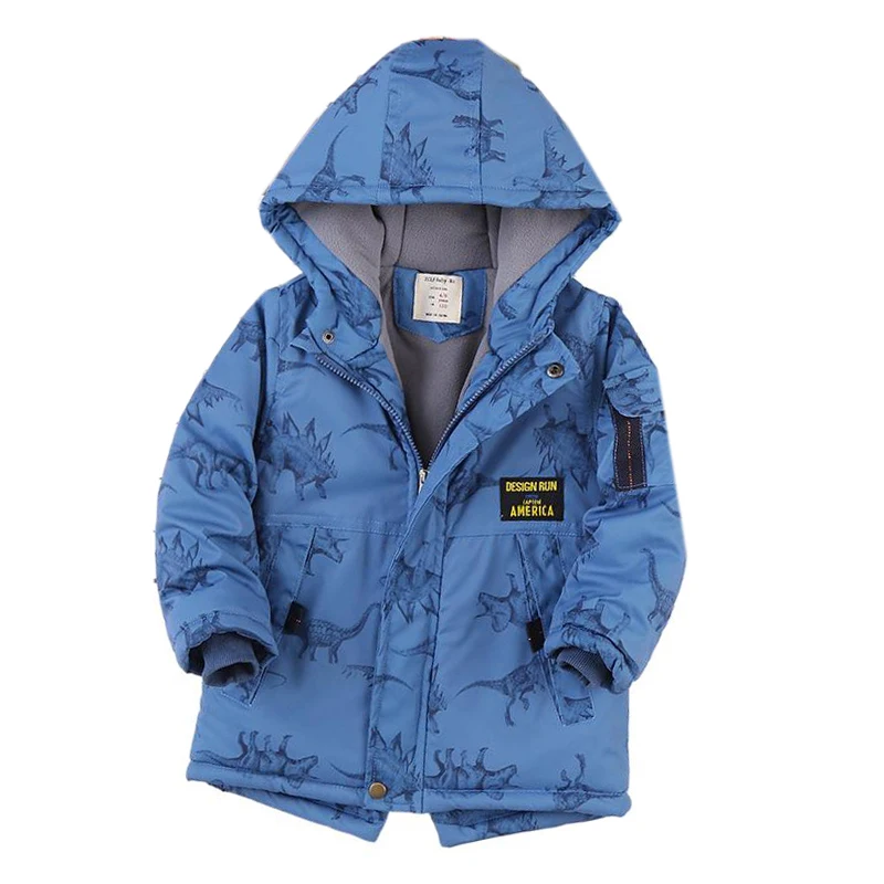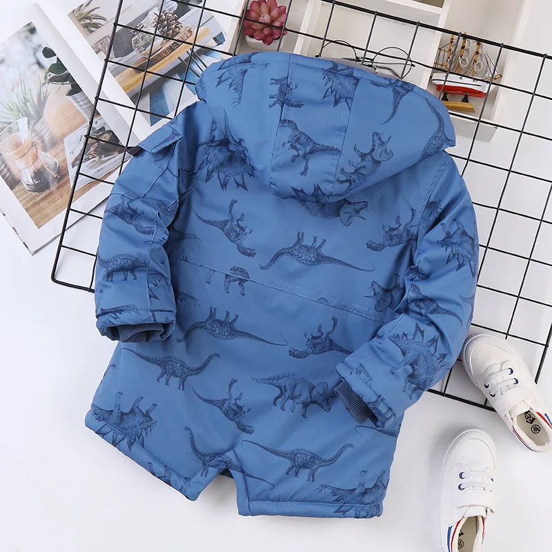 Giacca autunno inverno per ragazzo cartone animato dinosauro con cappuccio più velluto addensare caldo ragazzo capispalla cappotto 4-14 anni bambini adolescente Parka