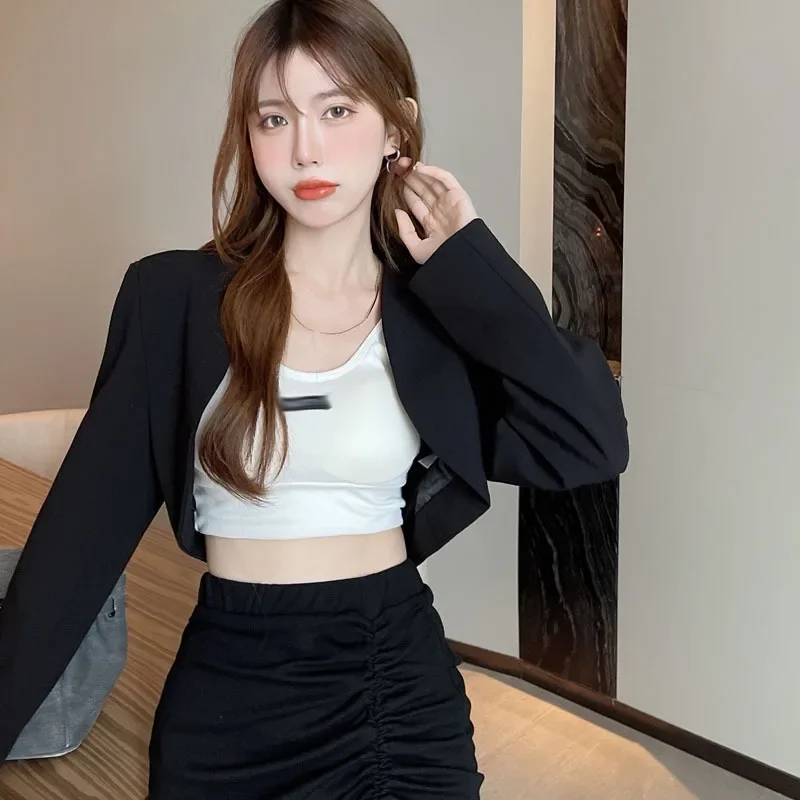 Giacca blazer corta retrò Cardigan sottile nero da donna Design semplice Autunno Inverno Moda Versatile fibra di poliestere stile coreano